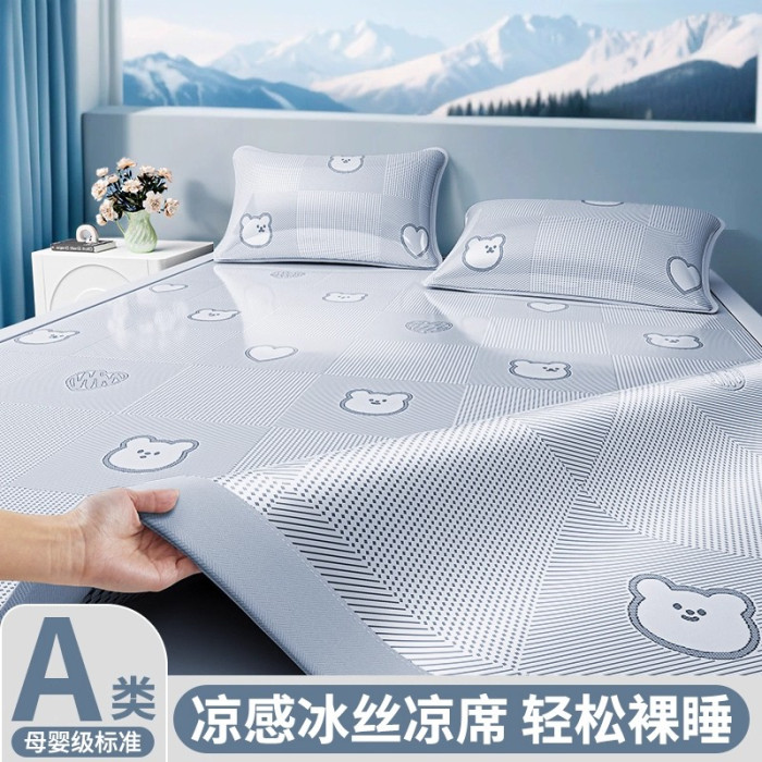 日本MUJIE夏季冰絲床單新款涼蓆被單宿舍單人枕套三件套可機洗蓆