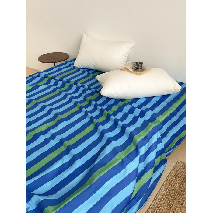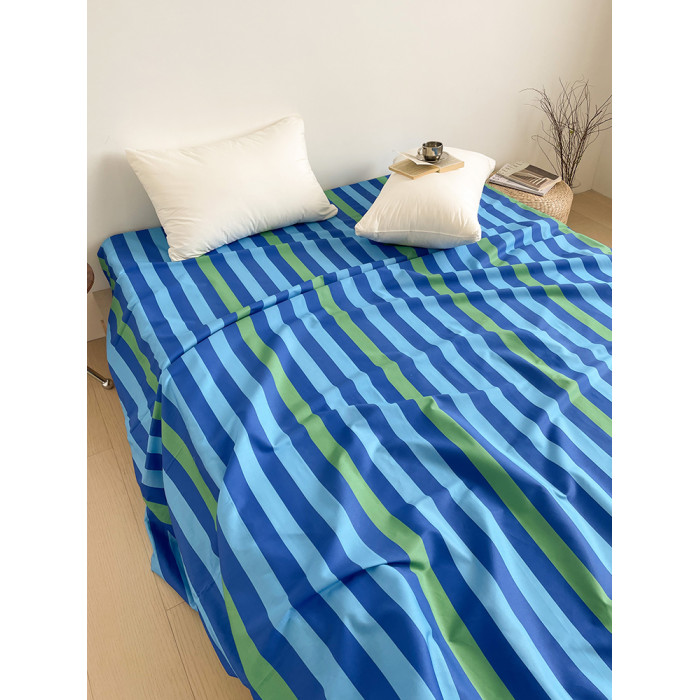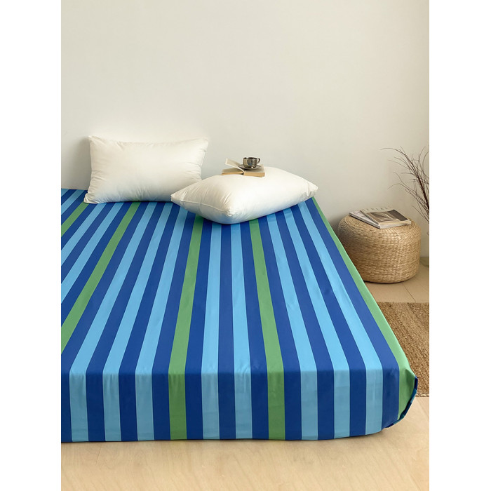 半島森林 經典撞色條紋全棉1米5藍色床單床笠單件100純棉時尚藝術