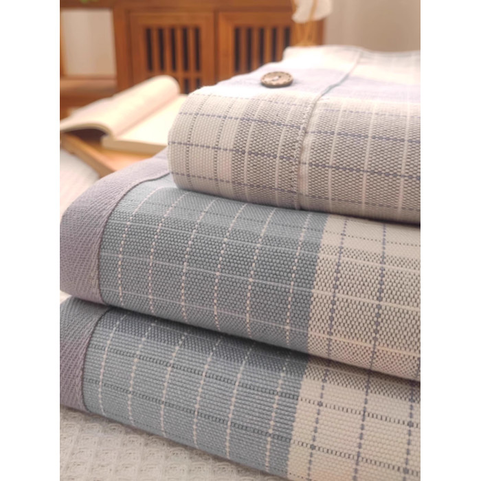 高級純棉加厚老粗布涼蓆吸汗透氣三件套棉麻亞麻夏季床單四季通用