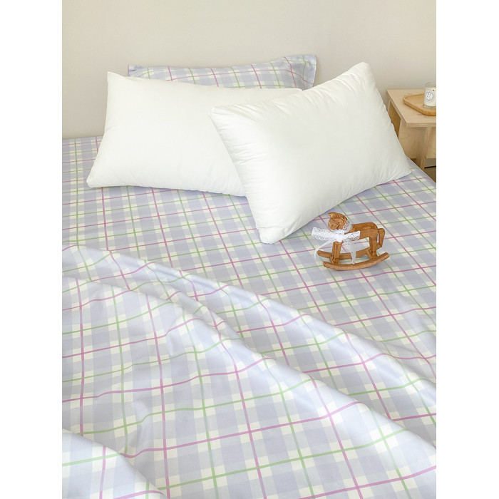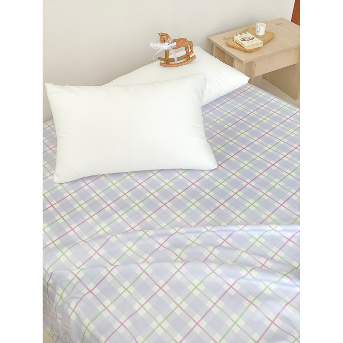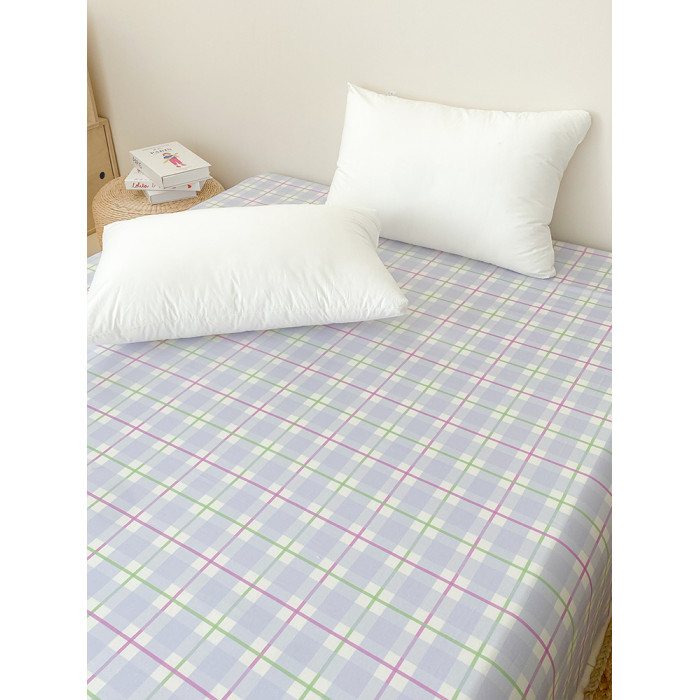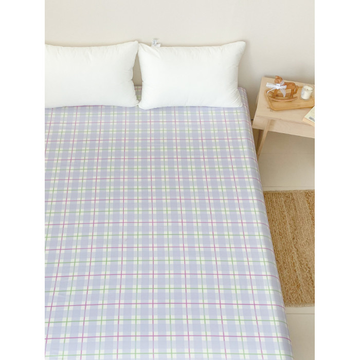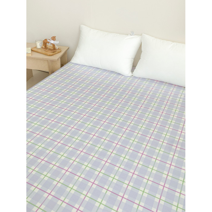 香草PARK 氧氣感溫柔格子100%全棉床單床笠雙人1.8*2m韓系葡萄紫