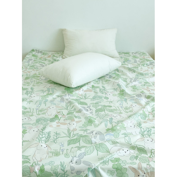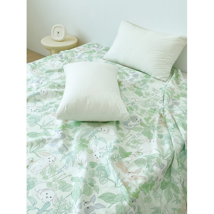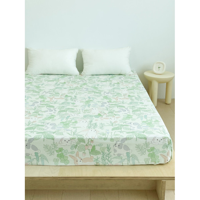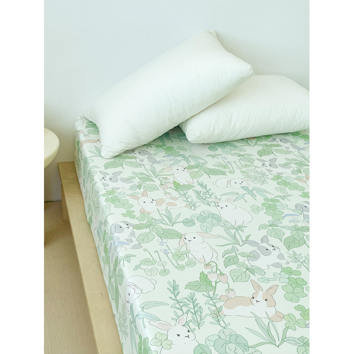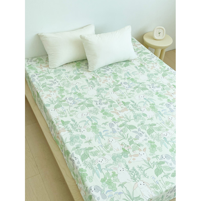 兔兔與森林 小清新綠色植物系床單床笠100全棉可愛卡通小兔四季款
