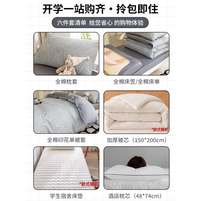 秋冬:1.2m學生床笠六件套【三件套+枕芯+約5斤被芯+120x200cm床褥】