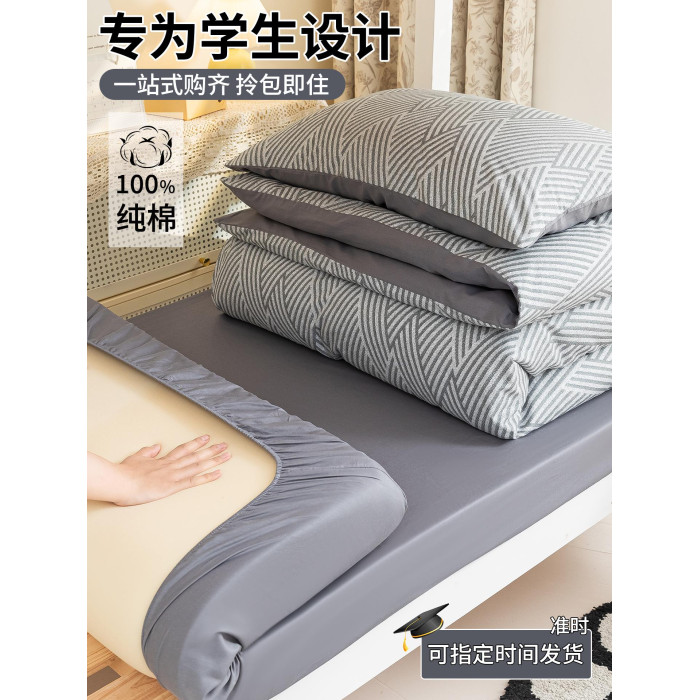 純棉學生宿舍床上三件套單人床全棉床單被罩床墊四六件套2025新款