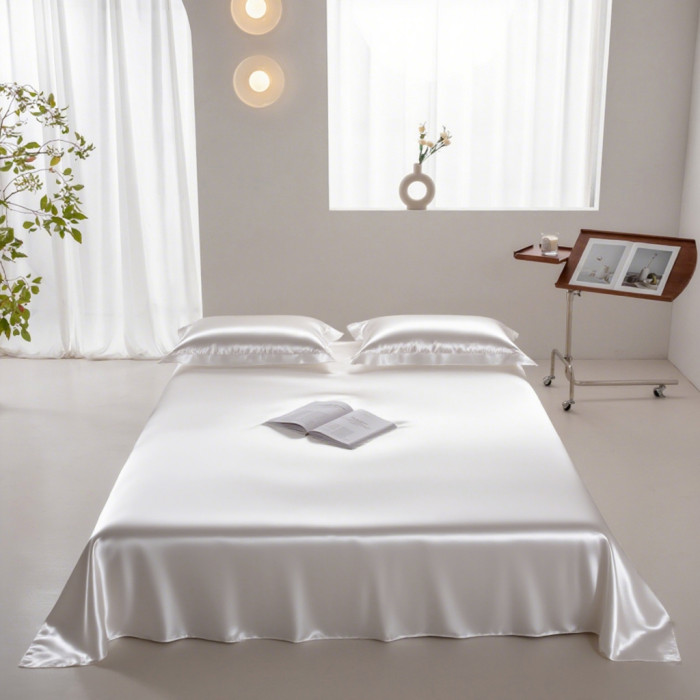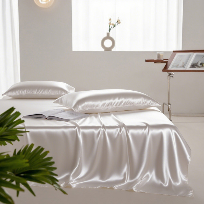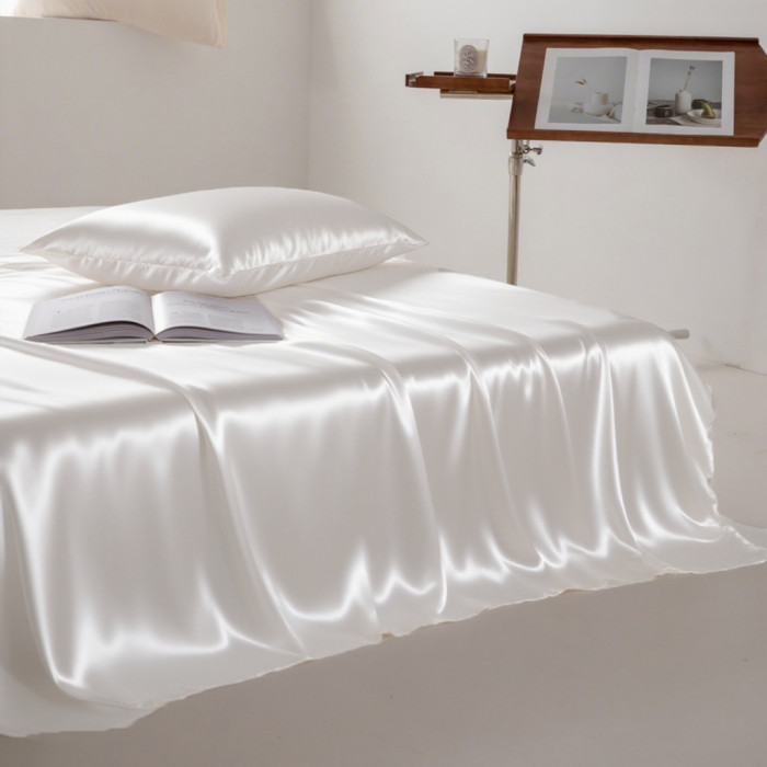 高級感輕奢白色水洗真絲床單單件冰絲夏季絲滑裸睡被單枕套三件套