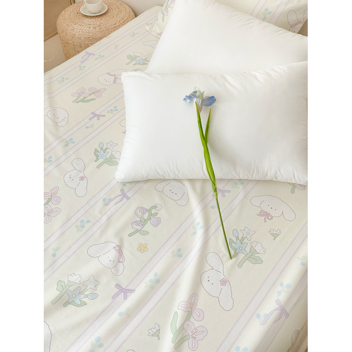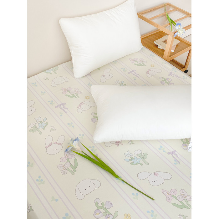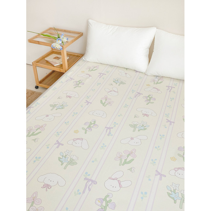 小兔的故事 設計師手繪甜美卡通全棉床單床笠可愛條紋單件奶油風