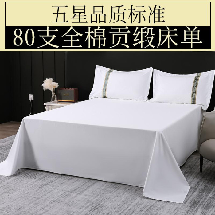星級酒店床單80支貢緞賓館民宿專用全棉白色布草床笠單件床上用品