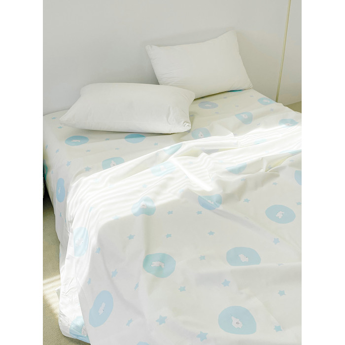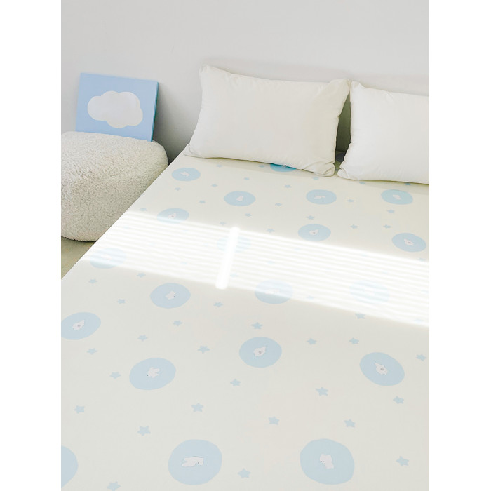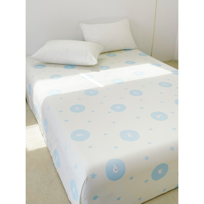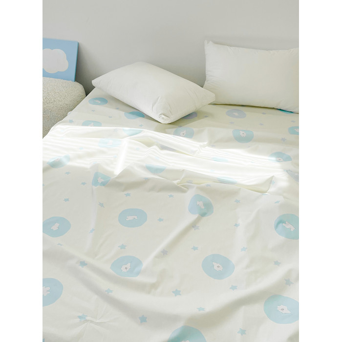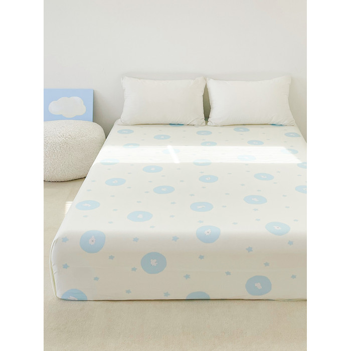 柔軟夢 原創簡單乾淨全棉床單床笠可愛嬰兒藍小動物雙人1.5m/1.8m