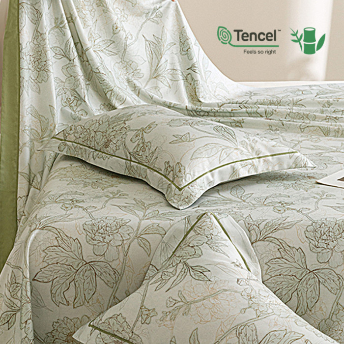 夏季涼爽天絲竹纖維床單枕套三件套絲滑厚實涼感老人嬰兒可用水洗