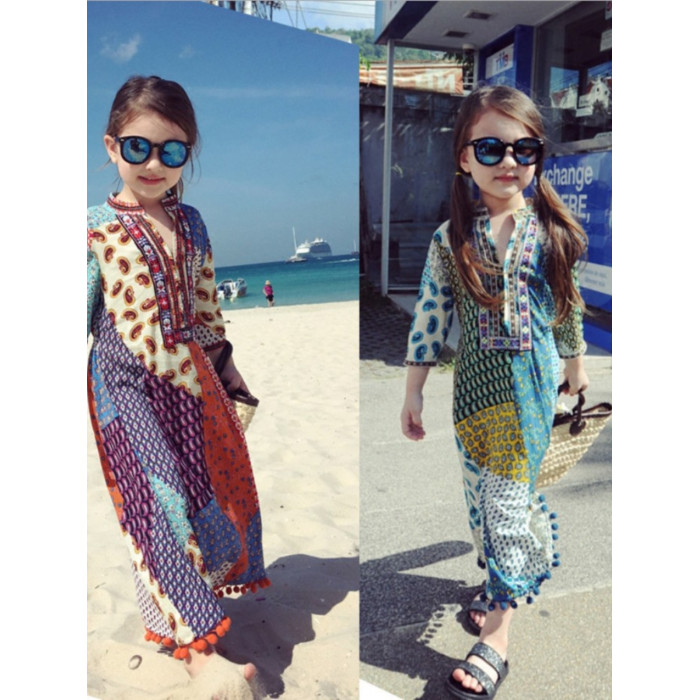 親子裝度假連衣裙母女童長款波西米亞海沙灘綿綢海邊長裙兒童夏裝