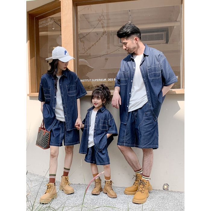 牛仔襯衫短袖套裝【圖片色】