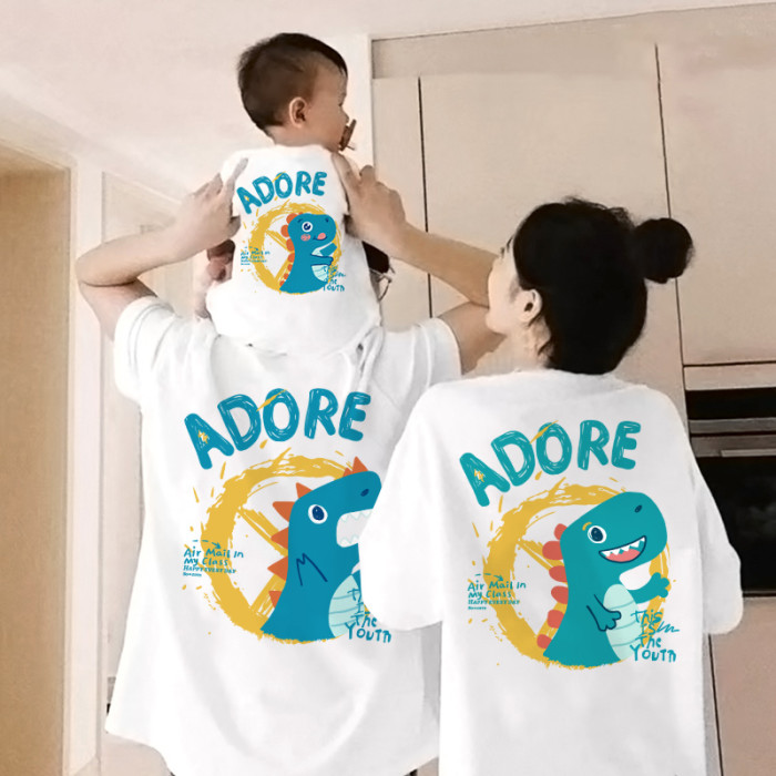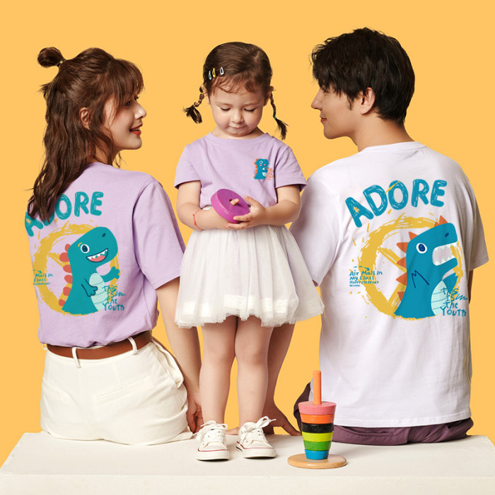 小恐龍親子裝夏款一家三口短袖2025新款夏天潮純棉母女裝國潮t恤