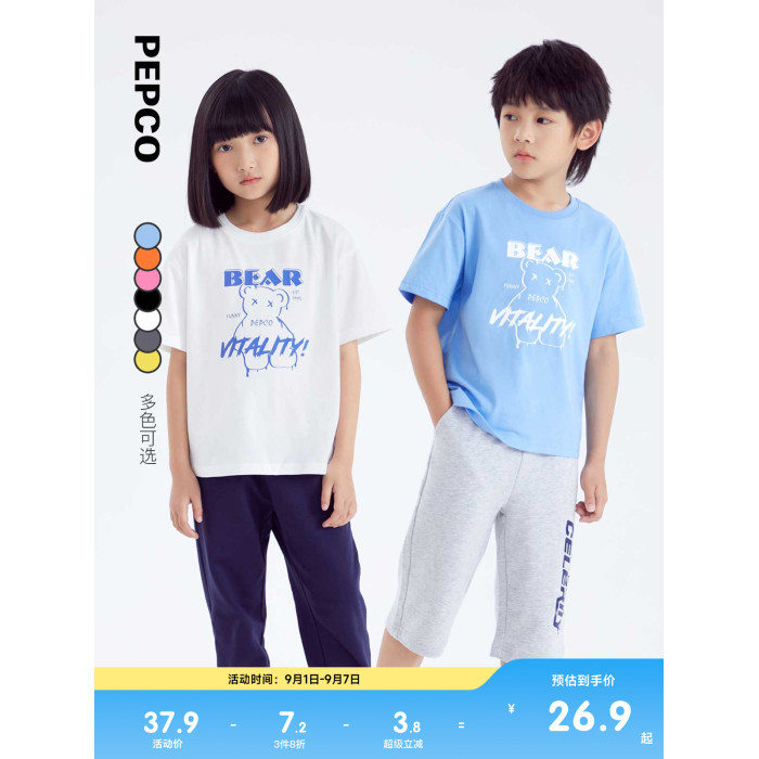 小豬班納童裝夏裝新款兒童短袖T恤中大童男童上衣女童男孩親子裝