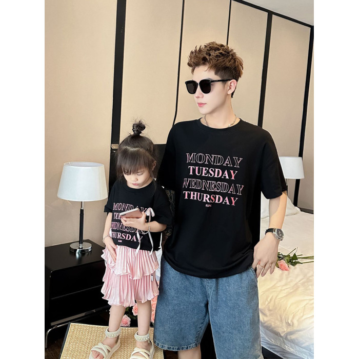 網紅度假親子裝2025新款夏天一家三口母女裝粉色半裙蝴蝶結短袖t