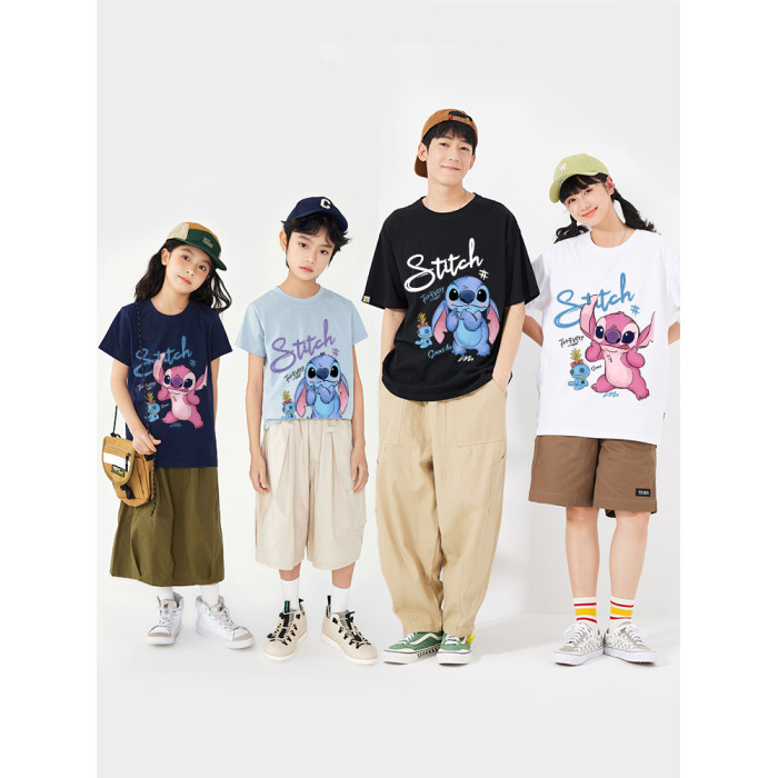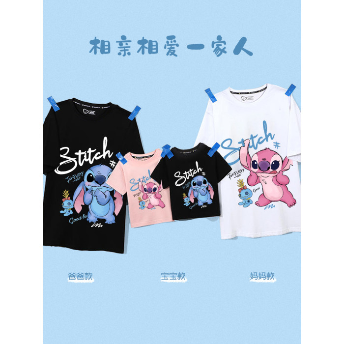 2025新款純棉t恤短袖親子裝一家三口星際寶貝史迪仔打底半袖夏裝