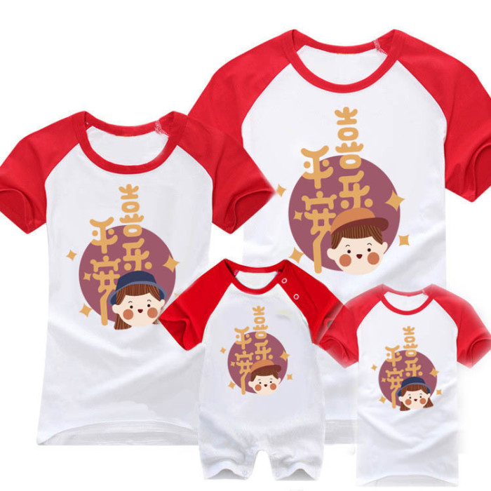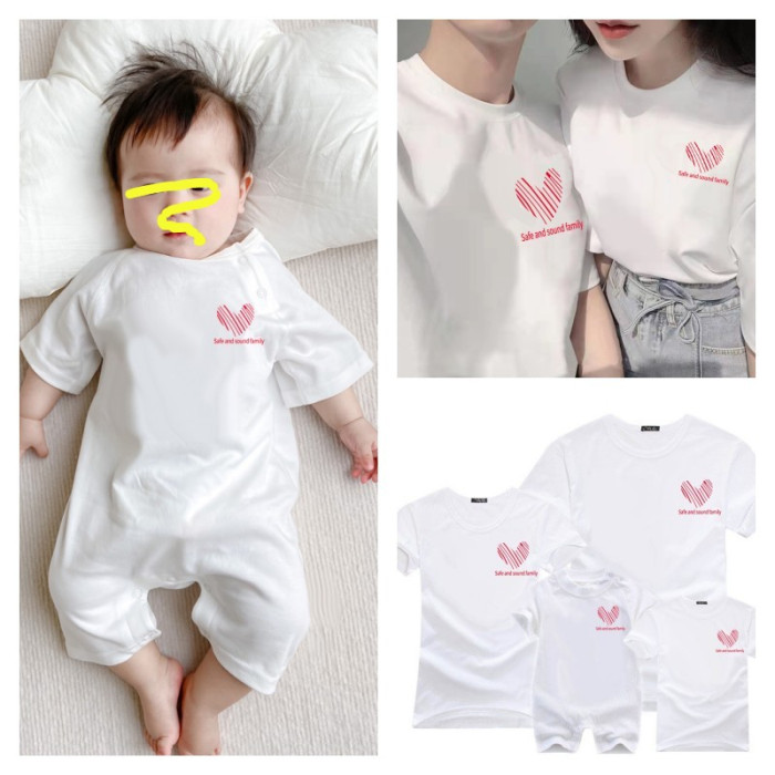 愛心親子裝一家三口四口夏裝嬰兒滿月百天周嵗拍照洋氣母子母女裝