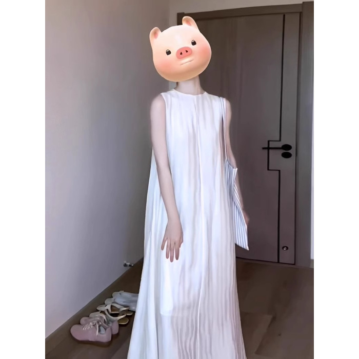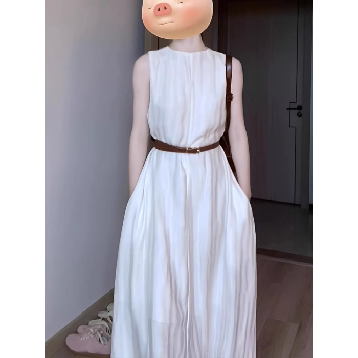 歐洲站2025新款茶歇法式高級感氣質長裙子顯瘦無袖白色連衣裙女夏