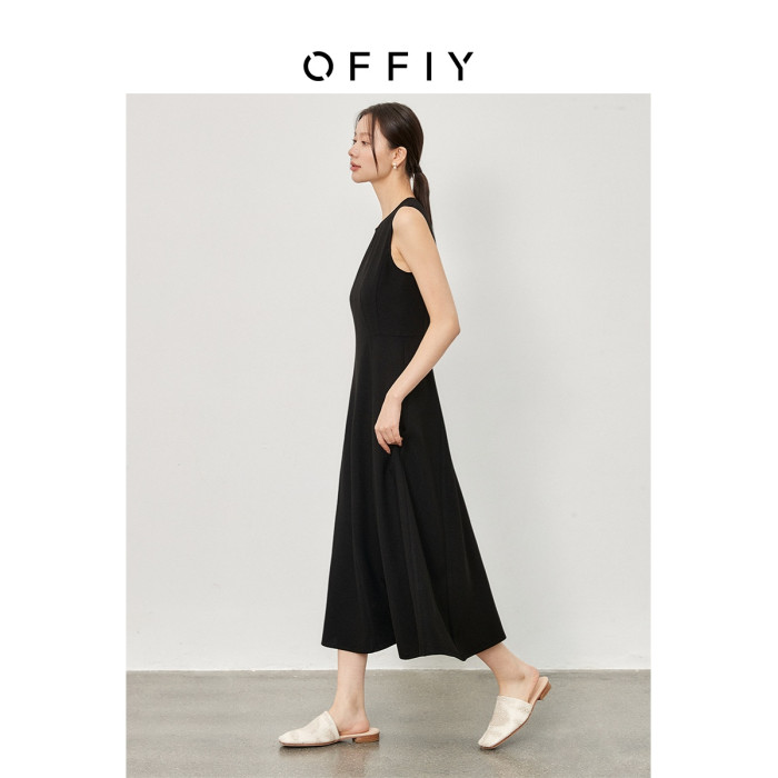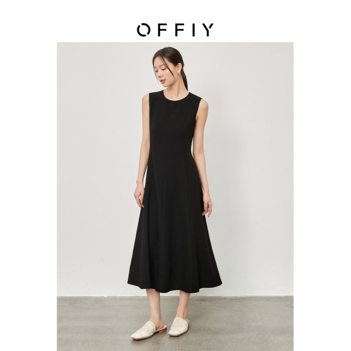 OFFIY-上架就賣斷 王者小黑裙 高級醋酸法式赫本風無袖長款連衣裙