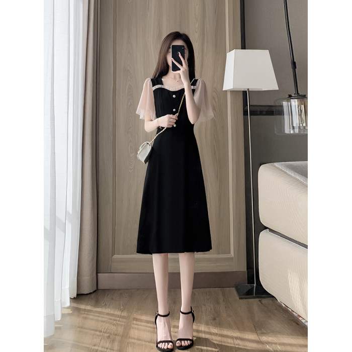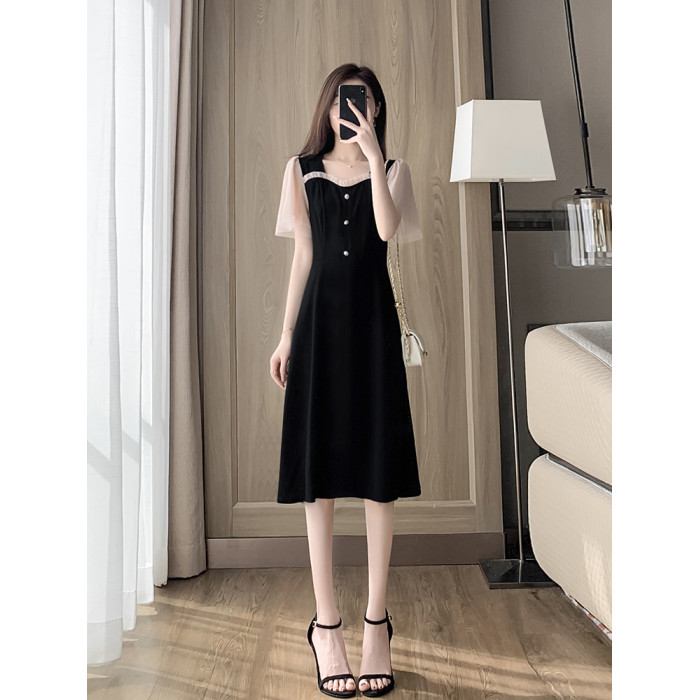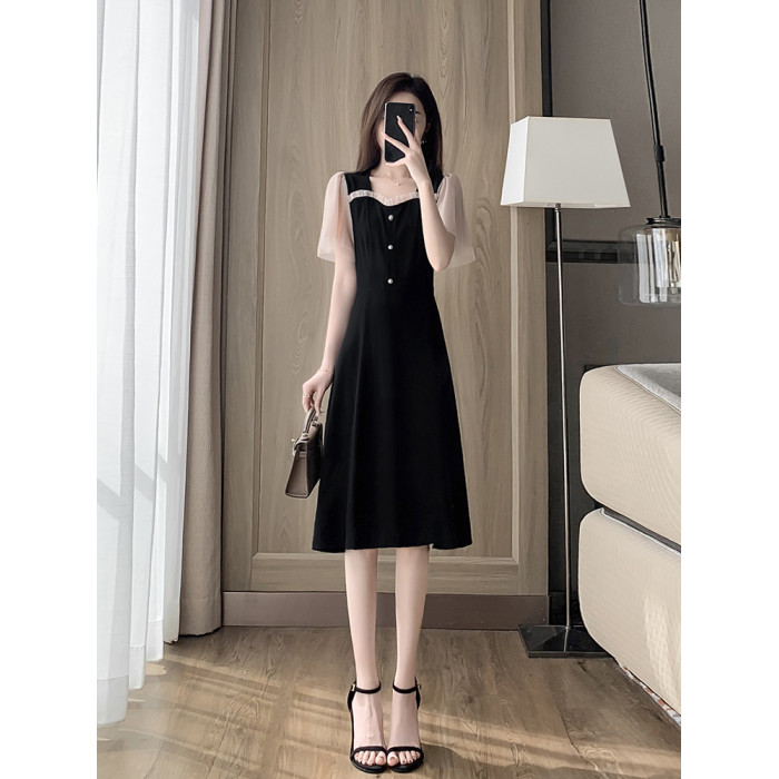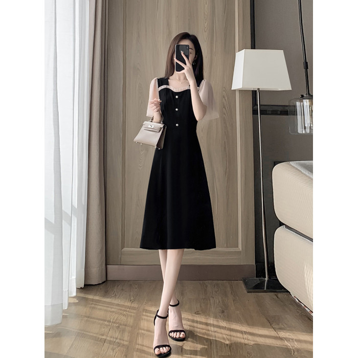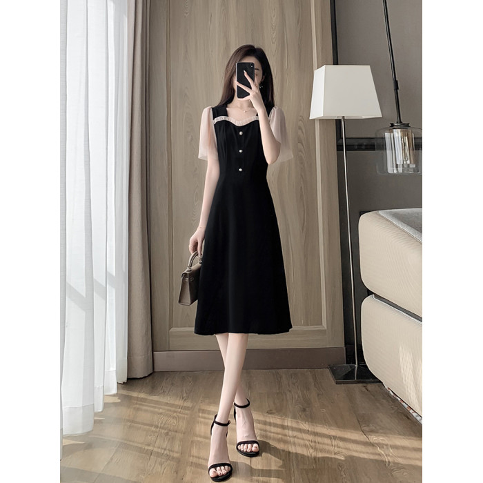 小個子法式小黑裙黑色雪紡連衣裙女2025新款夏季氣質收腰a字裙子