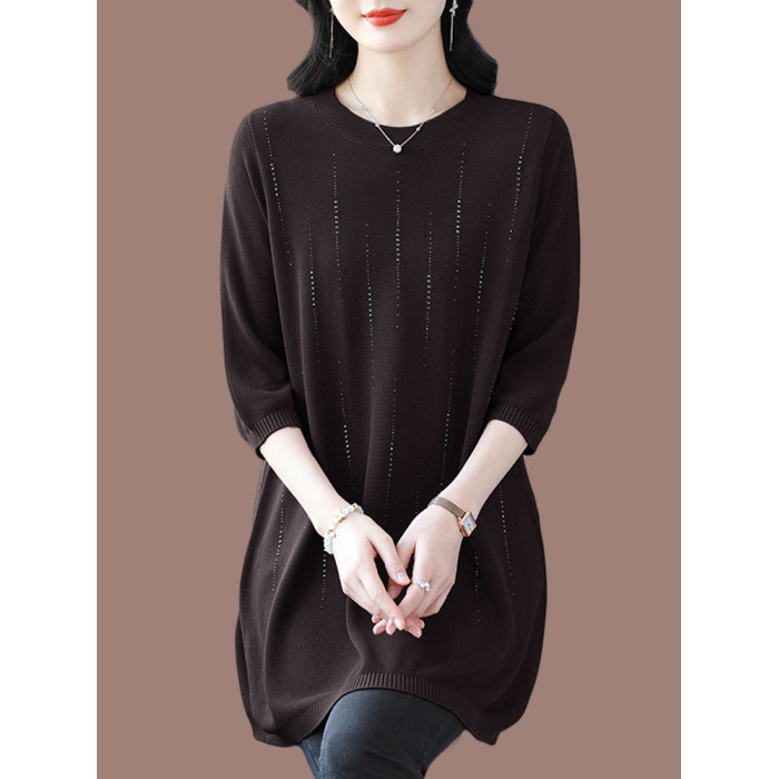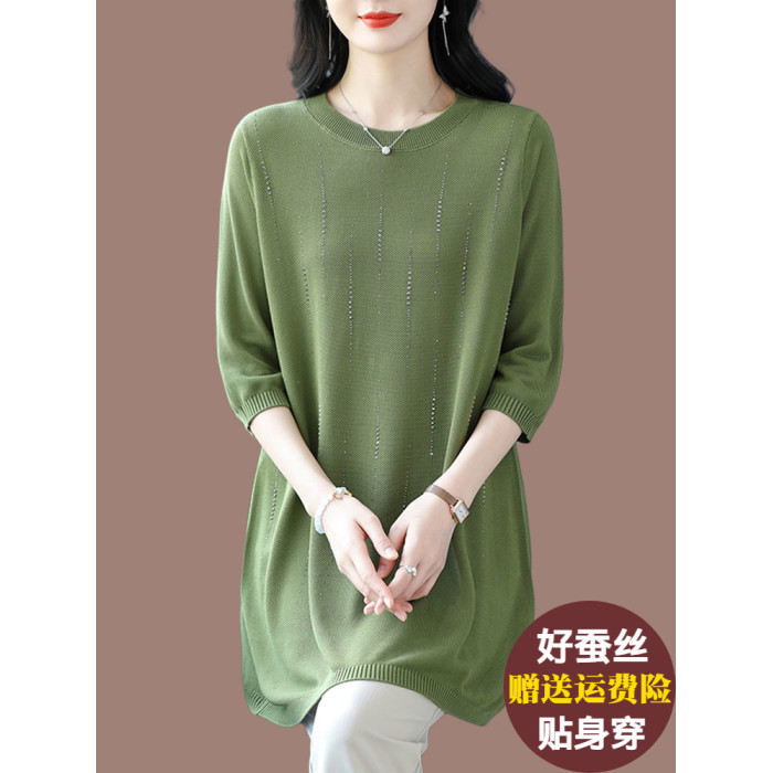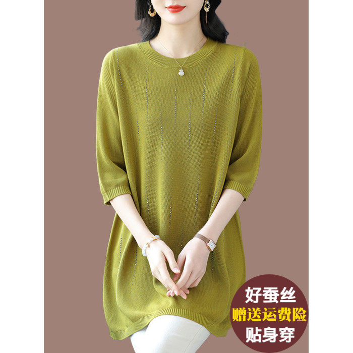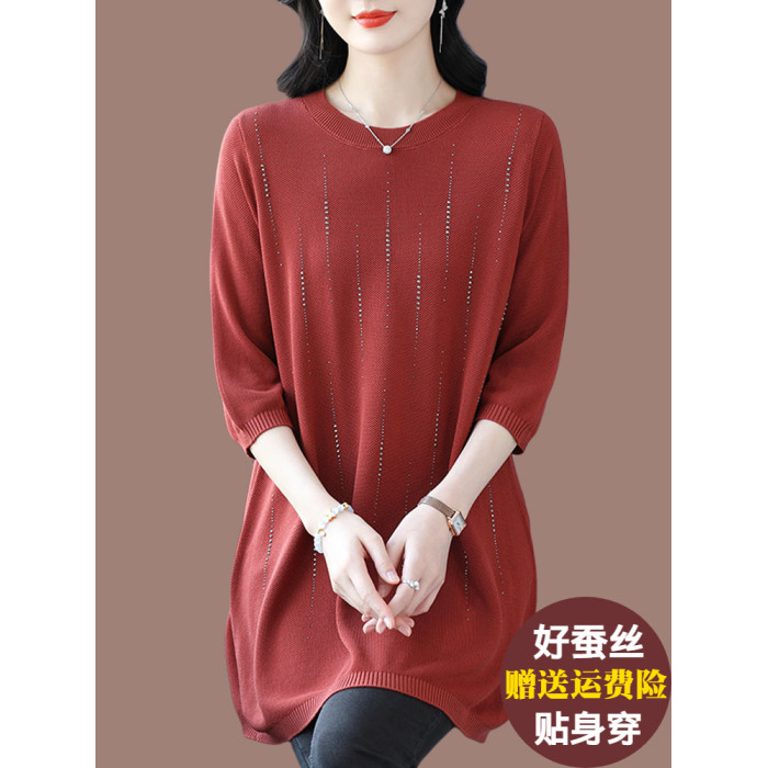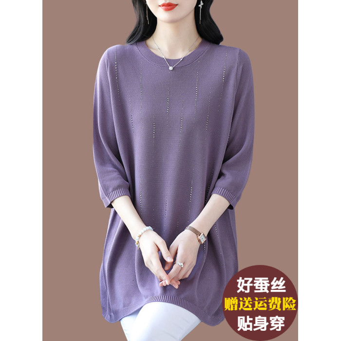 加肥加大碼桑蠶絲針織衫女中長款寬松200斤冰絲上衣遮肚子打底衫