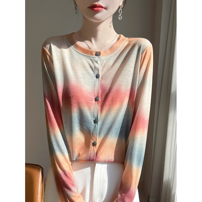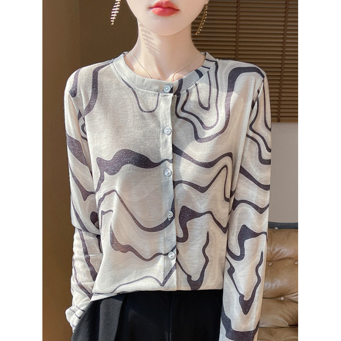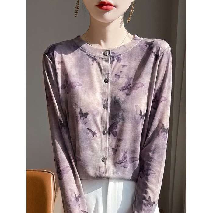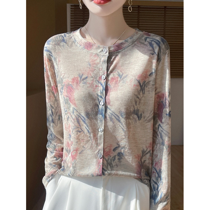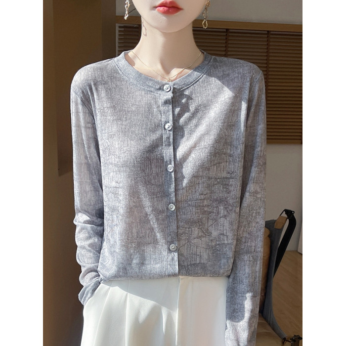 超細膩軟糯高級感萊賽爾天絲女針織打底衫開衫印花園領外套薄款衫