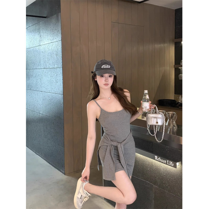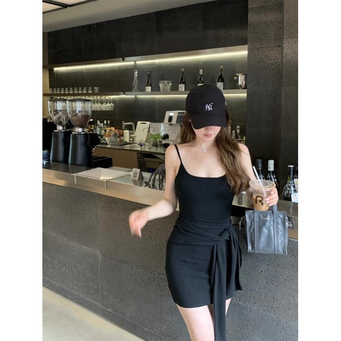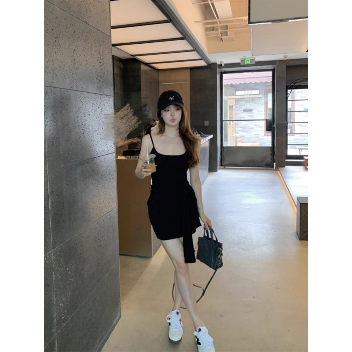 美式氣質帶胸墊吊帶連衣裙女夏季設計感綁帶收腰包臀裙辣妹短裙子