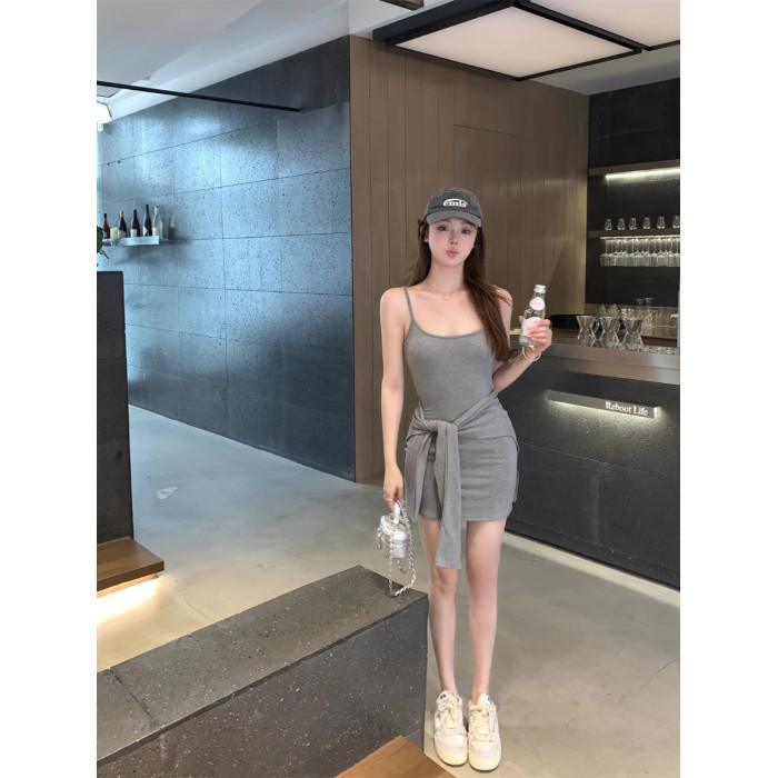 灰色【女裝/風情萬種/衣服/超好看/釣系約會裙/氣場/強大/韓系/顯瘦/小個子/顯高/冷淡風/小香風/微胖/女生/今年流行/純欲風/性感/歐美】