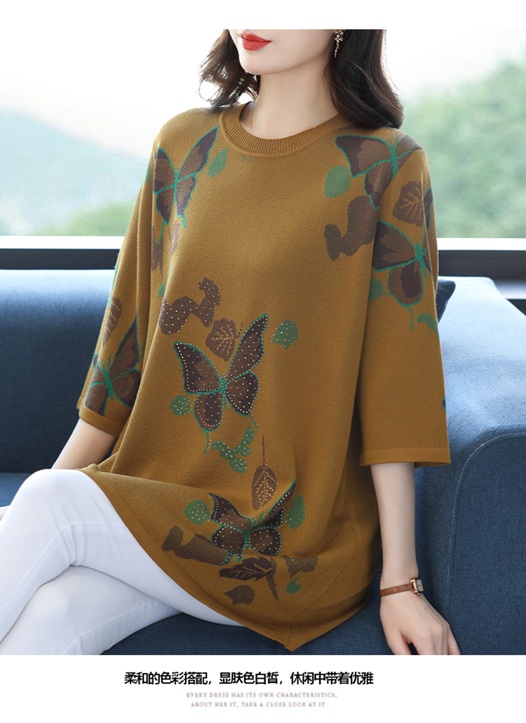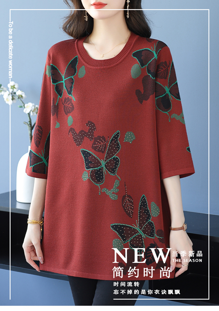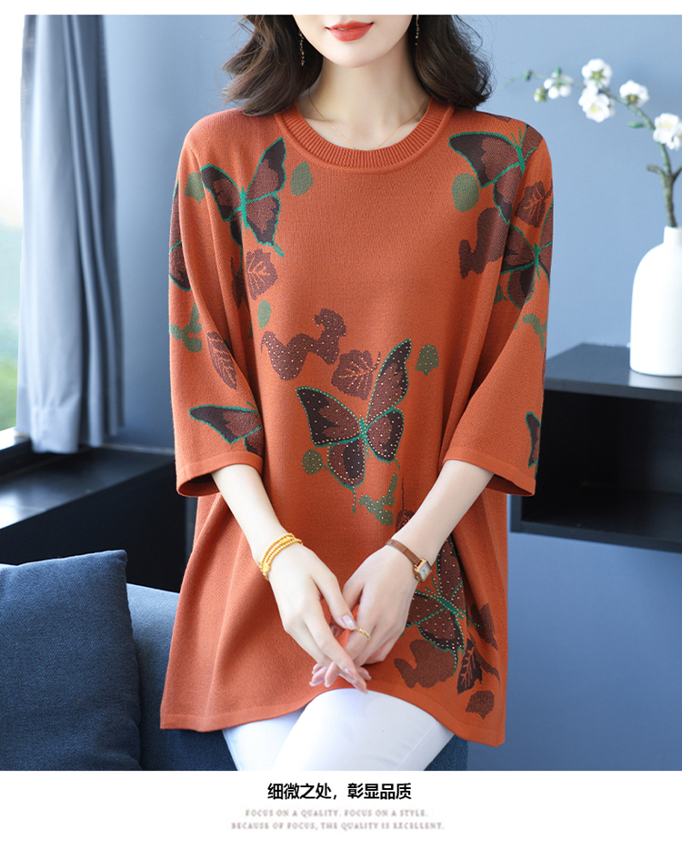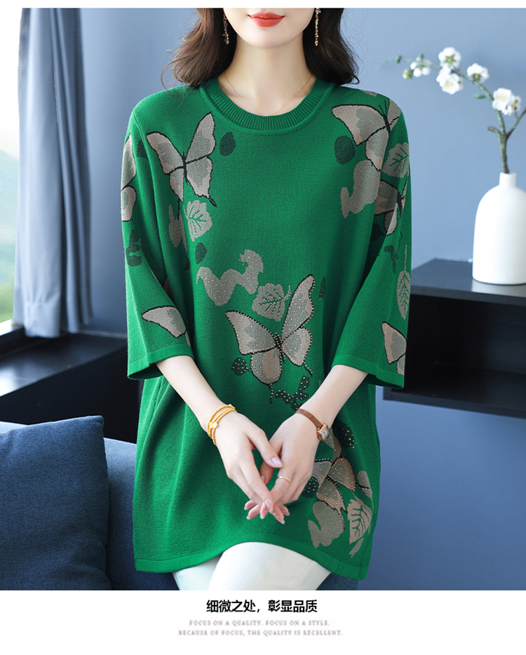 中年媽媽裝針織衫女薄款夏冰絲寬松大碼洋氣遮肉顯瘦七分袖打底衫
