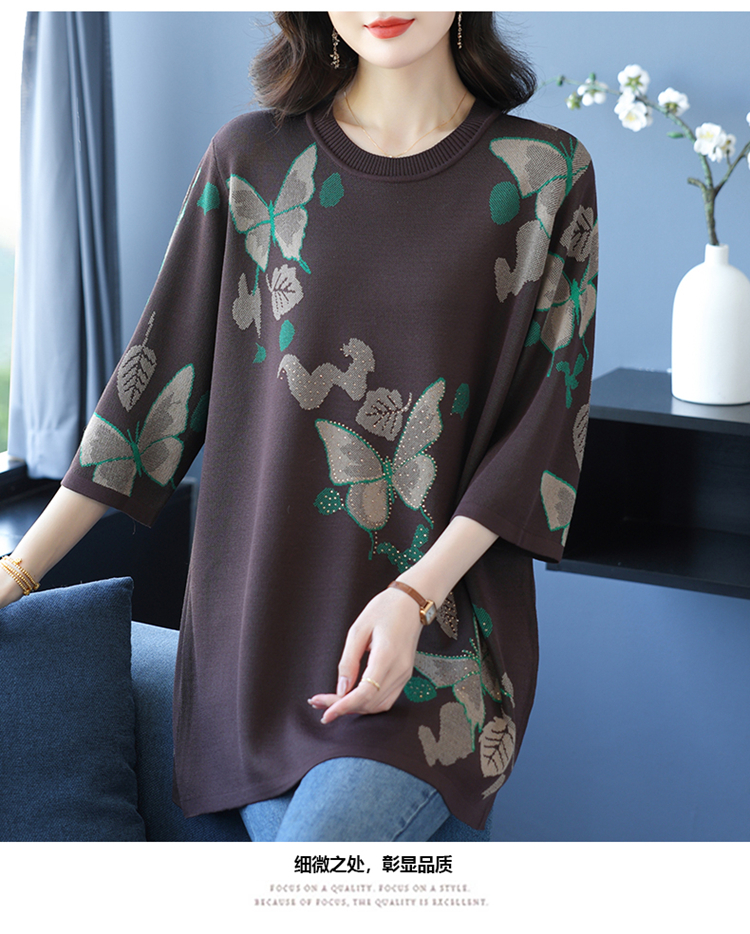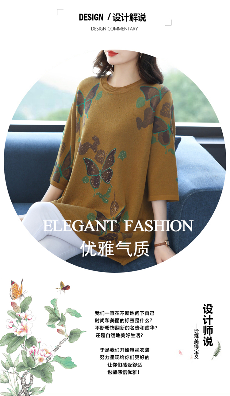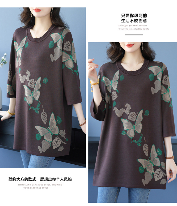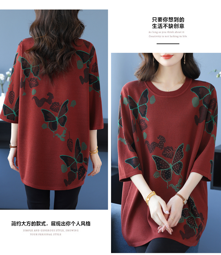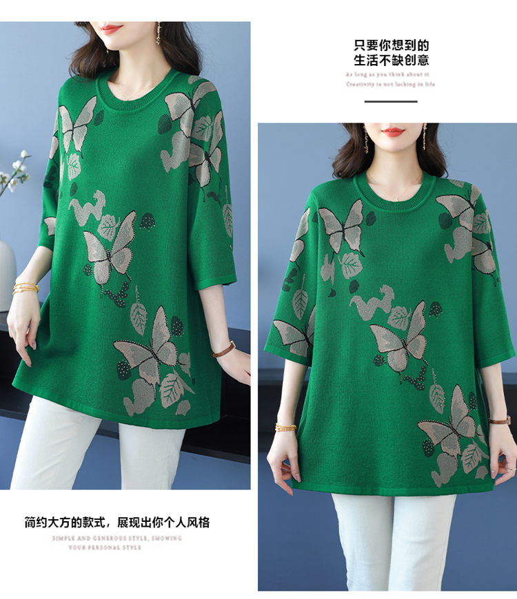 中年媽媽裝針織衫女薄款夏冰絲寬松大碼洋氣遮肉顯瘦七分袖打底衫