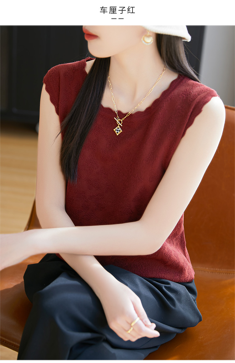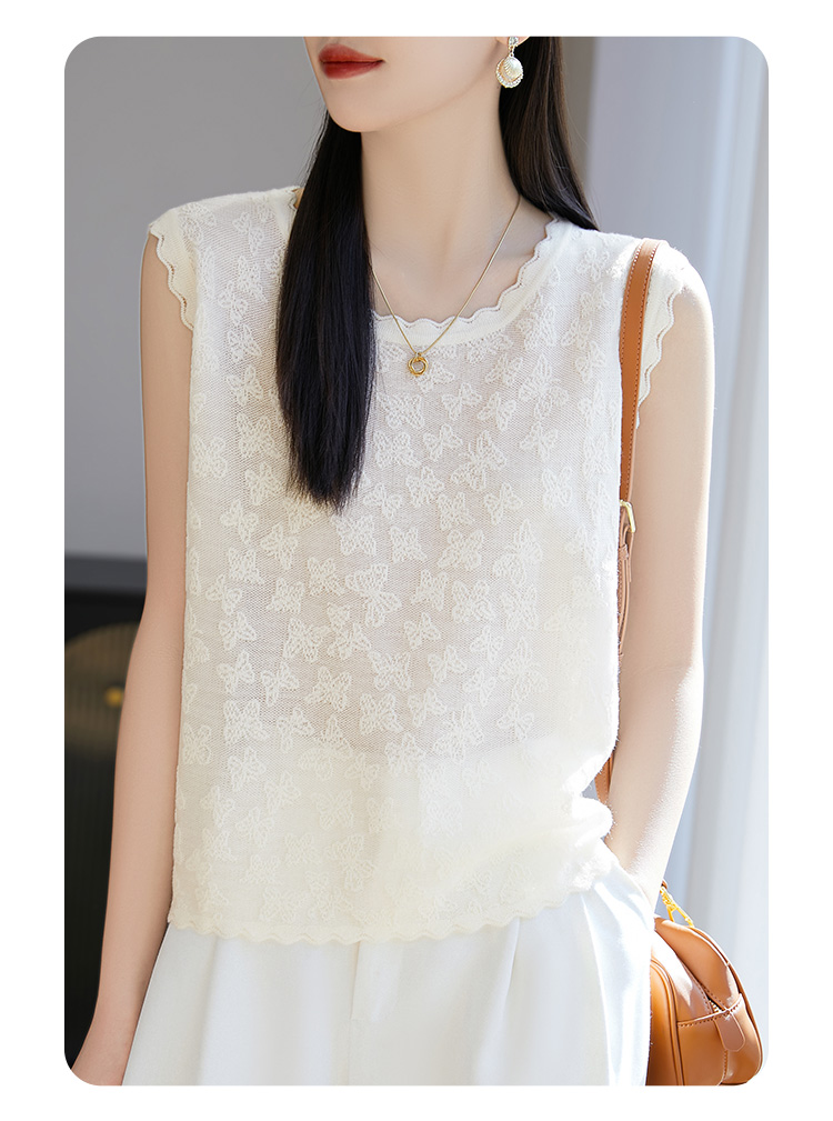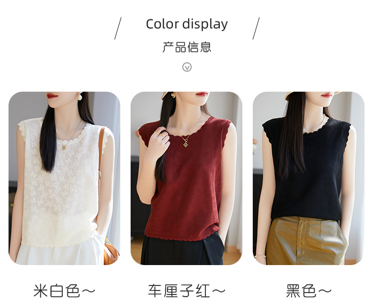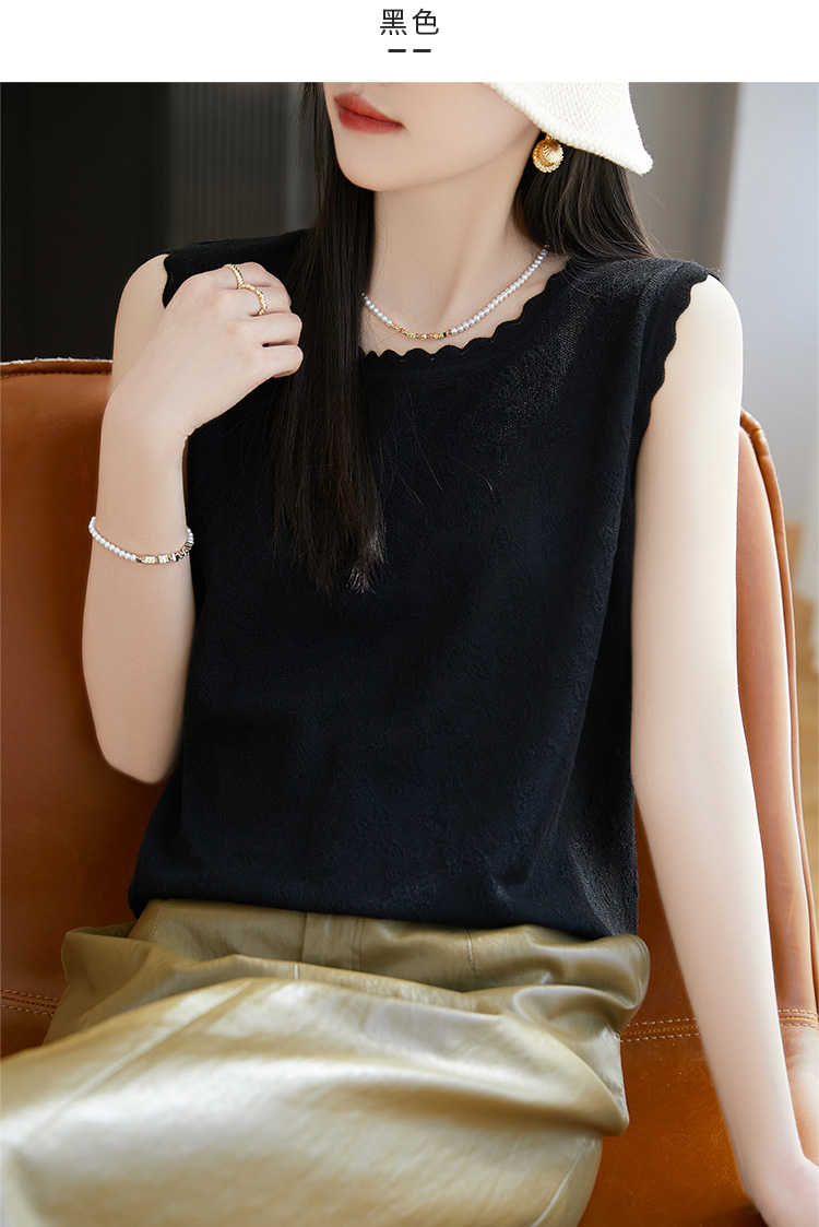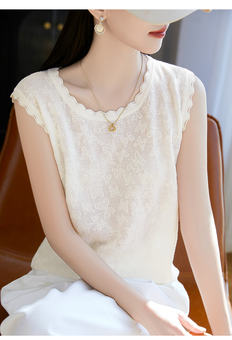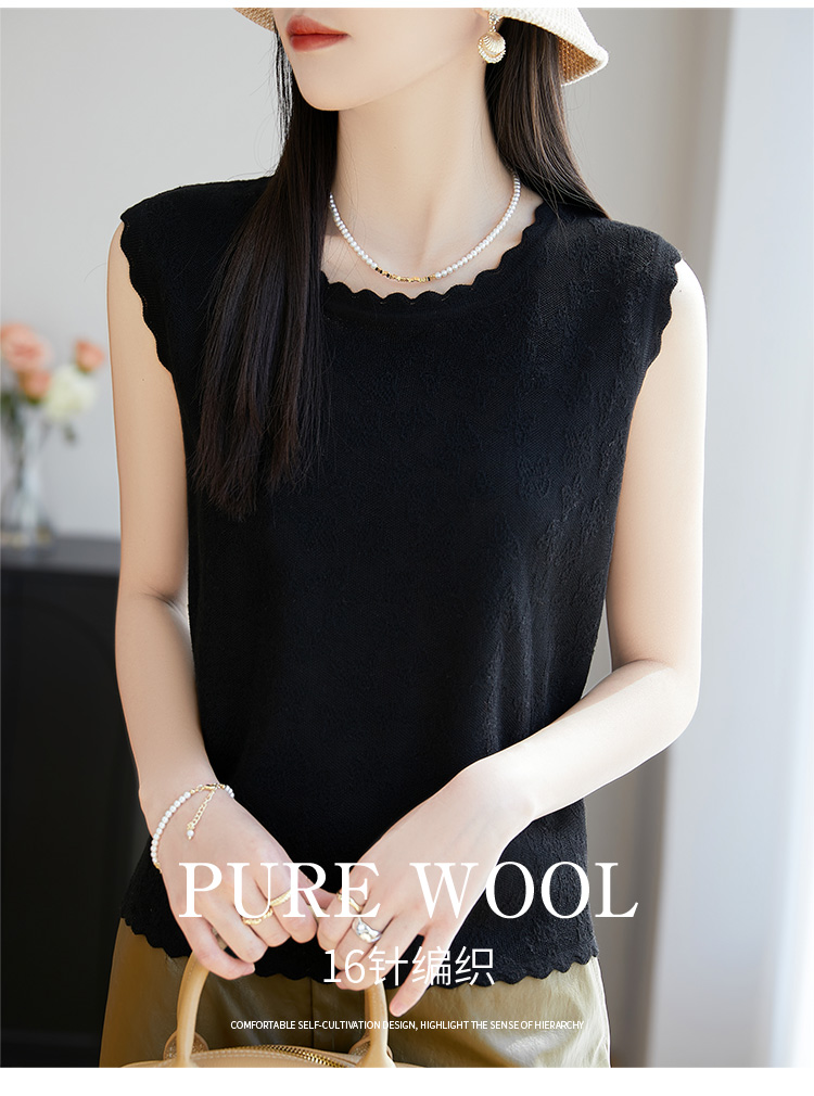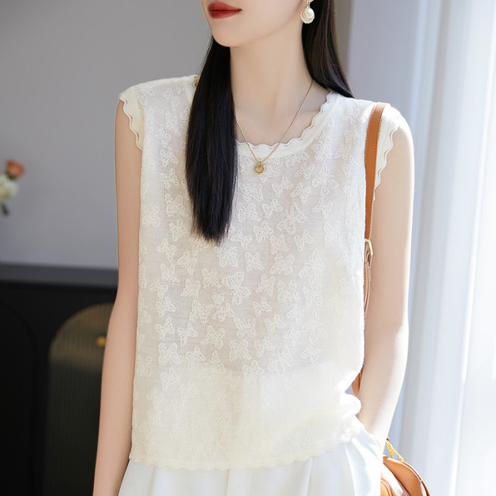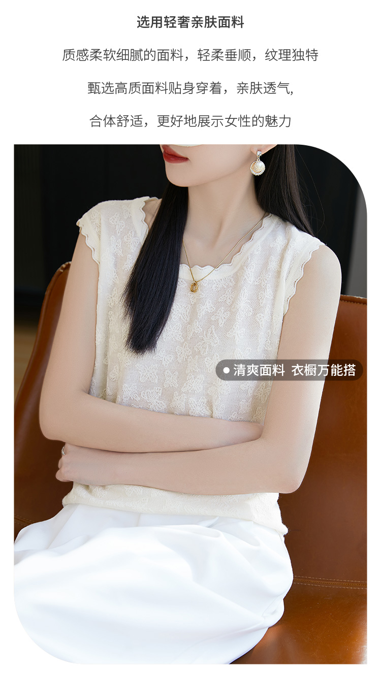 花邊圓領羊毛打底衫夏季洋氣提花寬松百搭無袖內搭背心針織上衣女