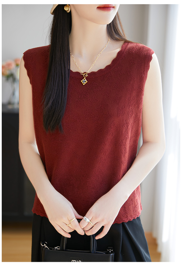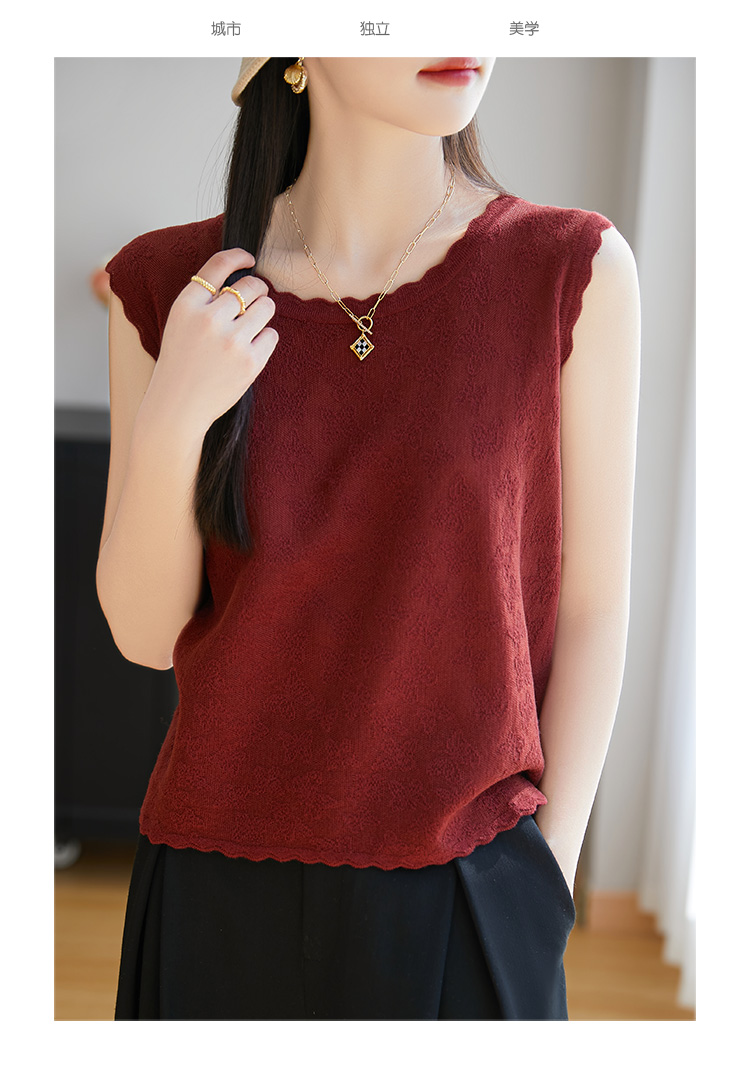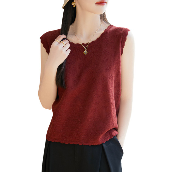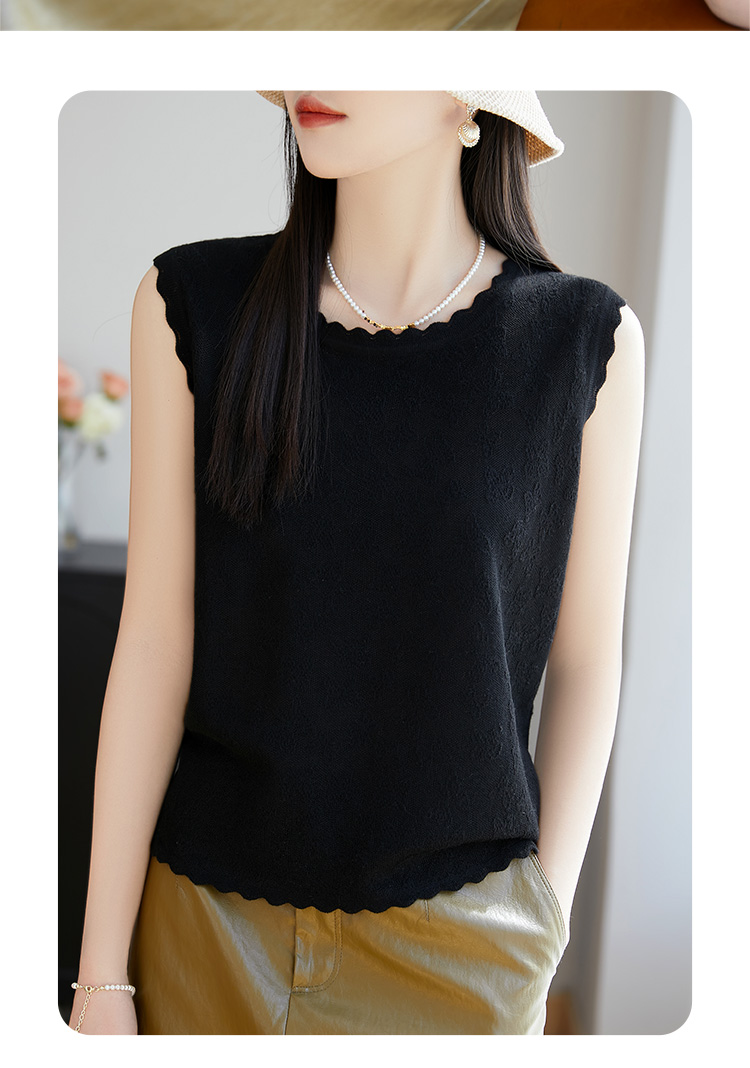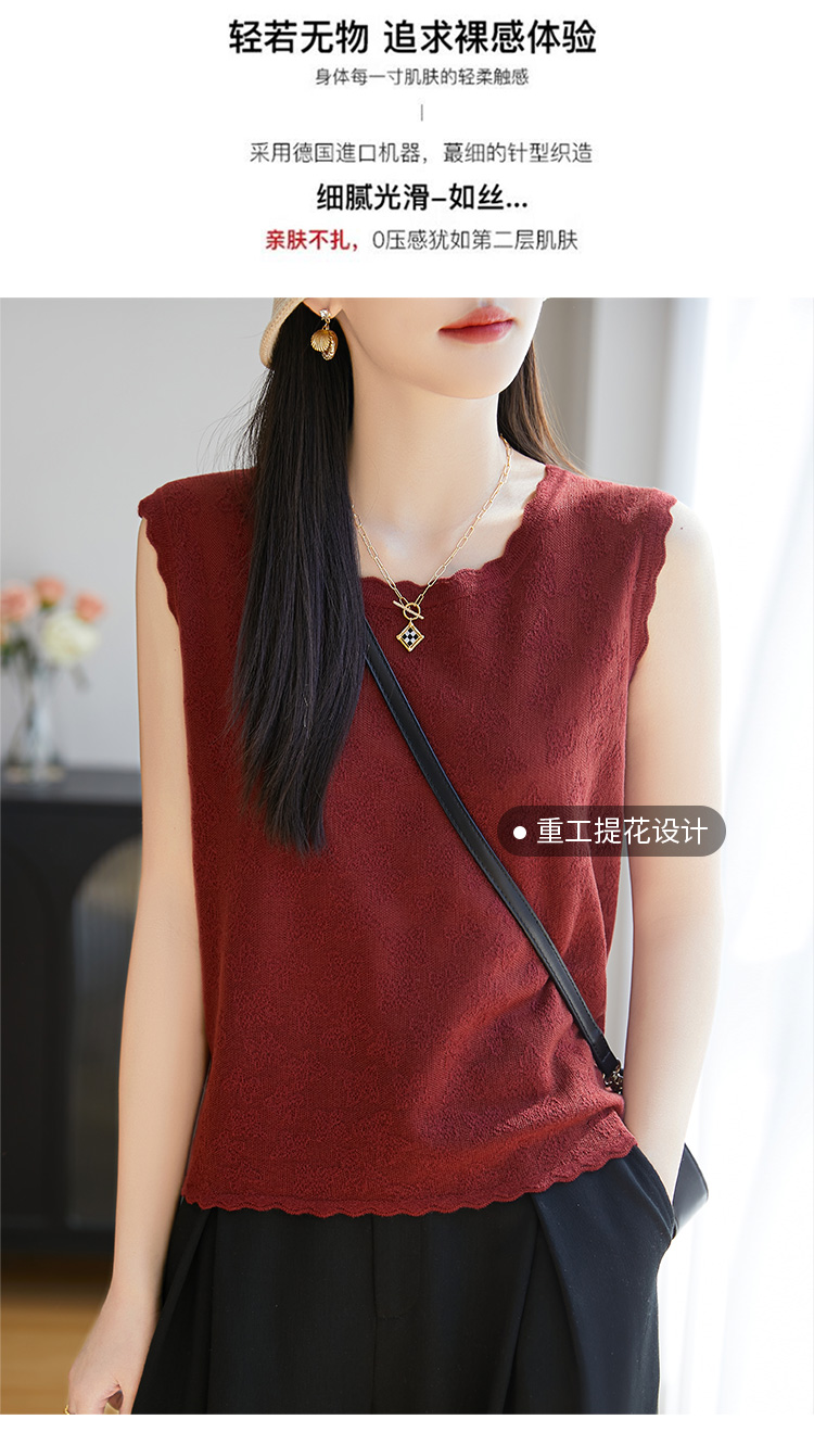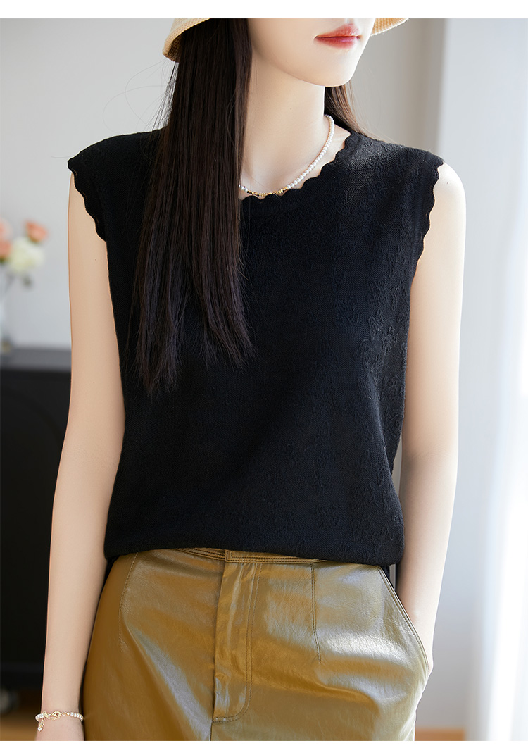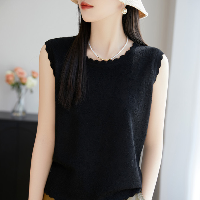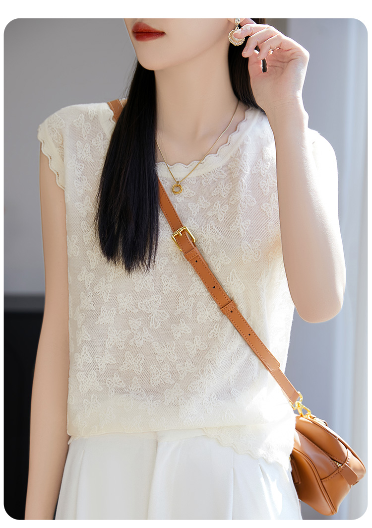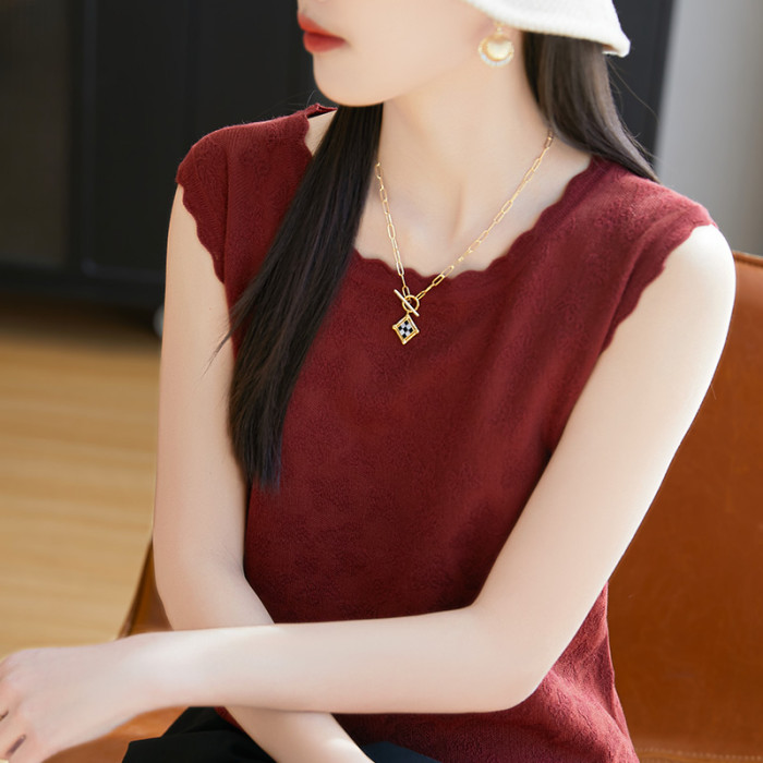 花邊圓領羊毛打底衫夏季洋氣提花寬松百搭無袖內搭背心針織上衣女
