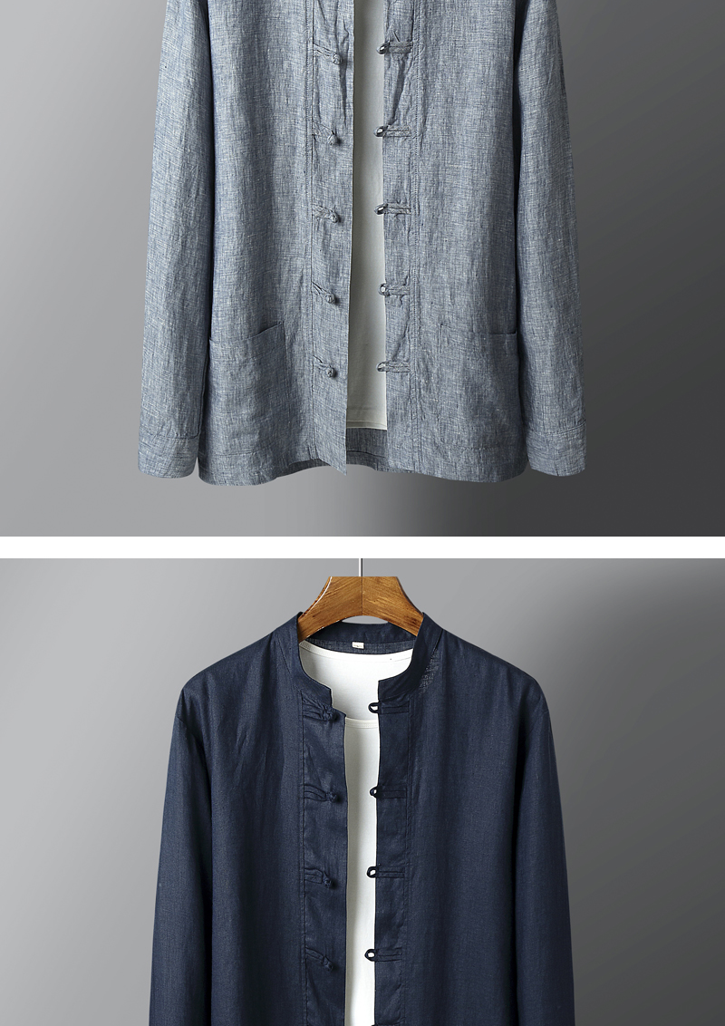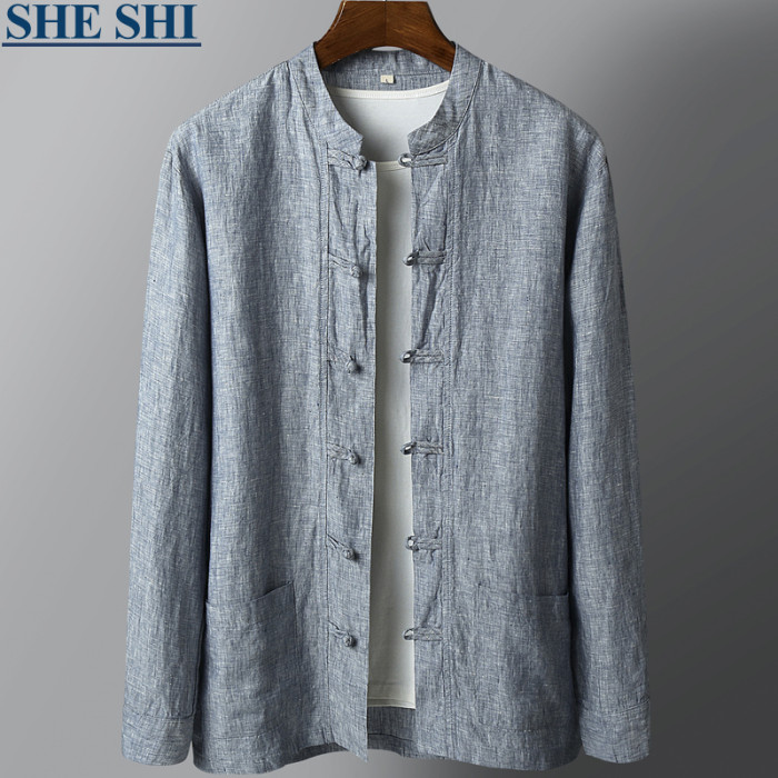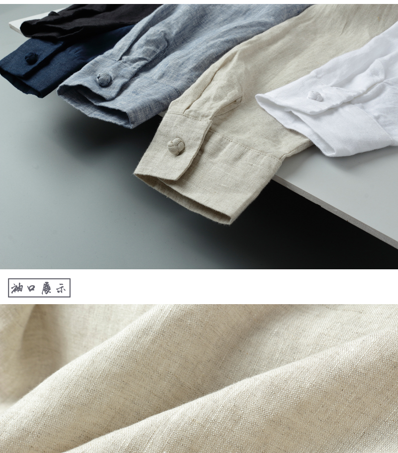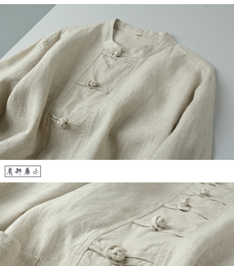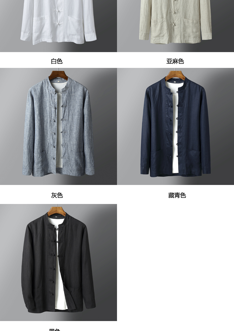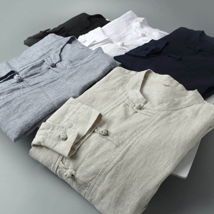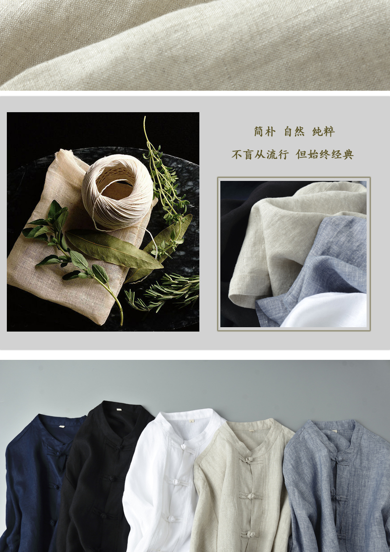 春秋百搭男亞麻襯衫長袖盤釦棉麻寬松立領休閒襯衣打底衫上衣外套
