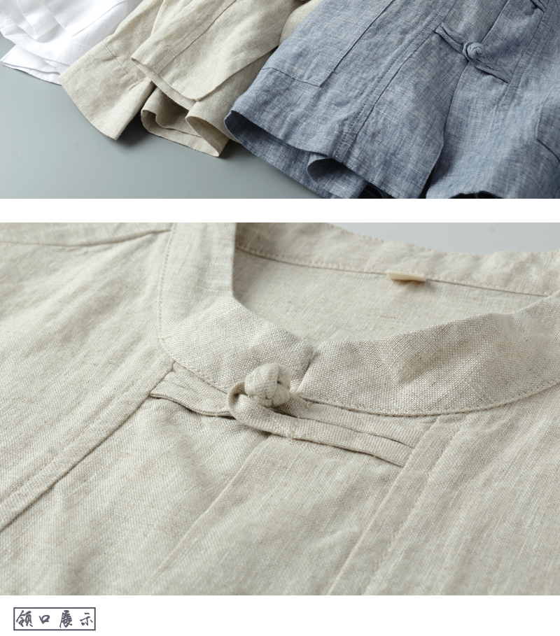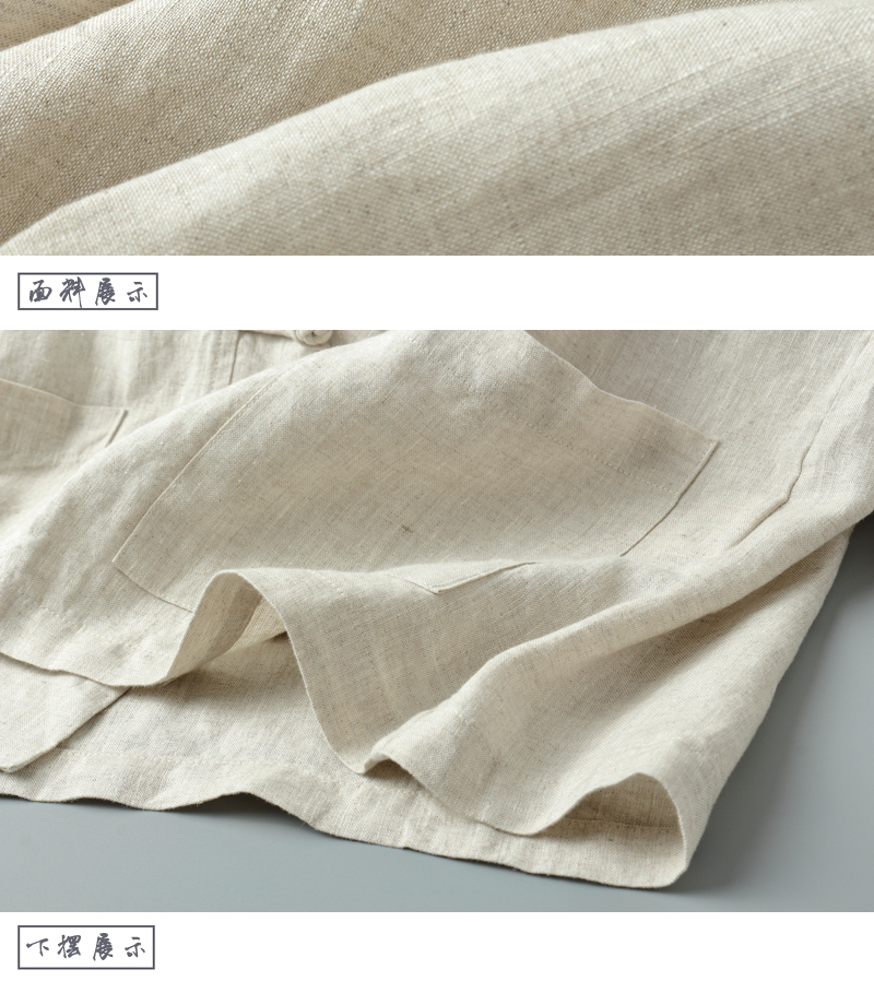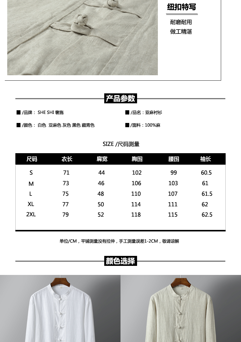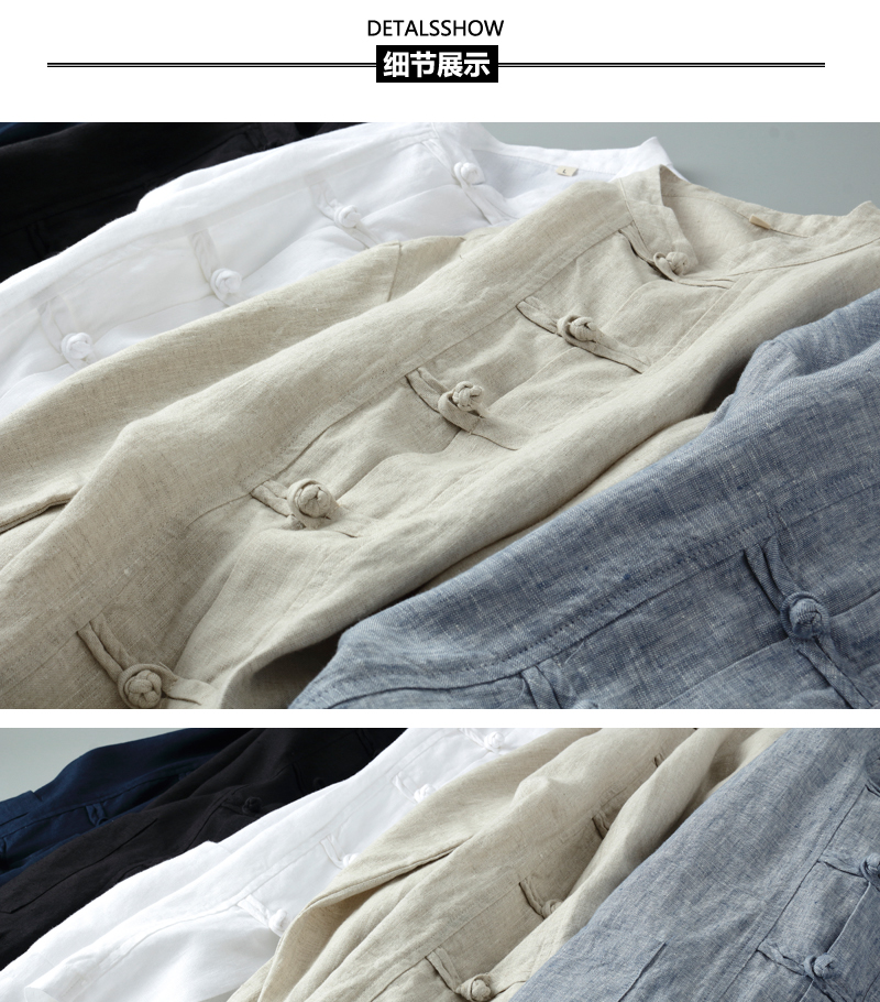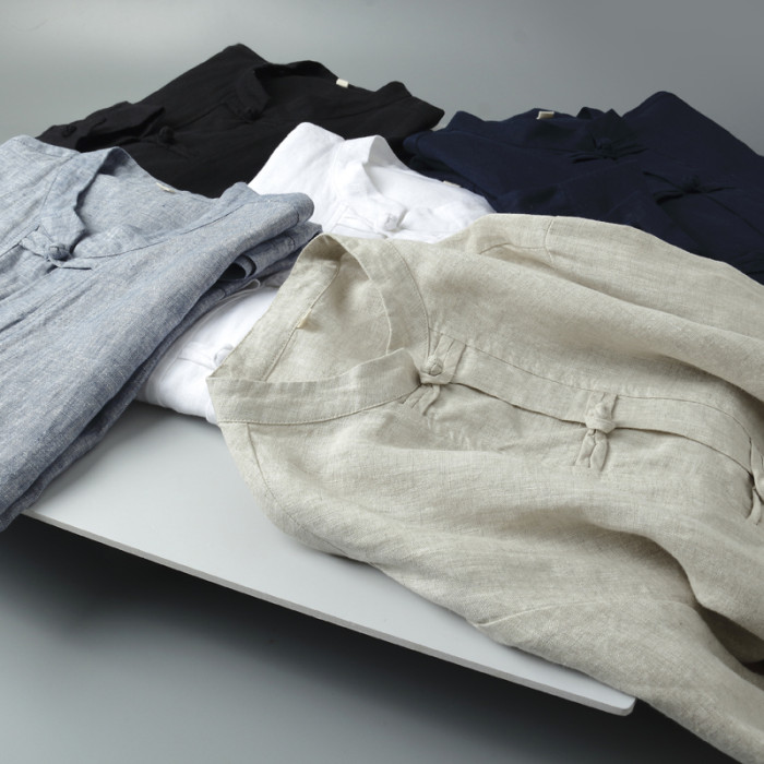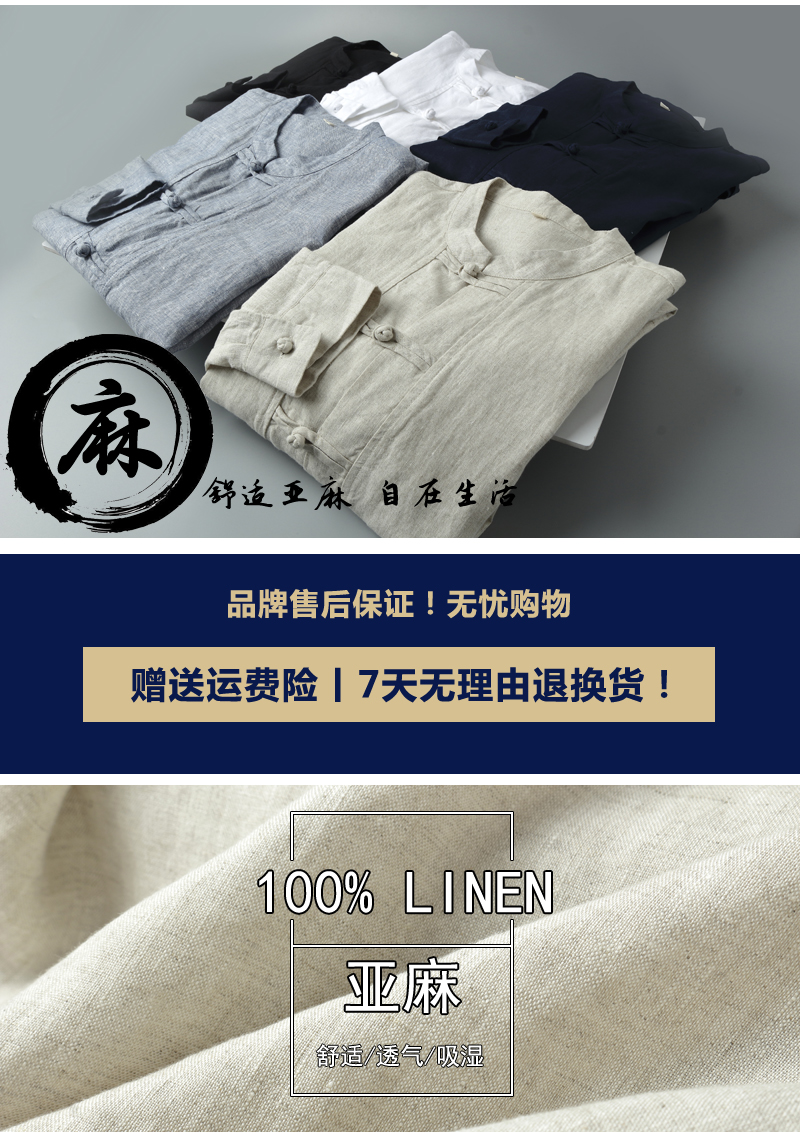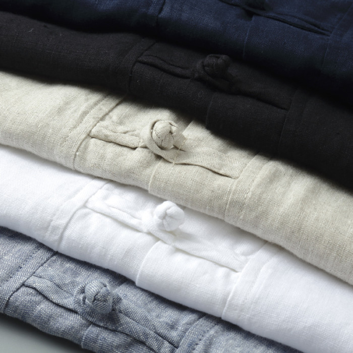 春秋百搭男亞麻襯衫長袖盤釦棉麻寬松立領休閒襯衣打底衫上衣外套