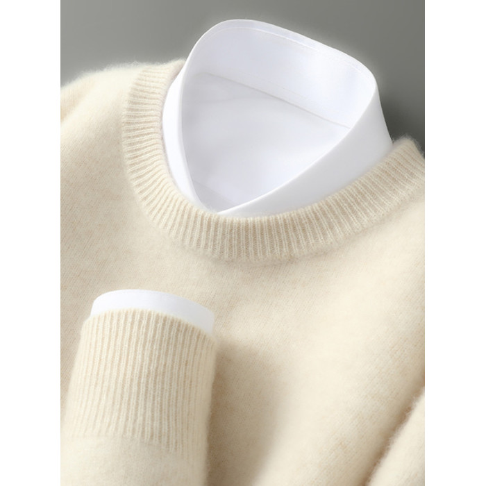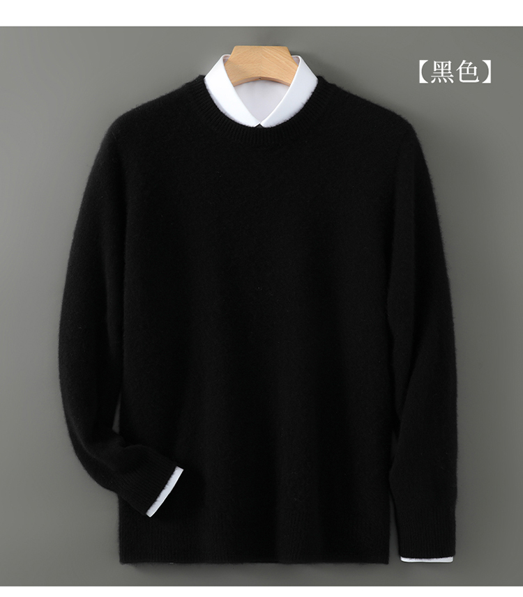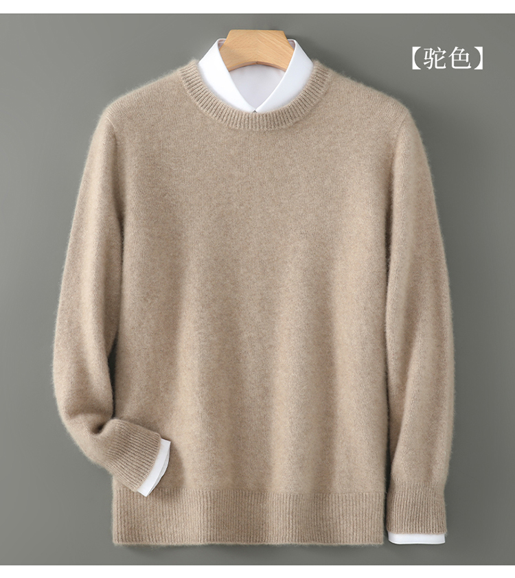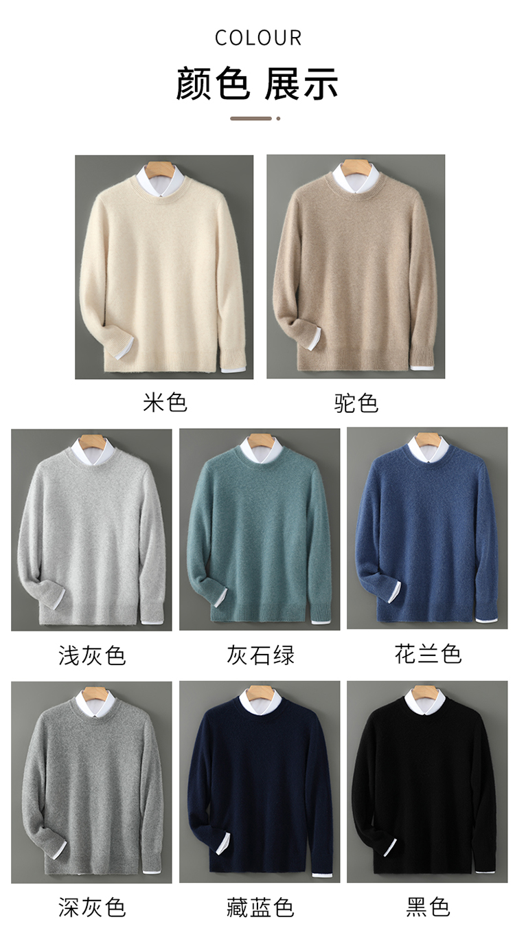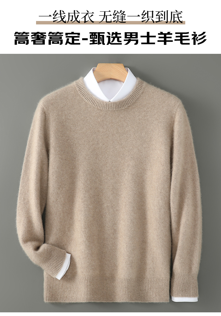 秋冬加厚100%純羊毛衫男士圓領毛衣男士羊絨衫寬松大碼針織打底衫