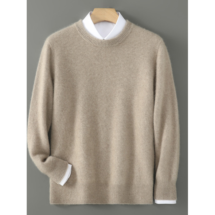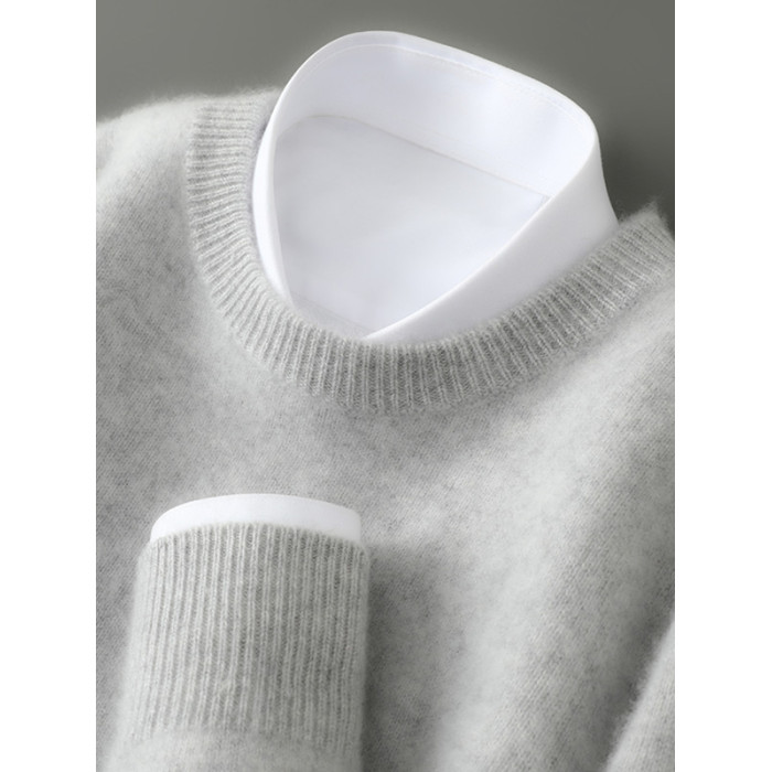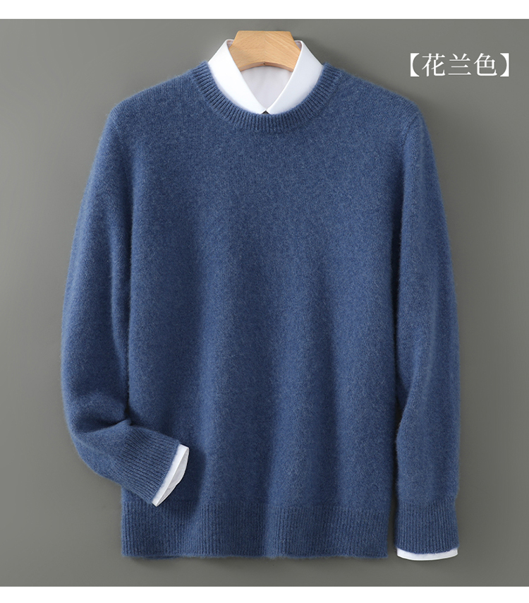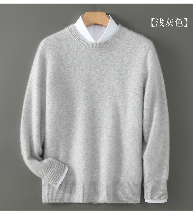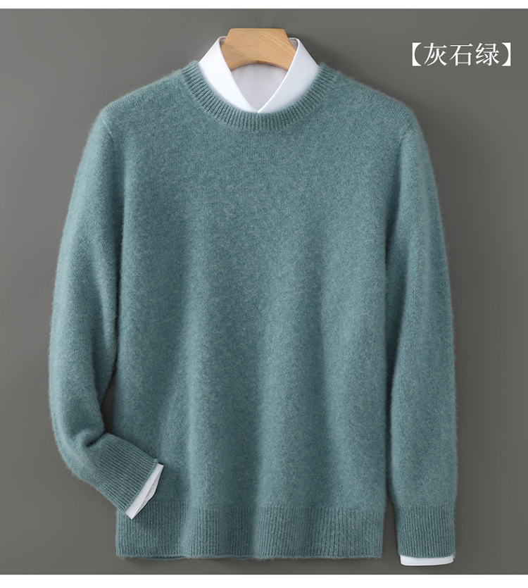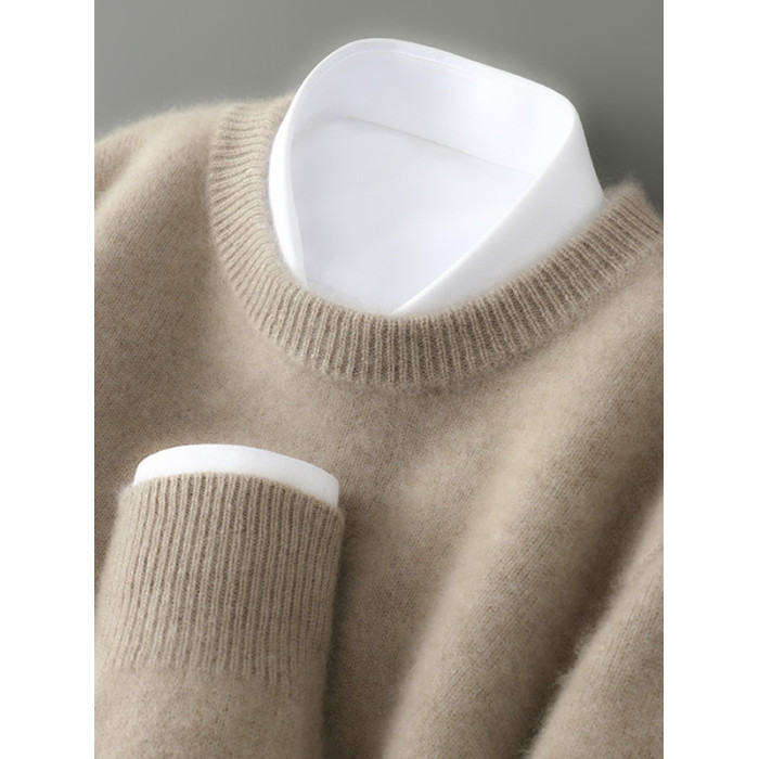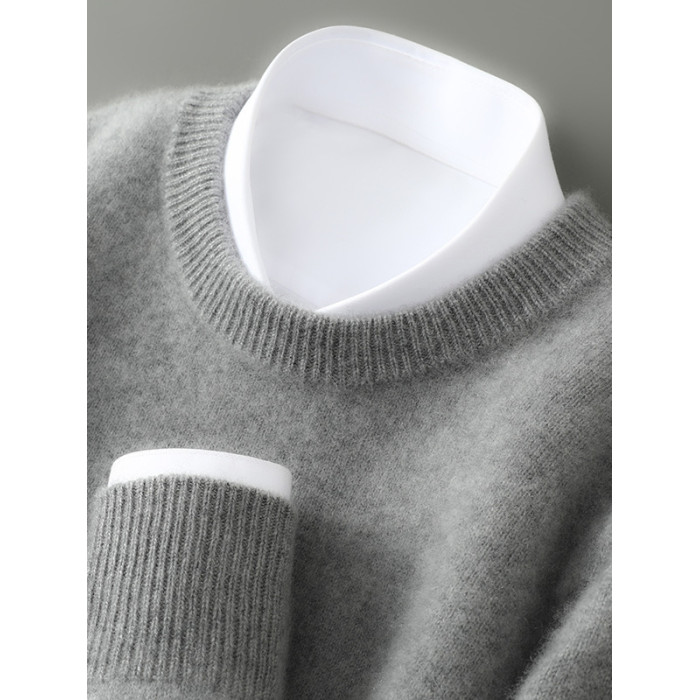 秋冬加厚100%純羊毛衫男士圓領毛衣男士羊絨衫寬松大碼針織打底衫