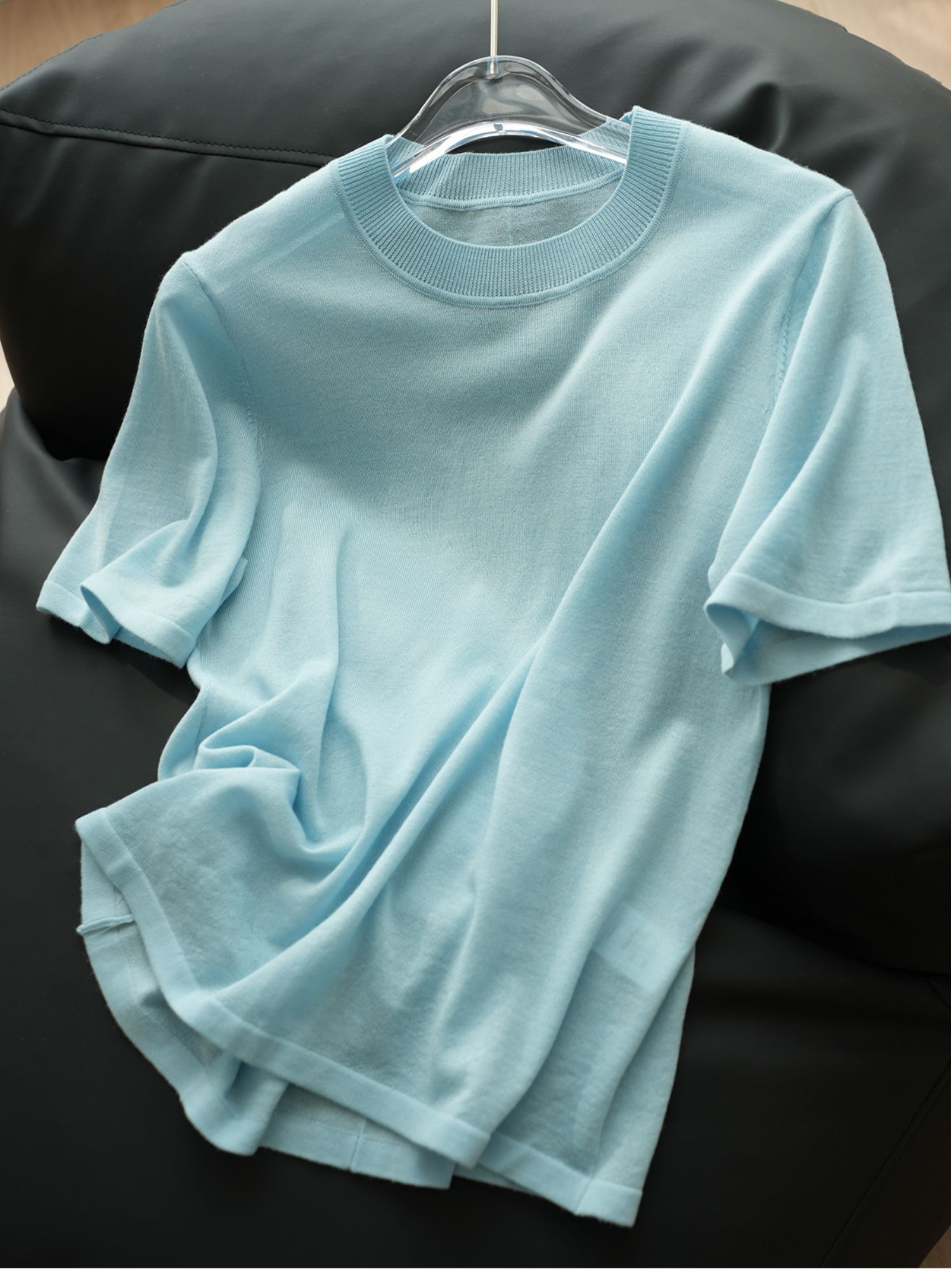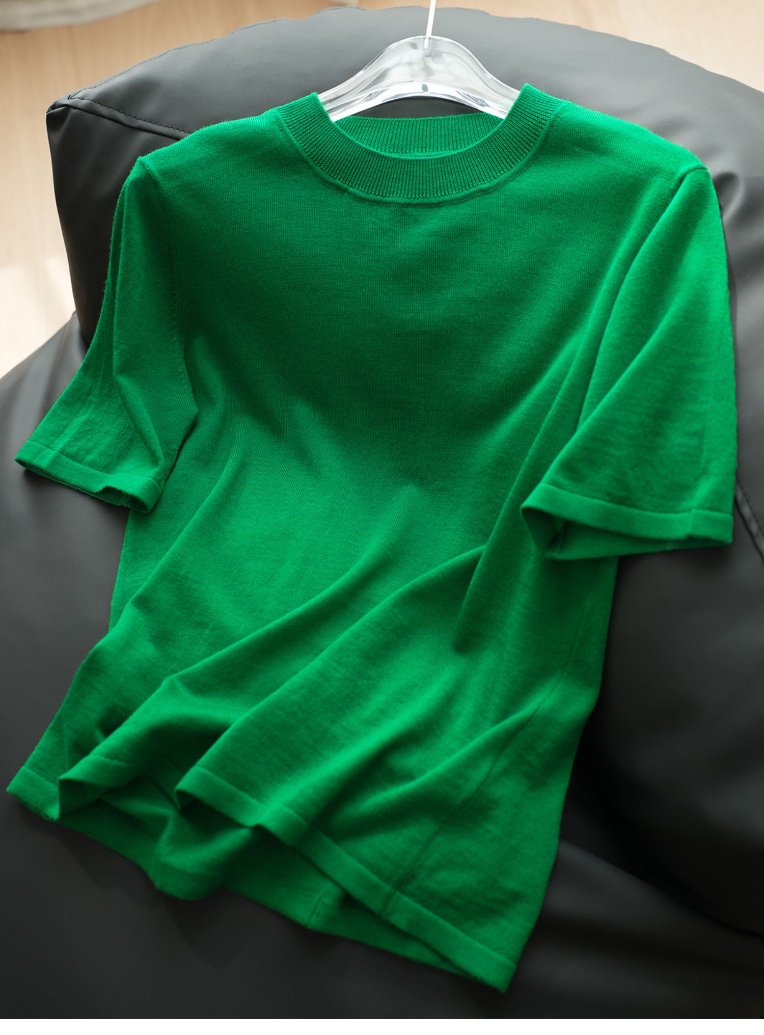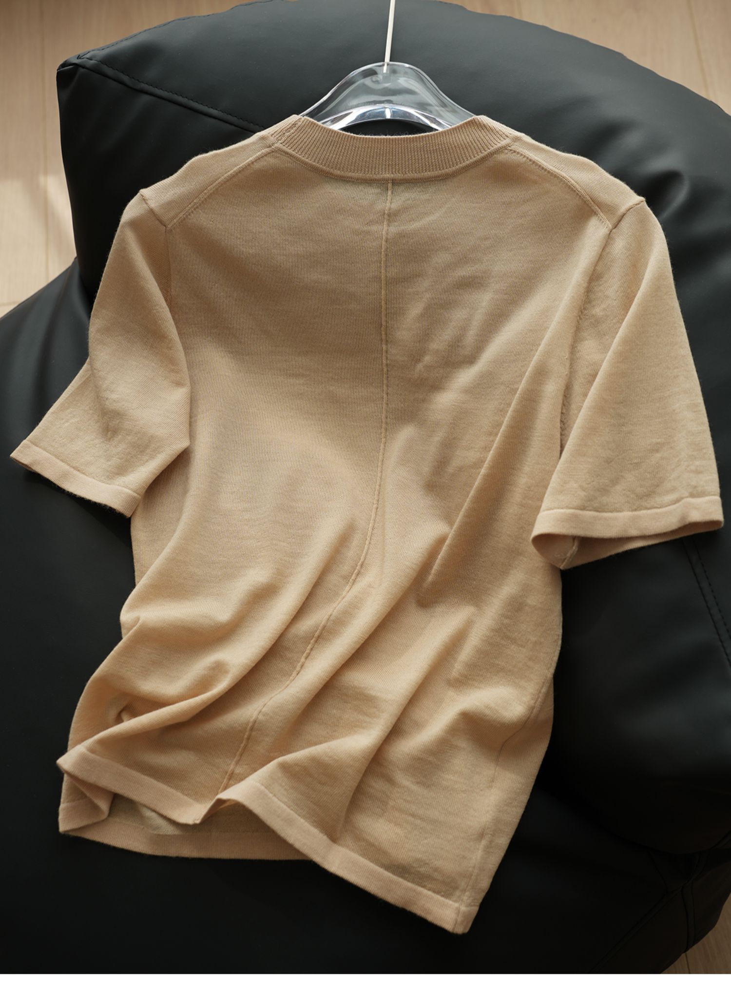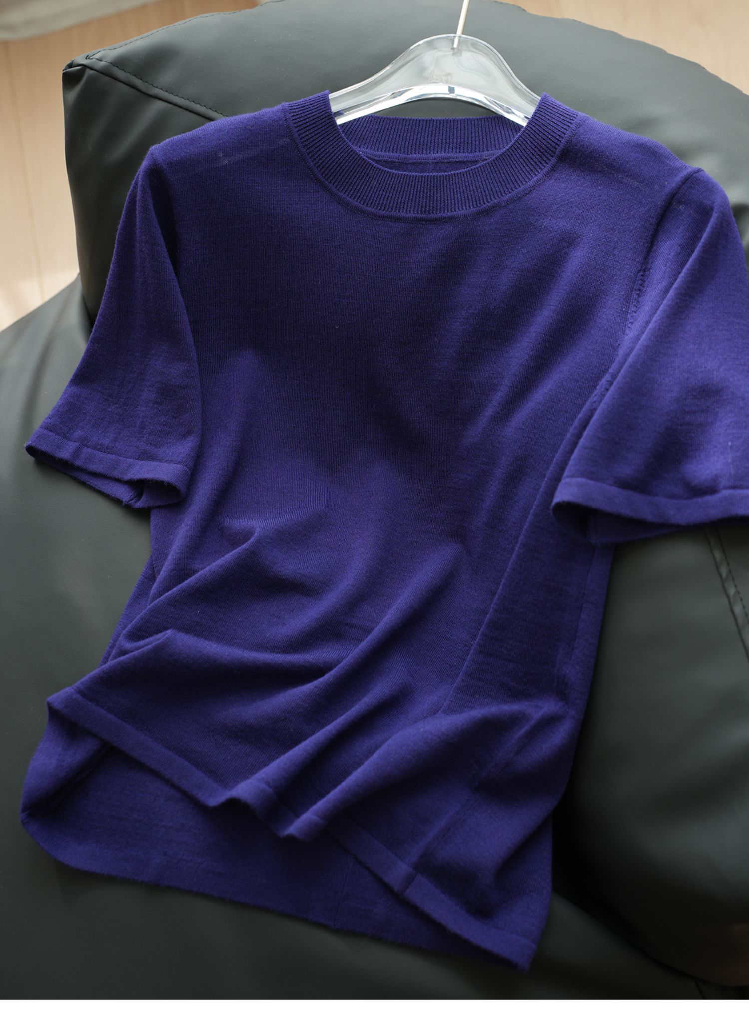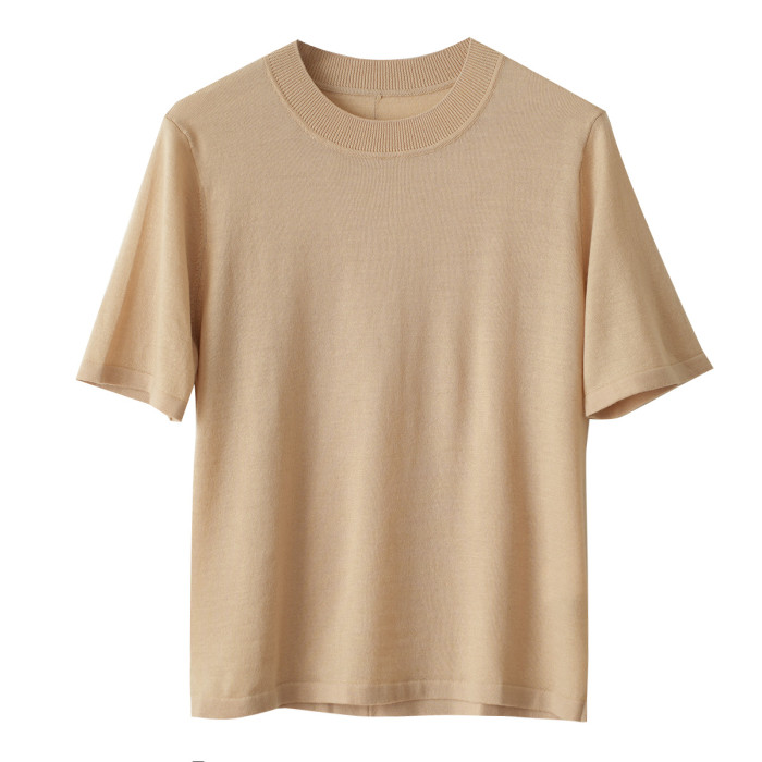 85714 福利特 女士全羊毛針織衫 圓領五分袖打底衫 中袖T 秋款