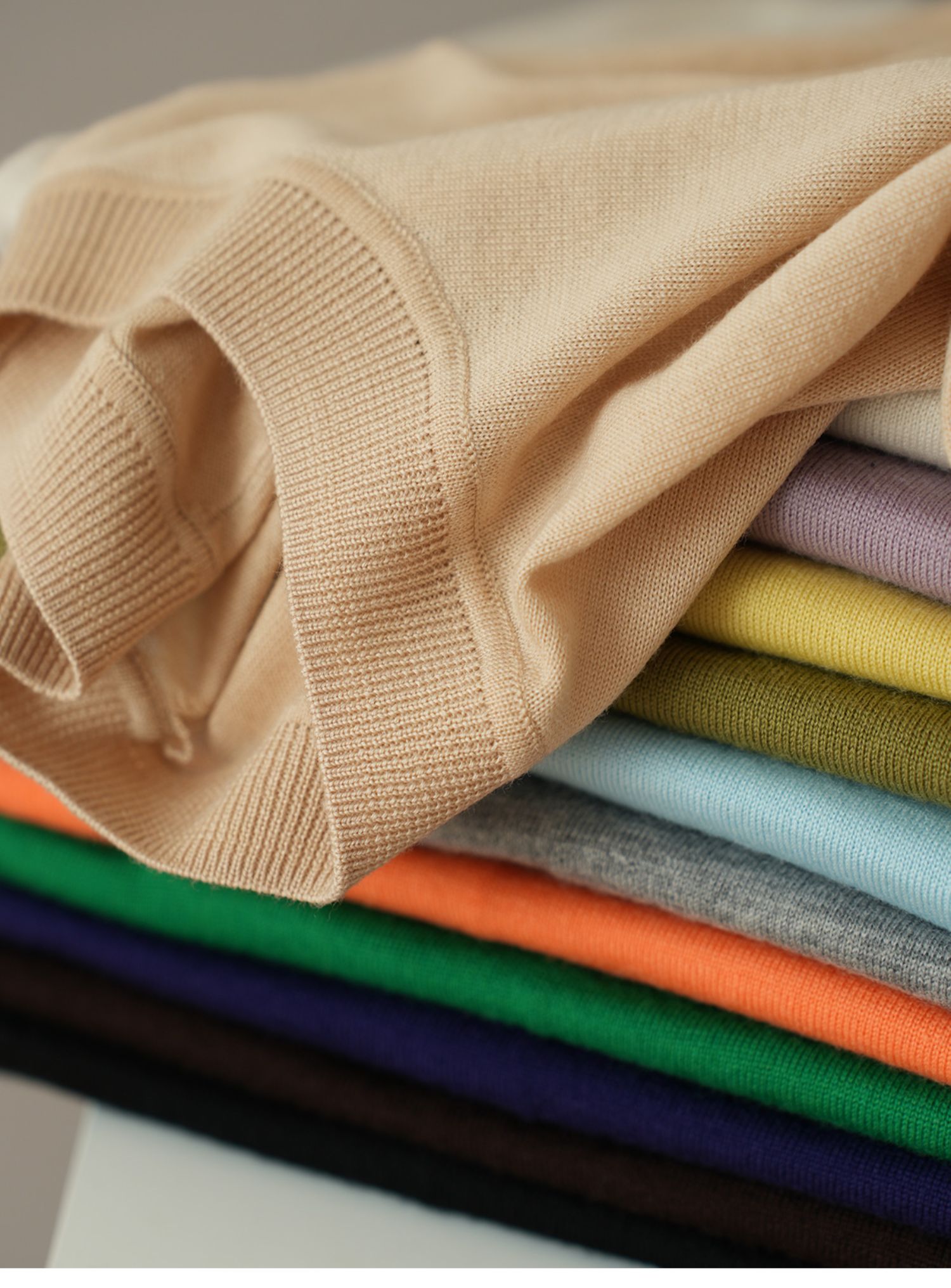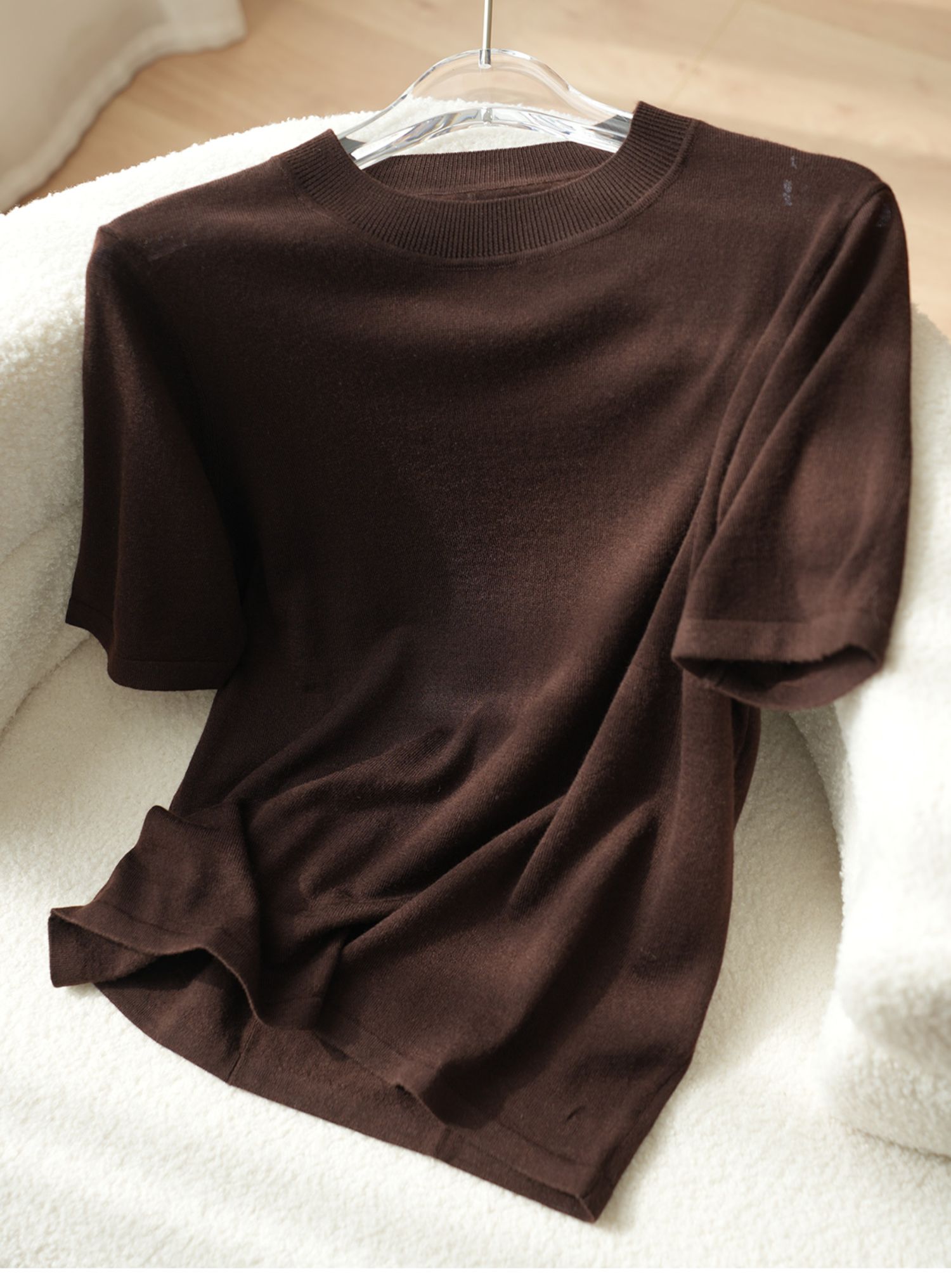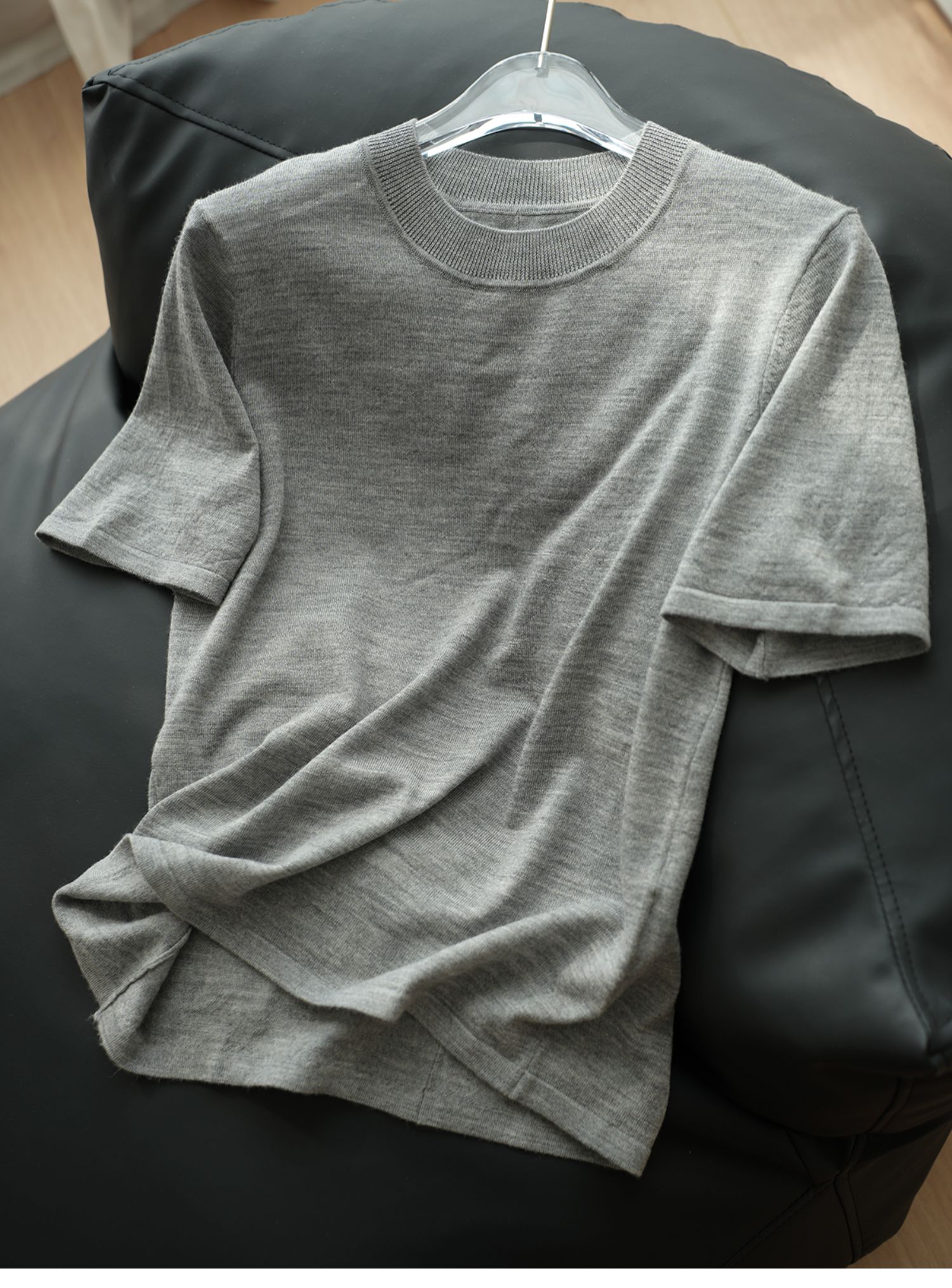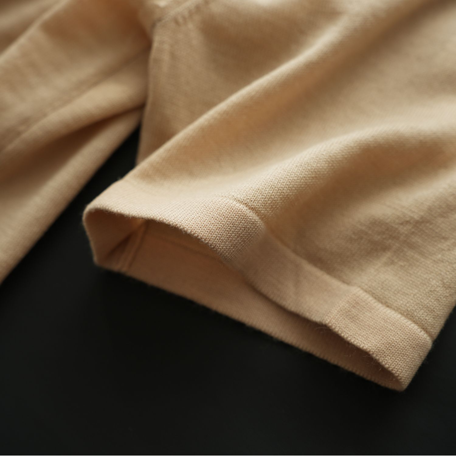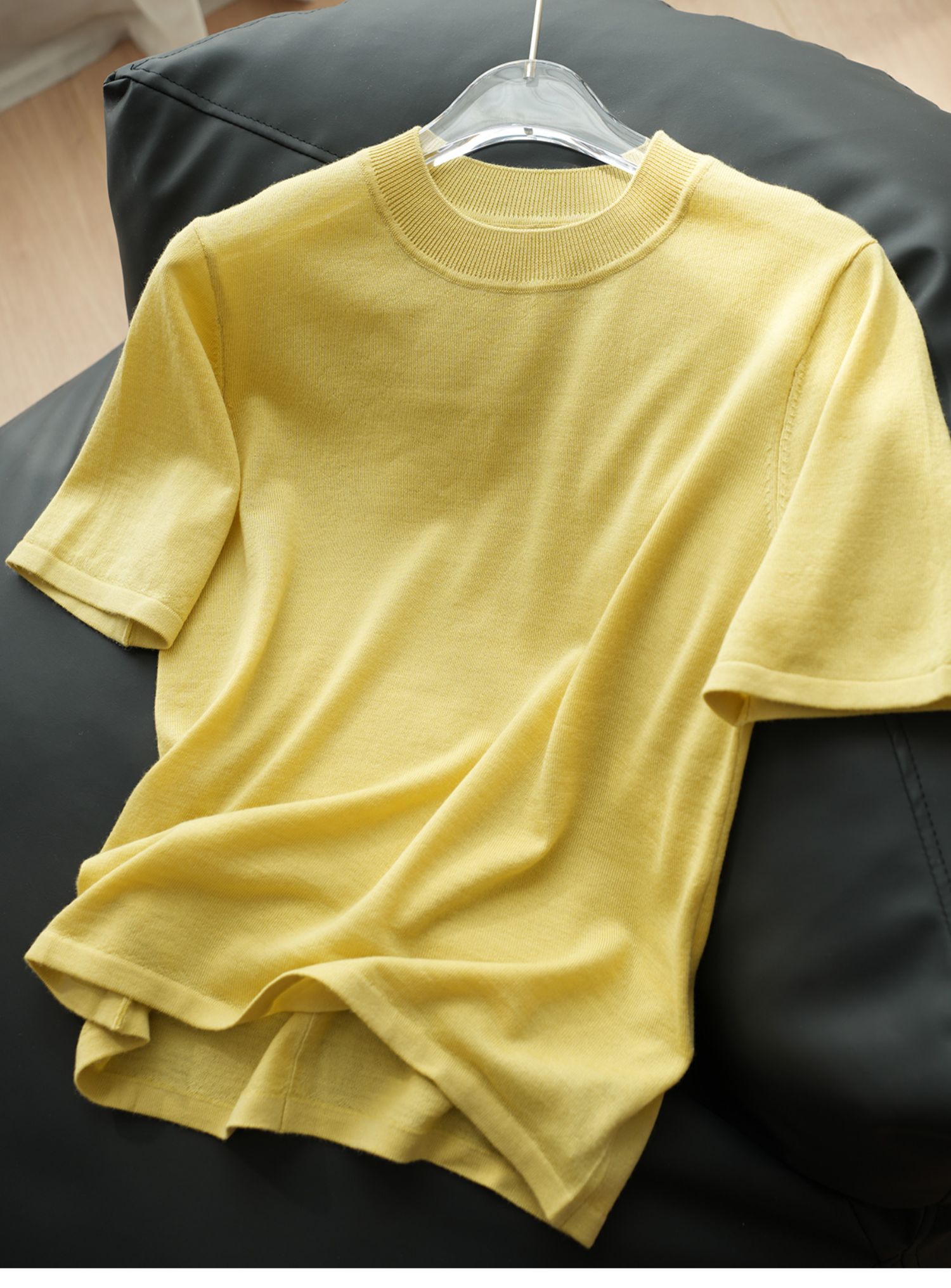 85714 福利特 女士全羊毛針織衫 圓領五分袖打底衫 中袖T 秋款