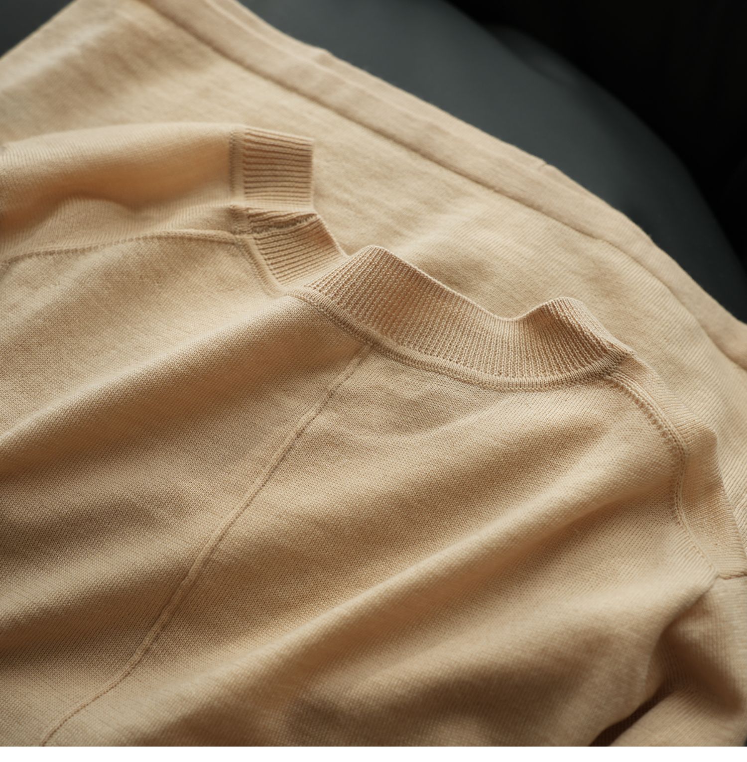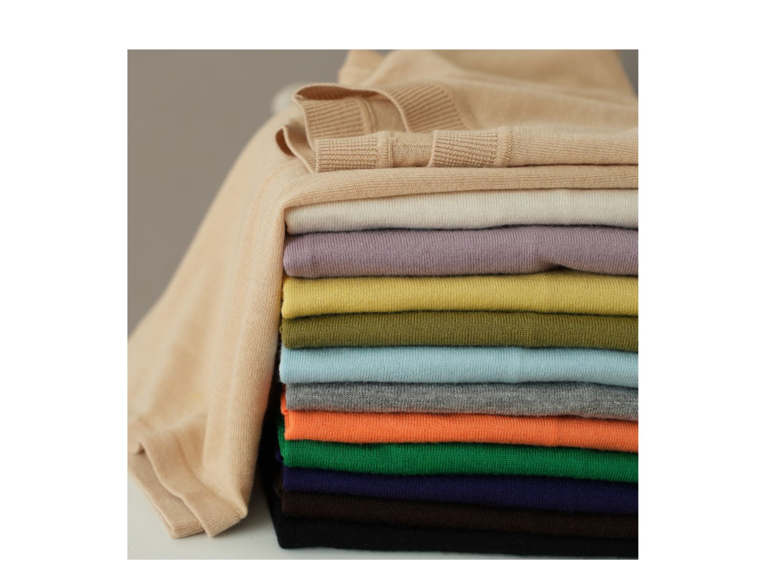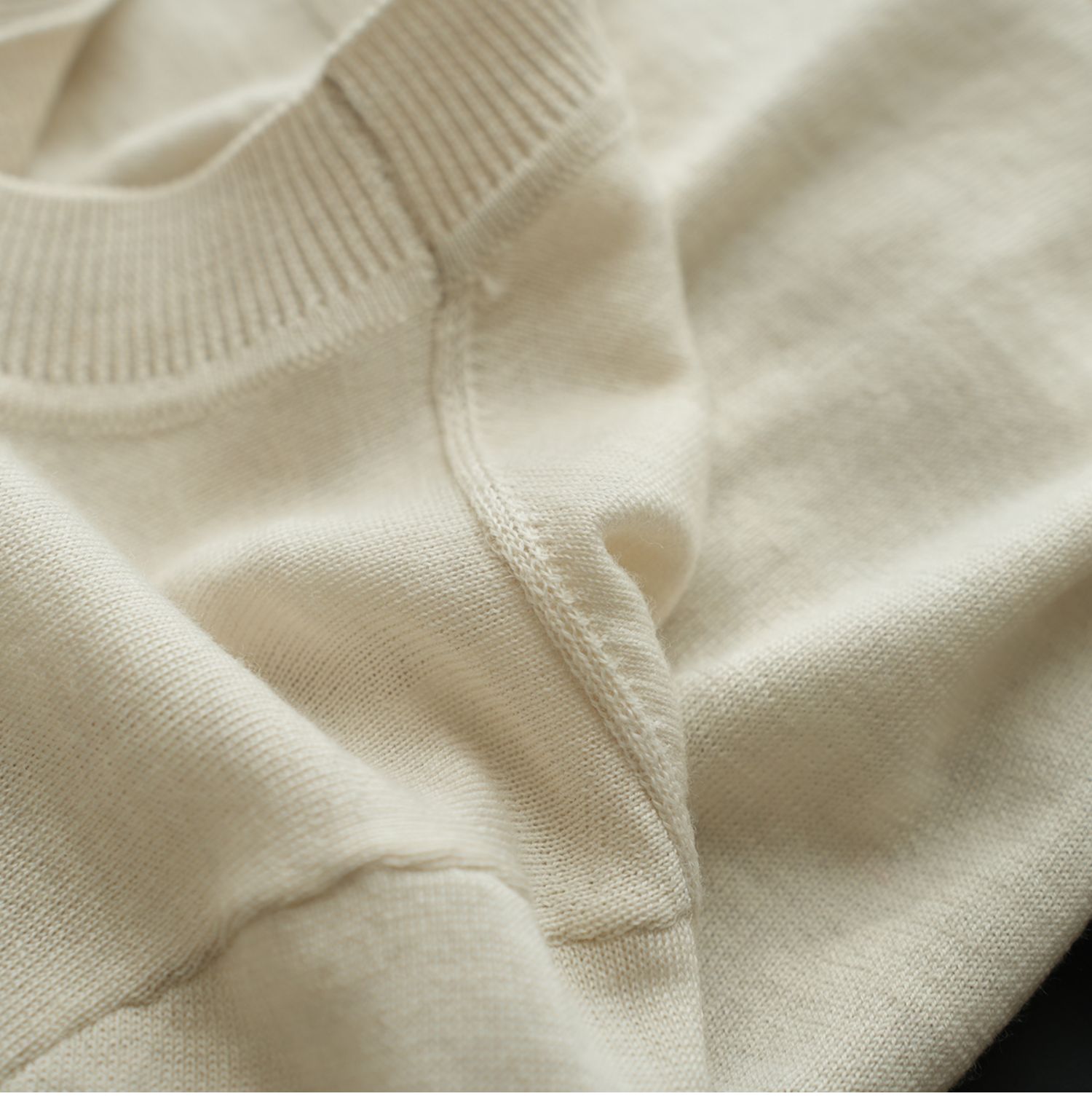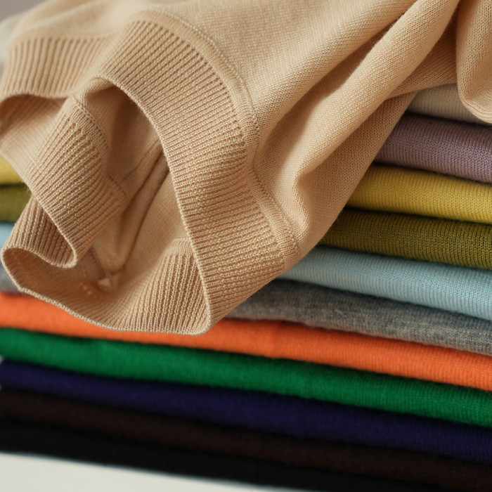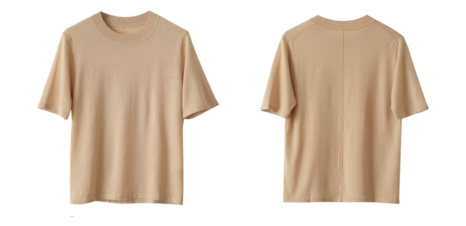 85714 福利特 女士全羊毛針織衫 圓領五分袖打底衫 中袖T 秋款