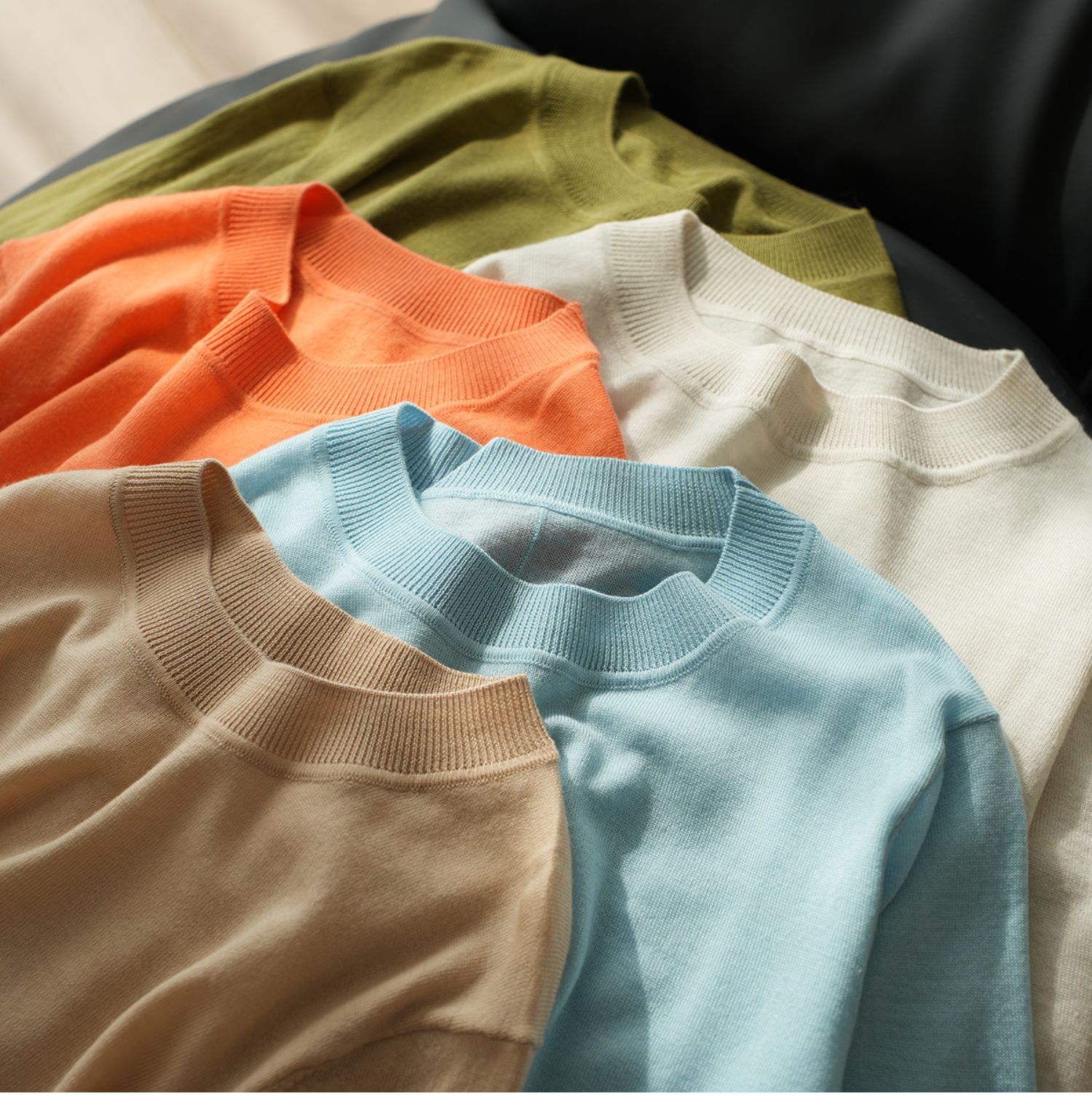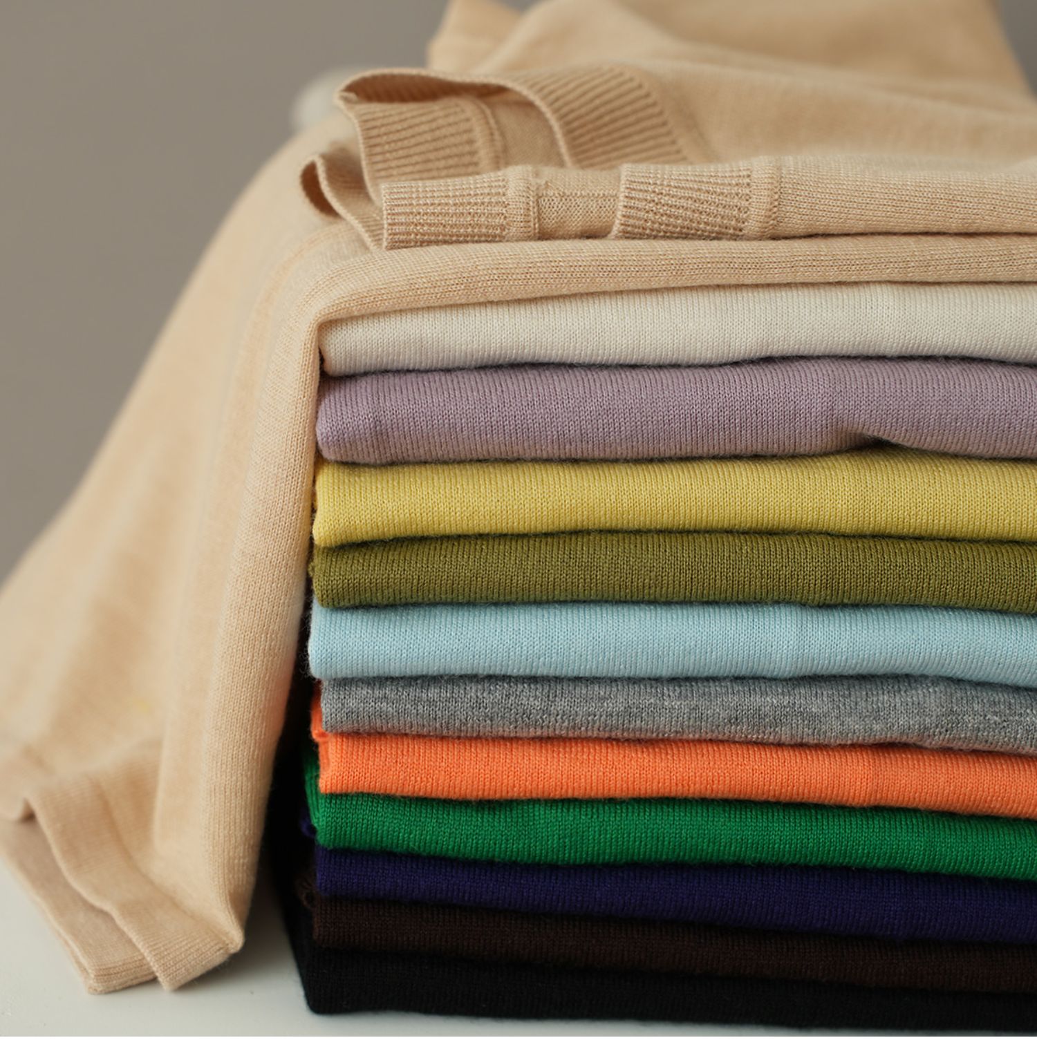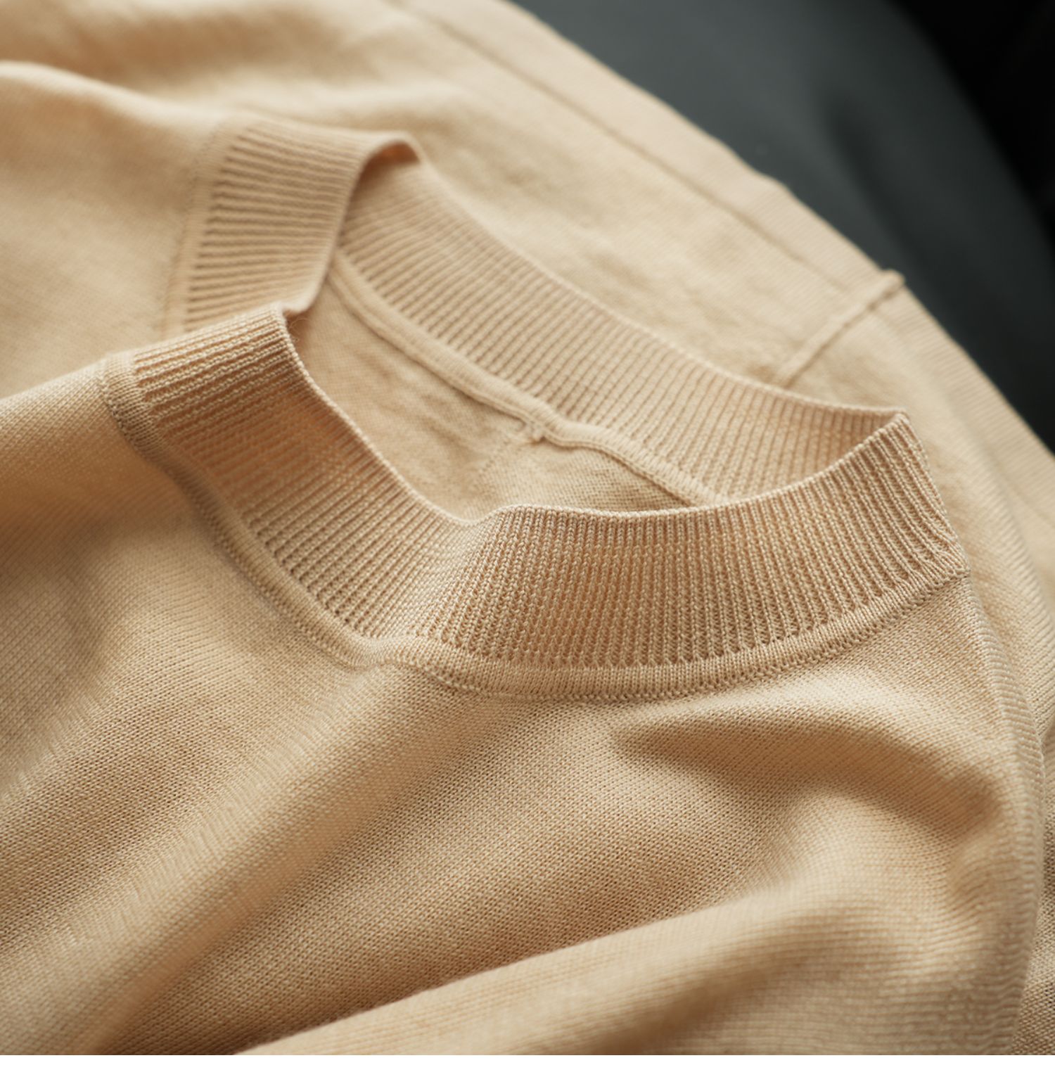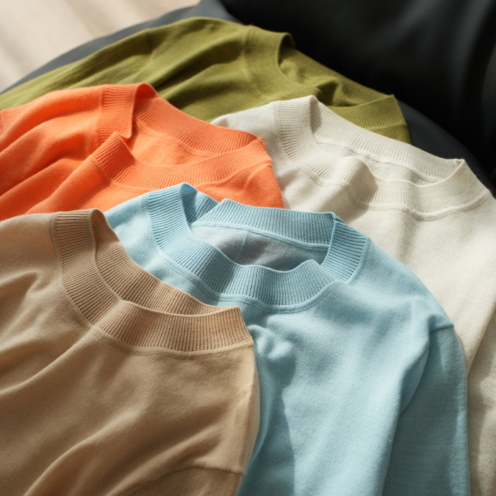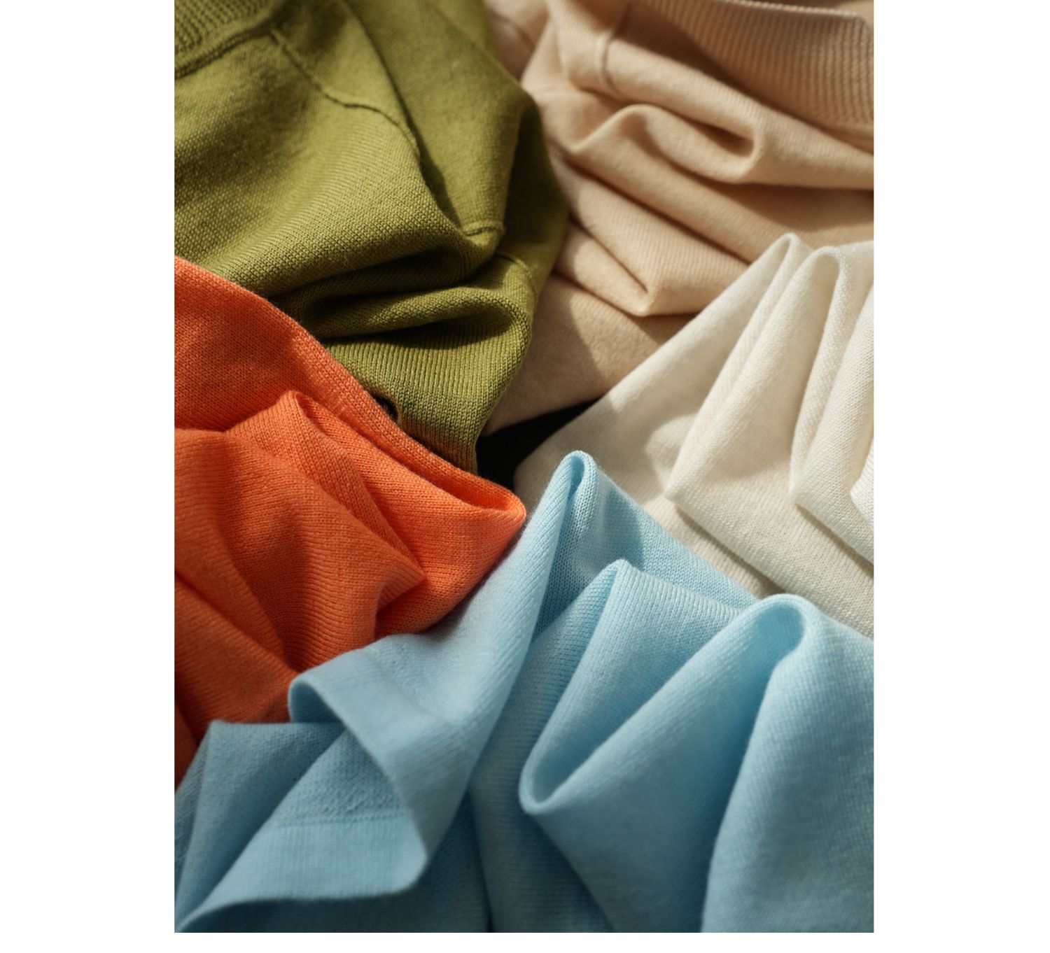 85714 福利特 女士全羊毛針織衫 圓領五分袖打底衫 中袖T 秋款