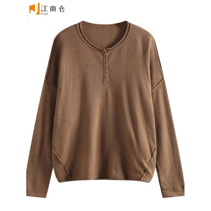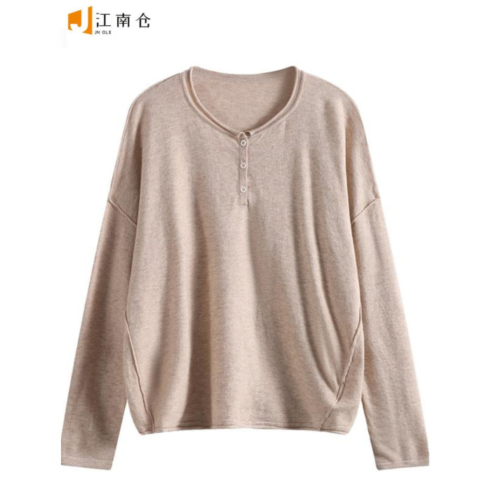 江南倉||品牌折釦毛衣女寬松內搭秋冬款針織羊毛衫套頭保暖打底衫