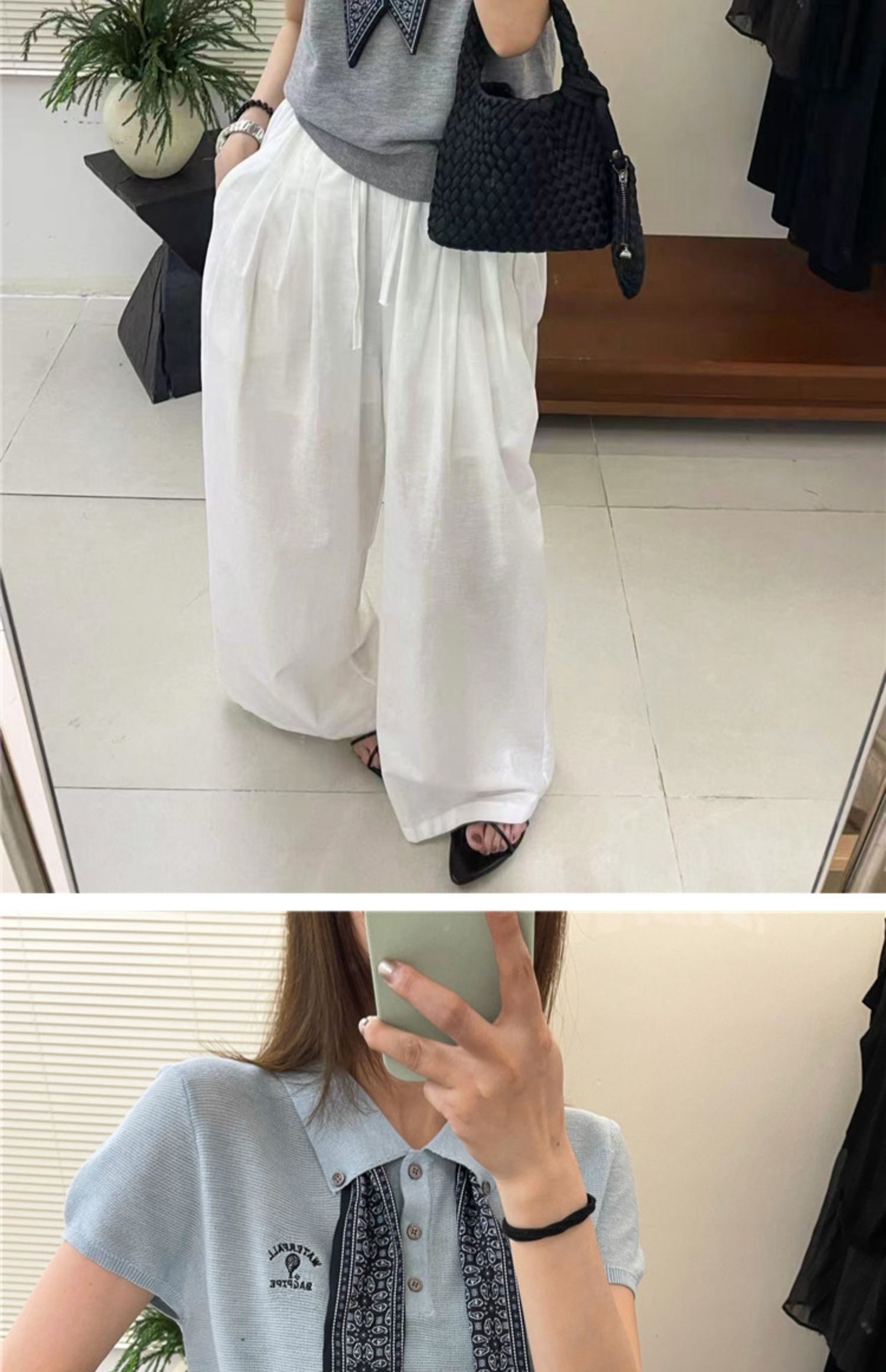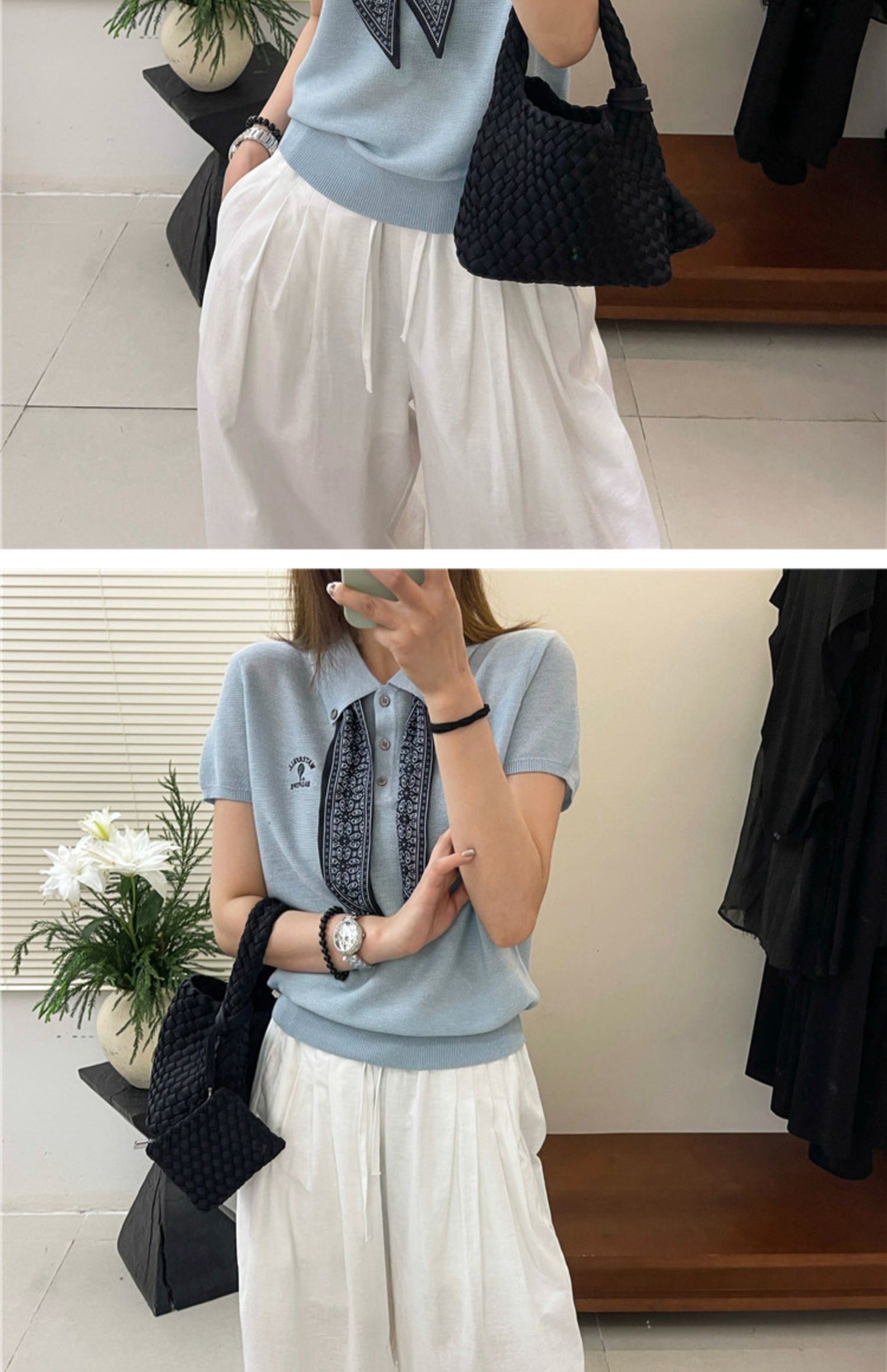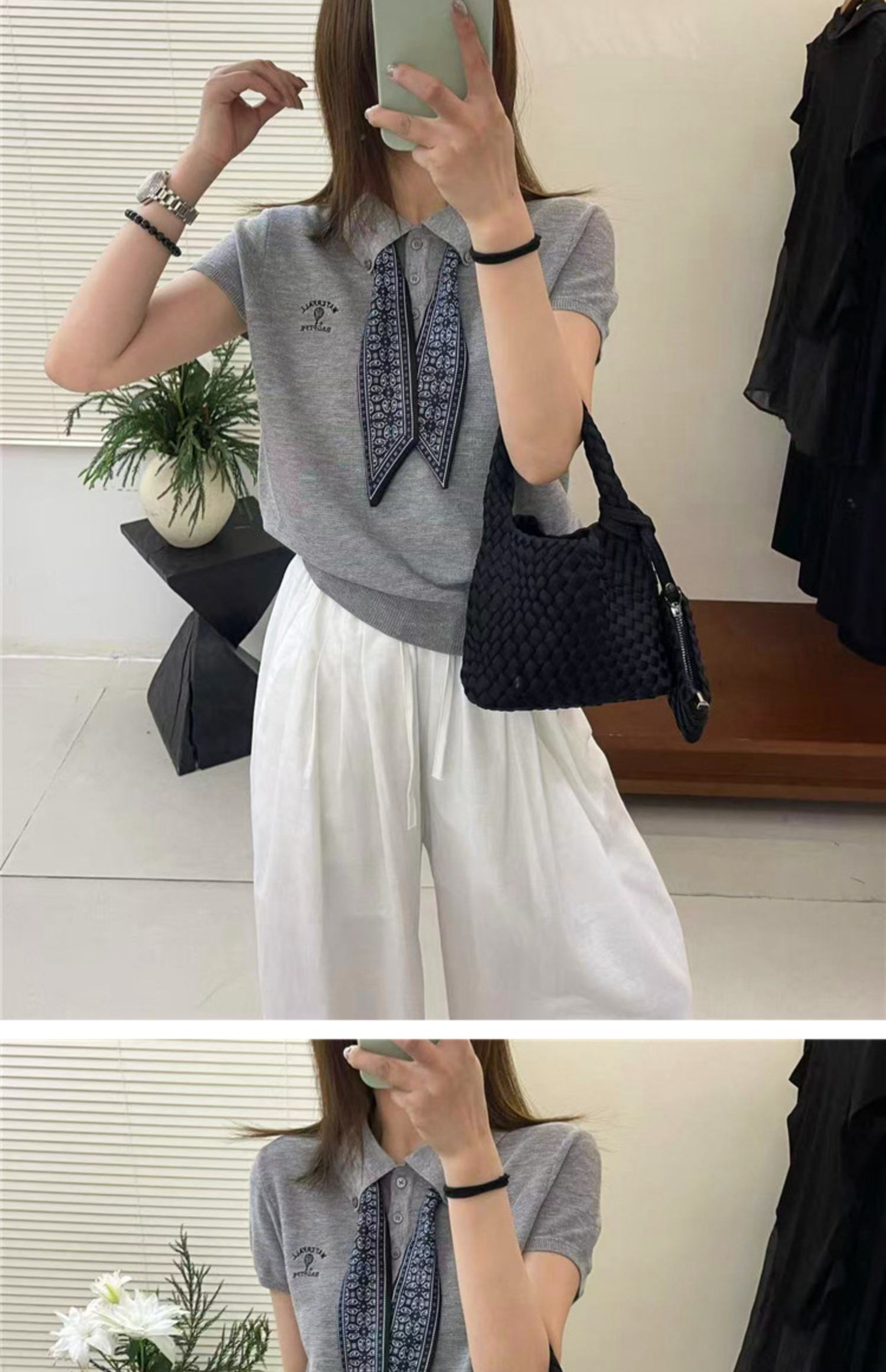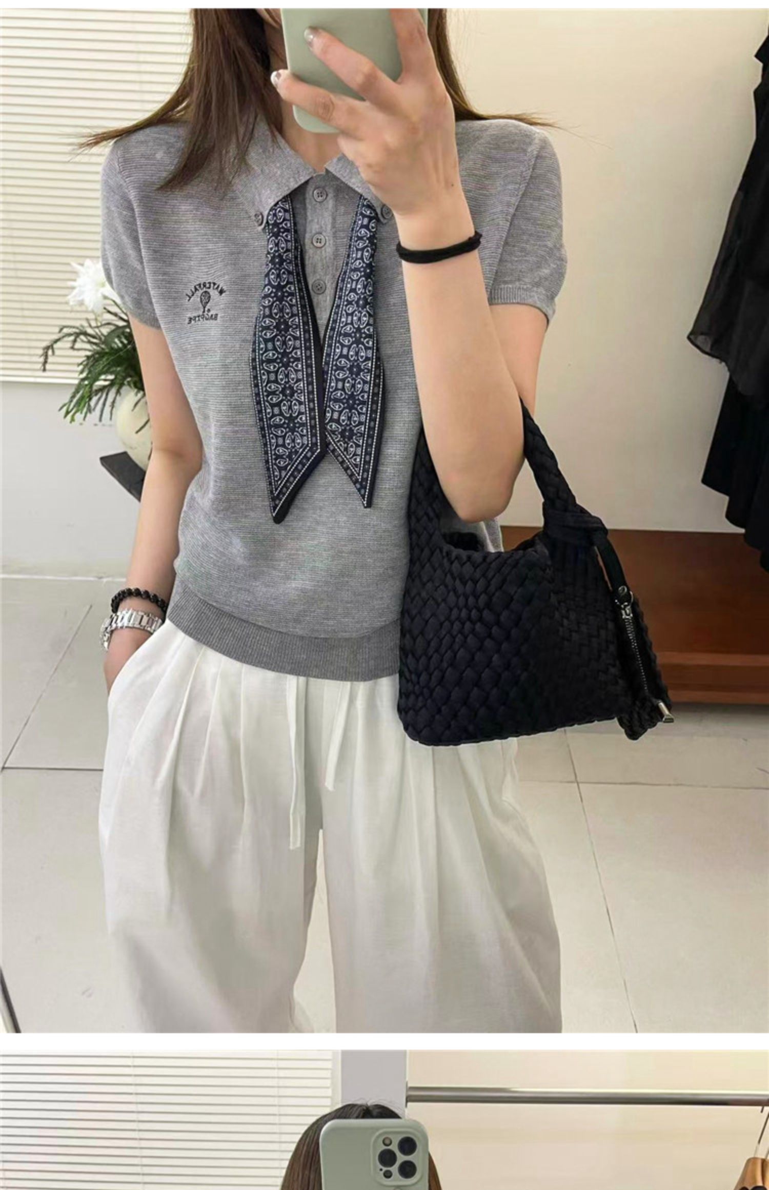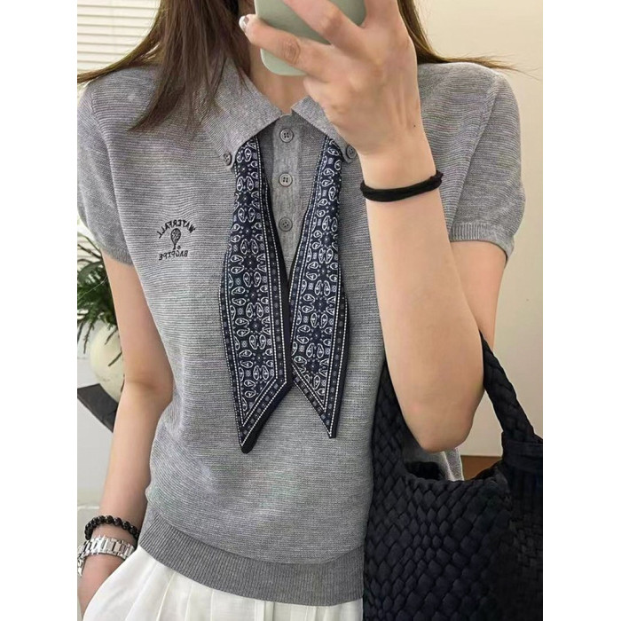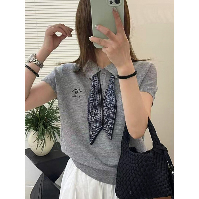 奧萊專櫃女裝配絲巾翻領冰絲針織衫寬松顯瘦上衣洋氣打底衫潮