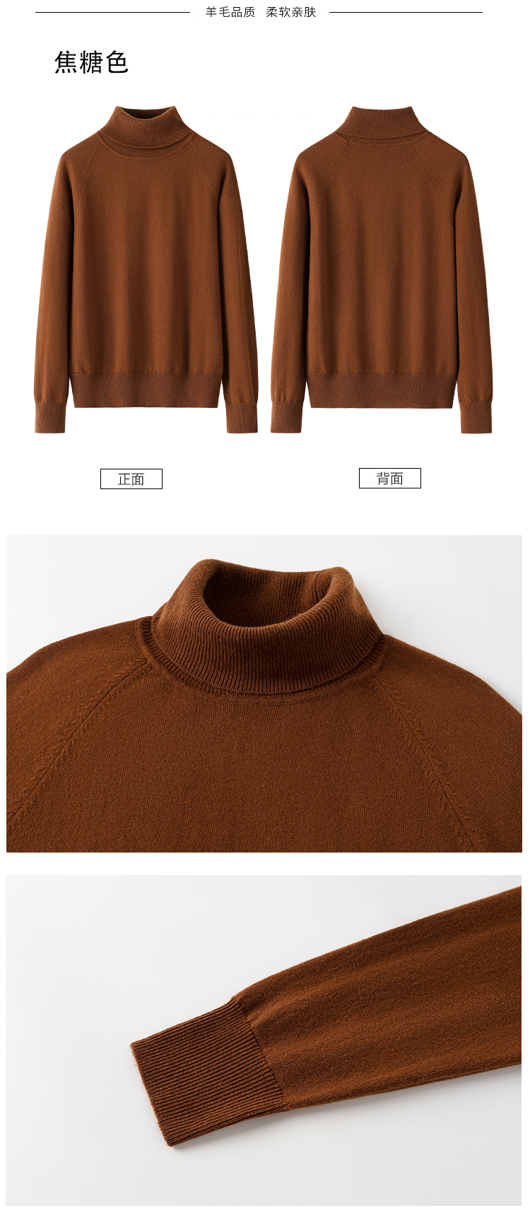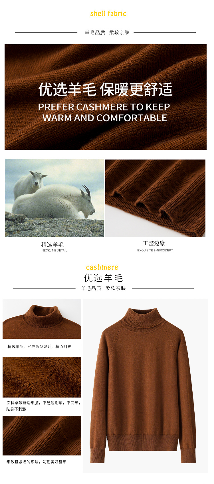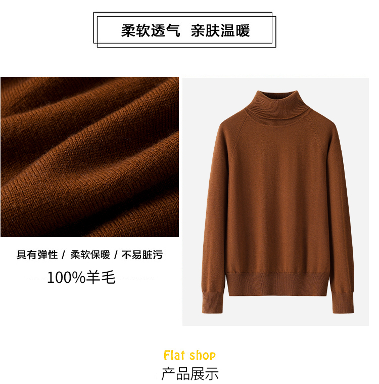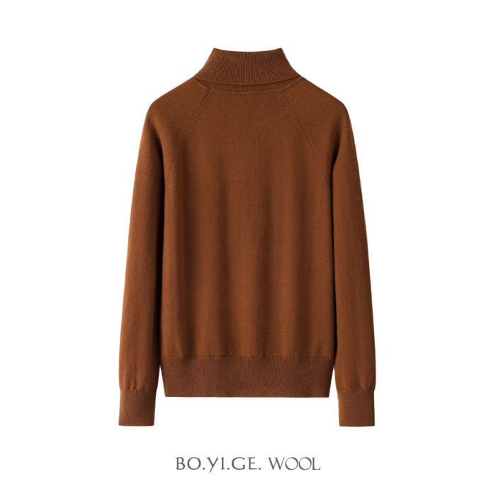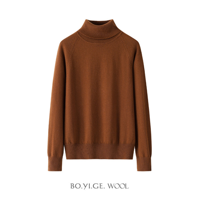 博依格秋冬新款100%綿羊毛針織女士高翻領毛衣寬松保暖基礎打底衫