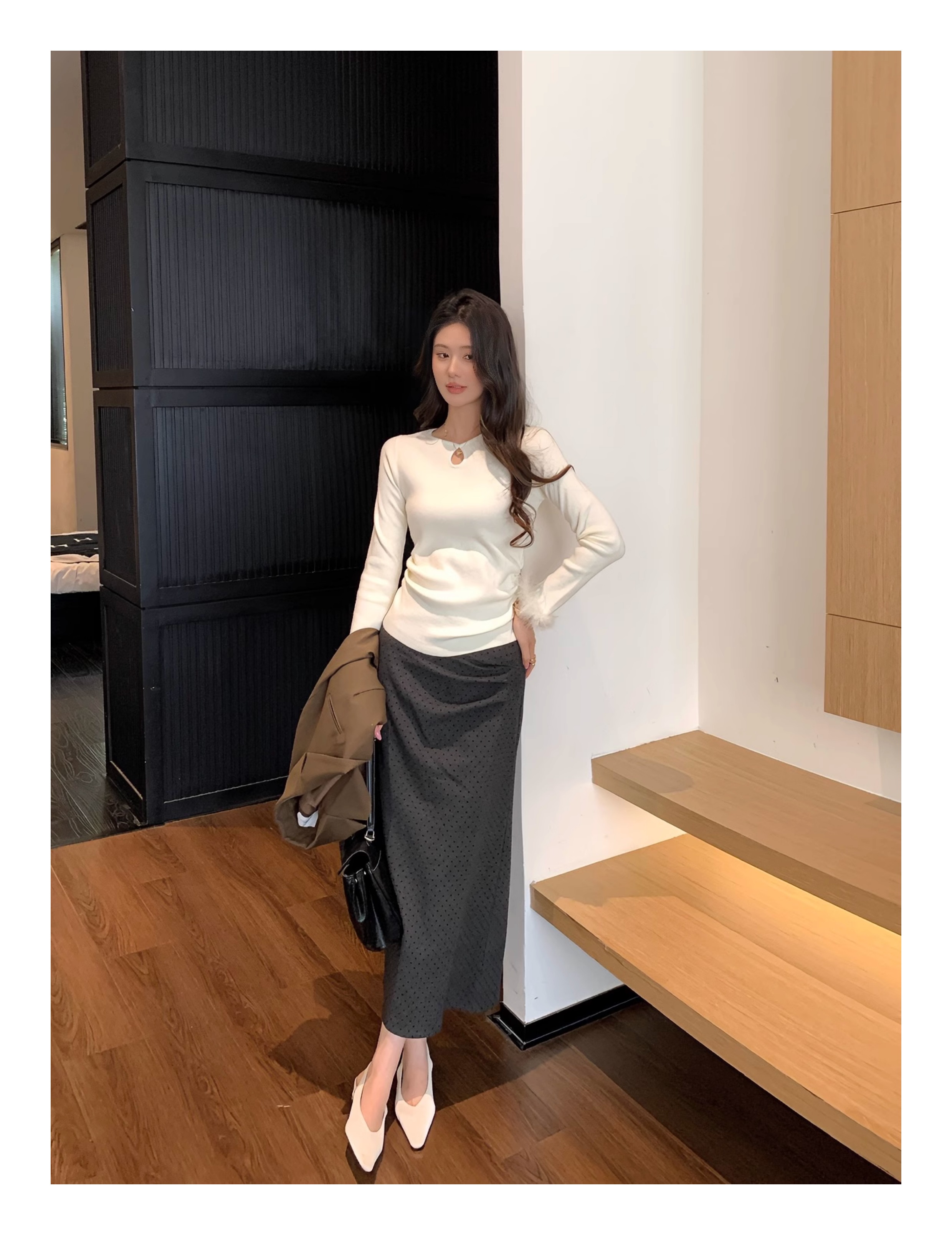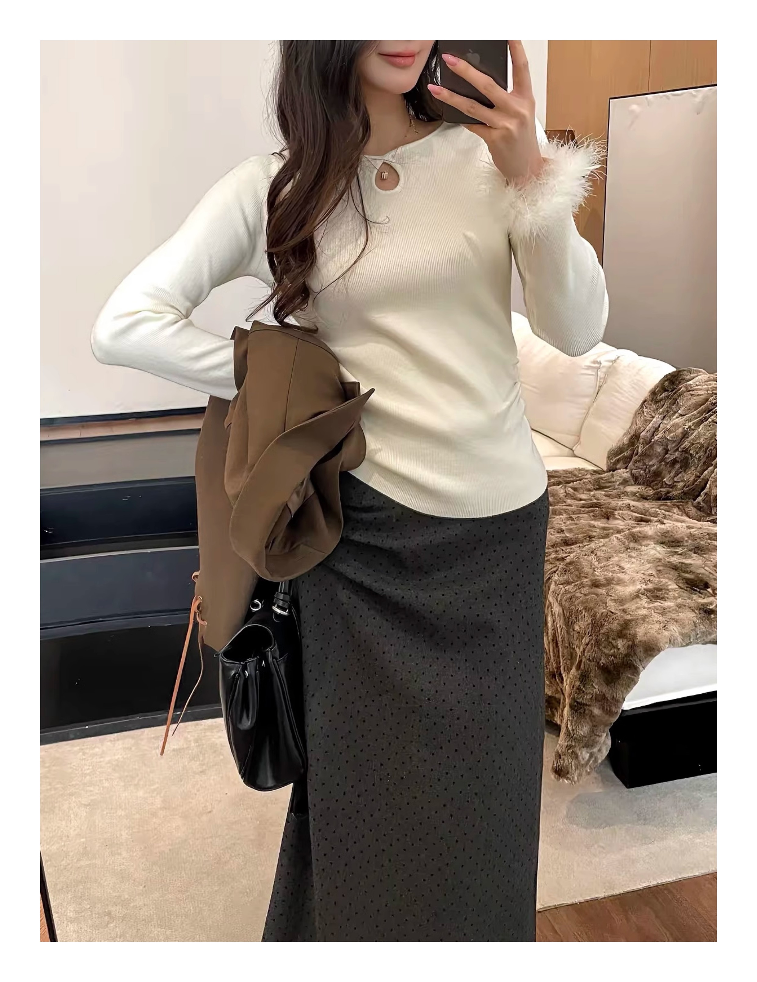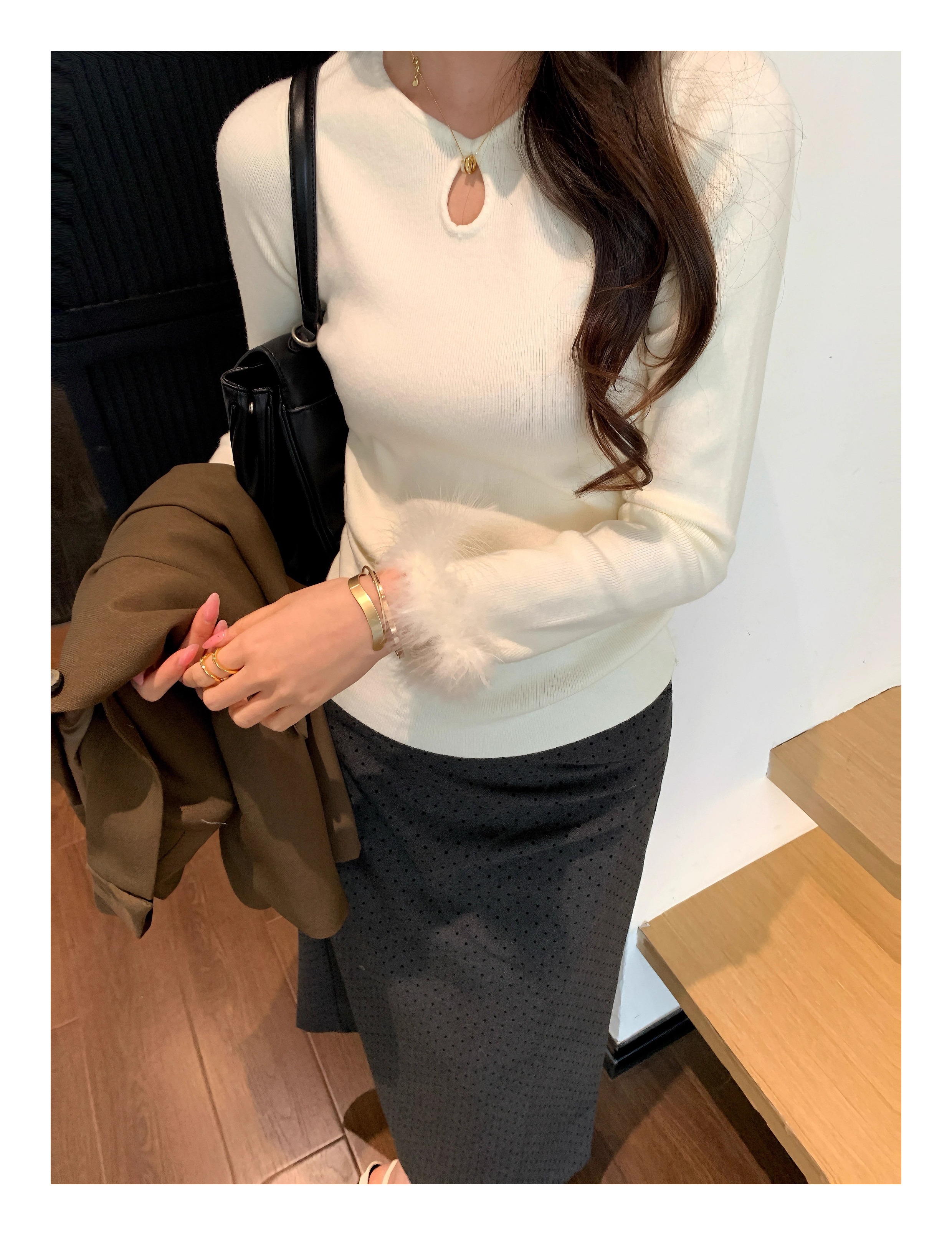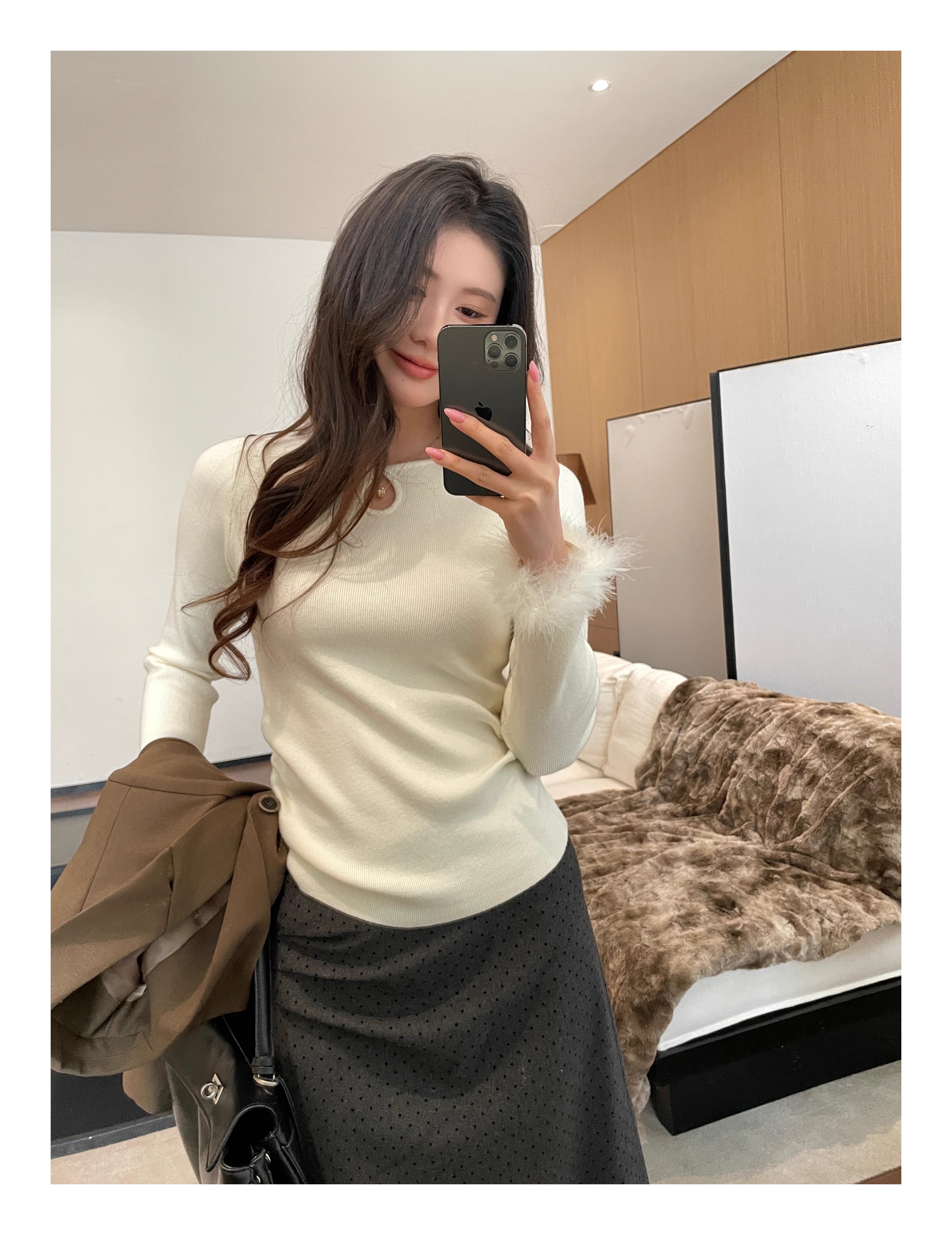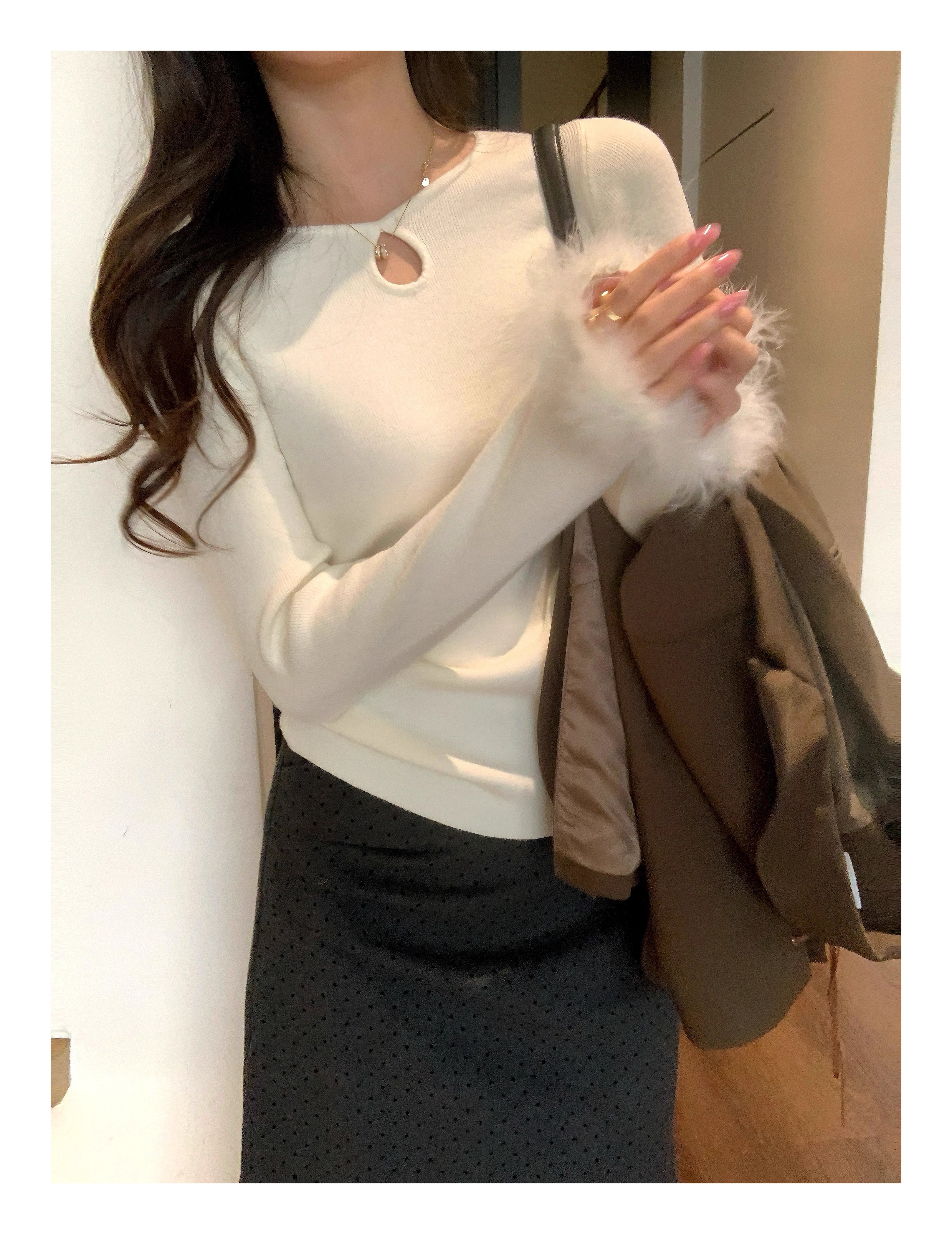 UKILAU春裝新品設計感鏤空長袖內搭上衣女修身顯瘦百搭針織打底衫