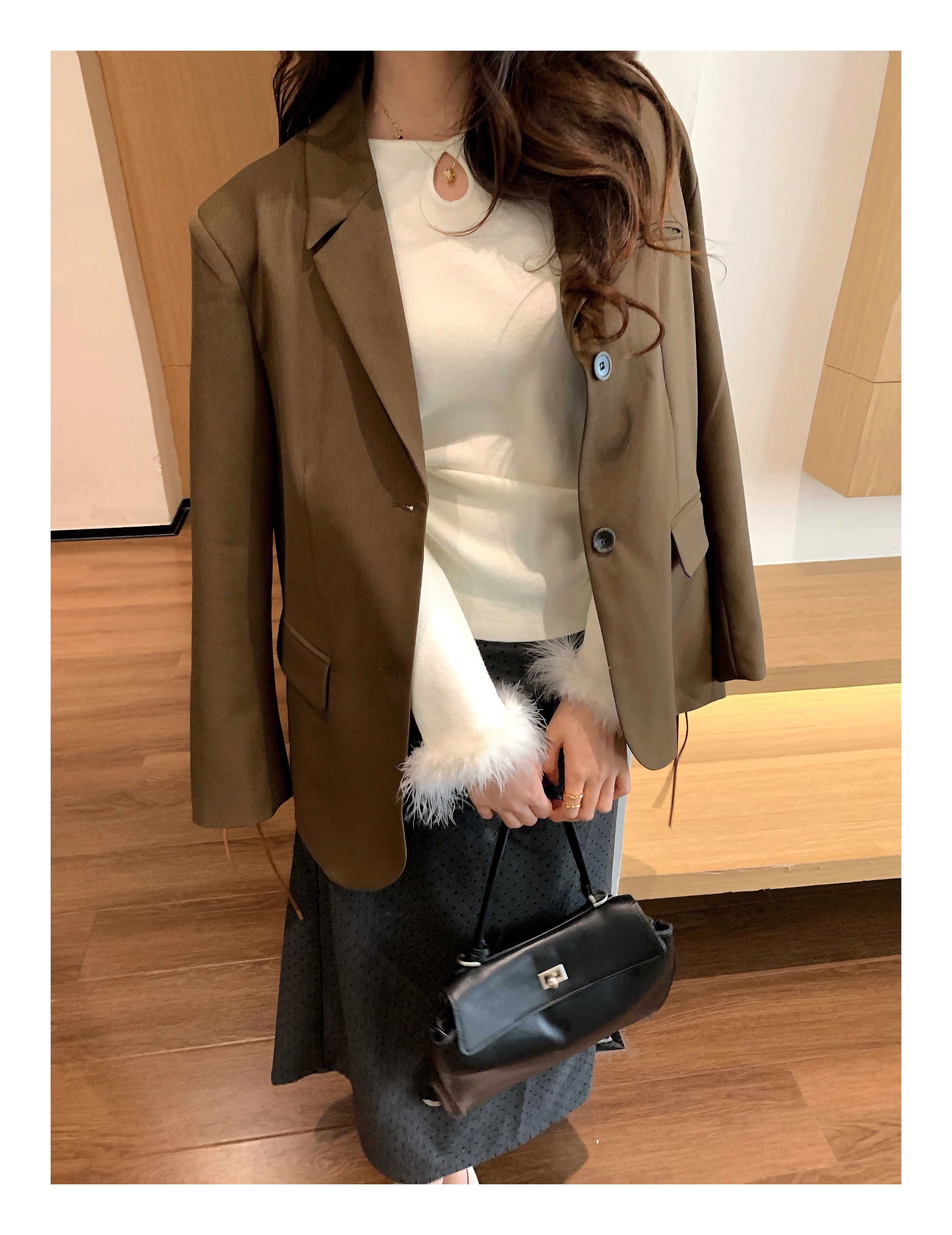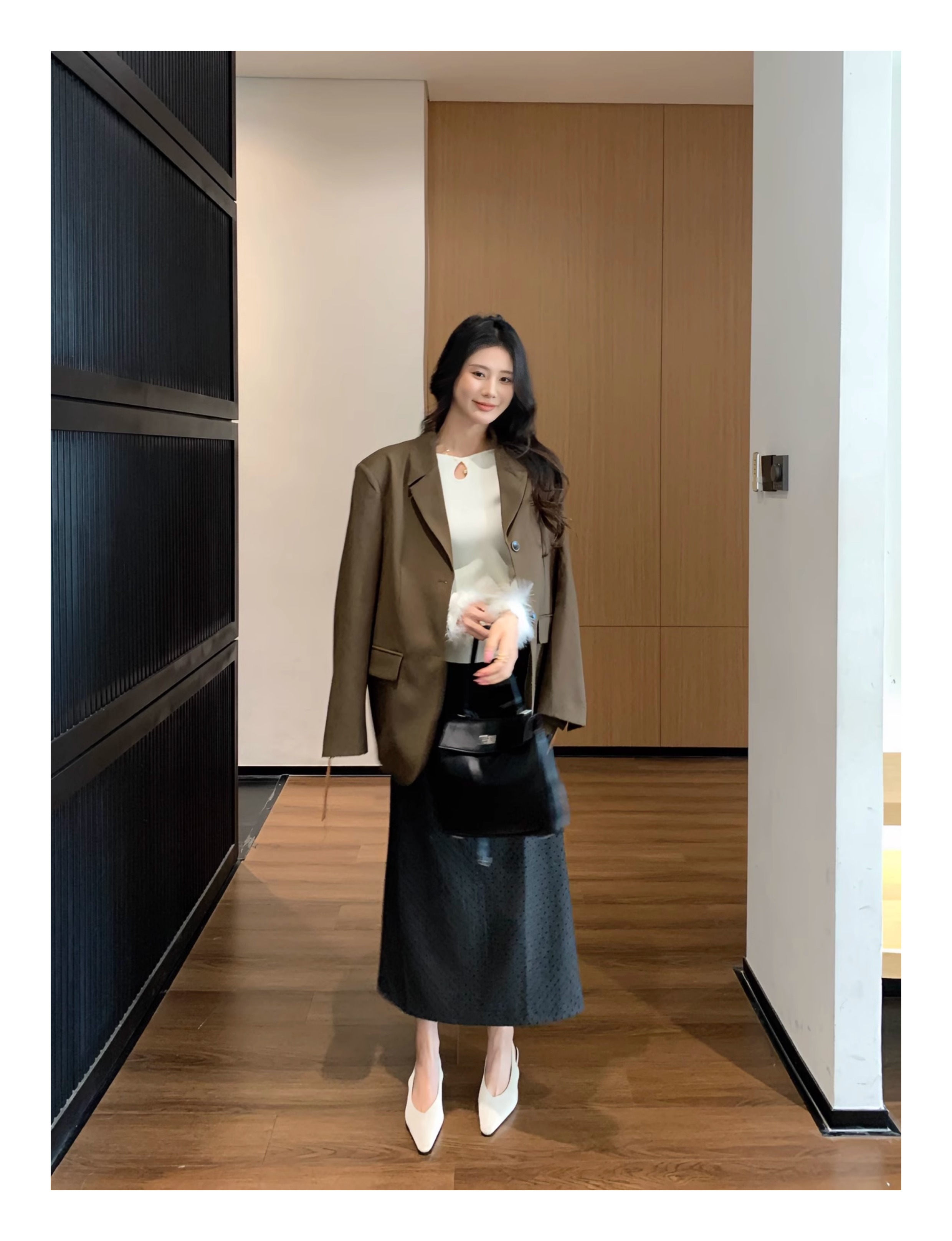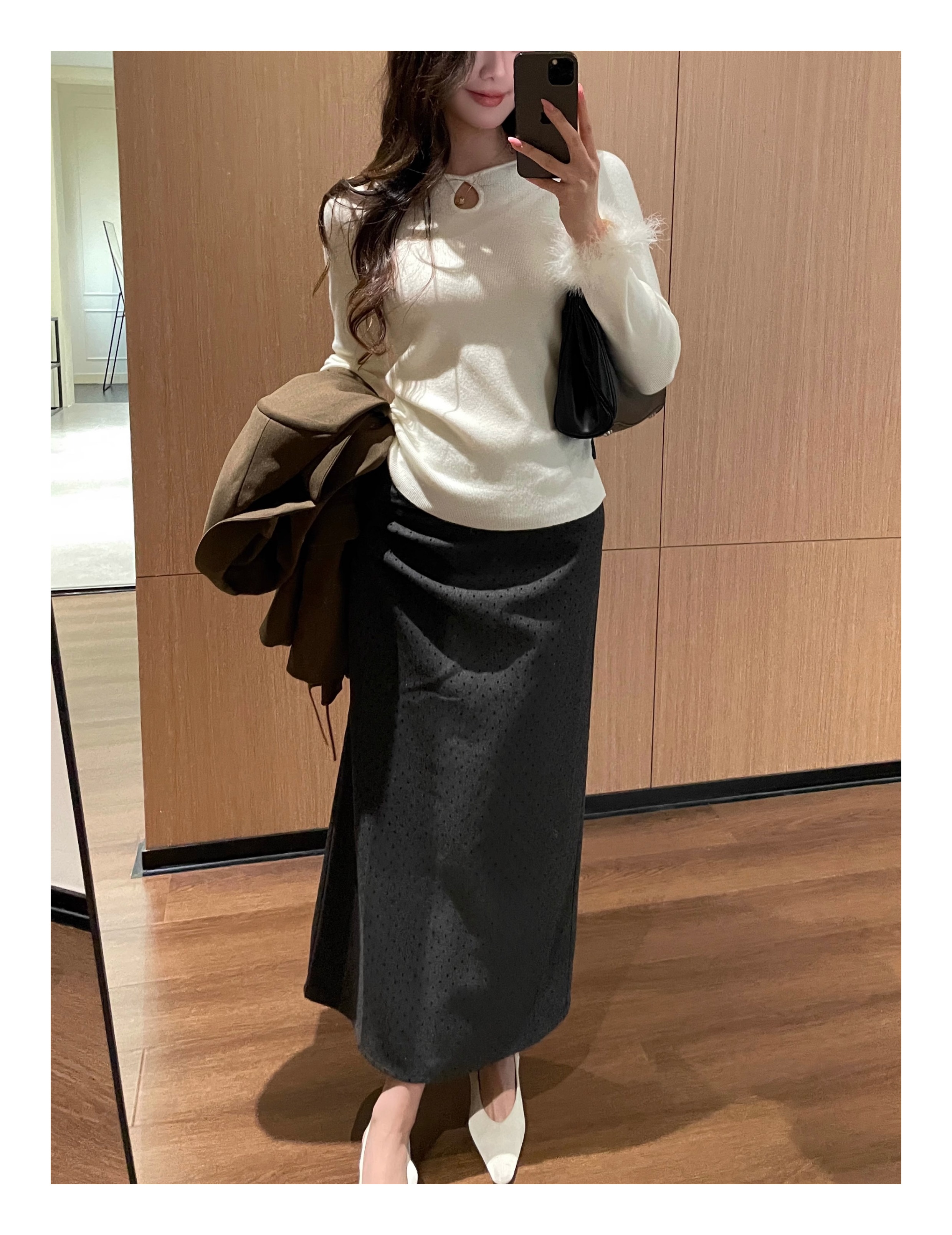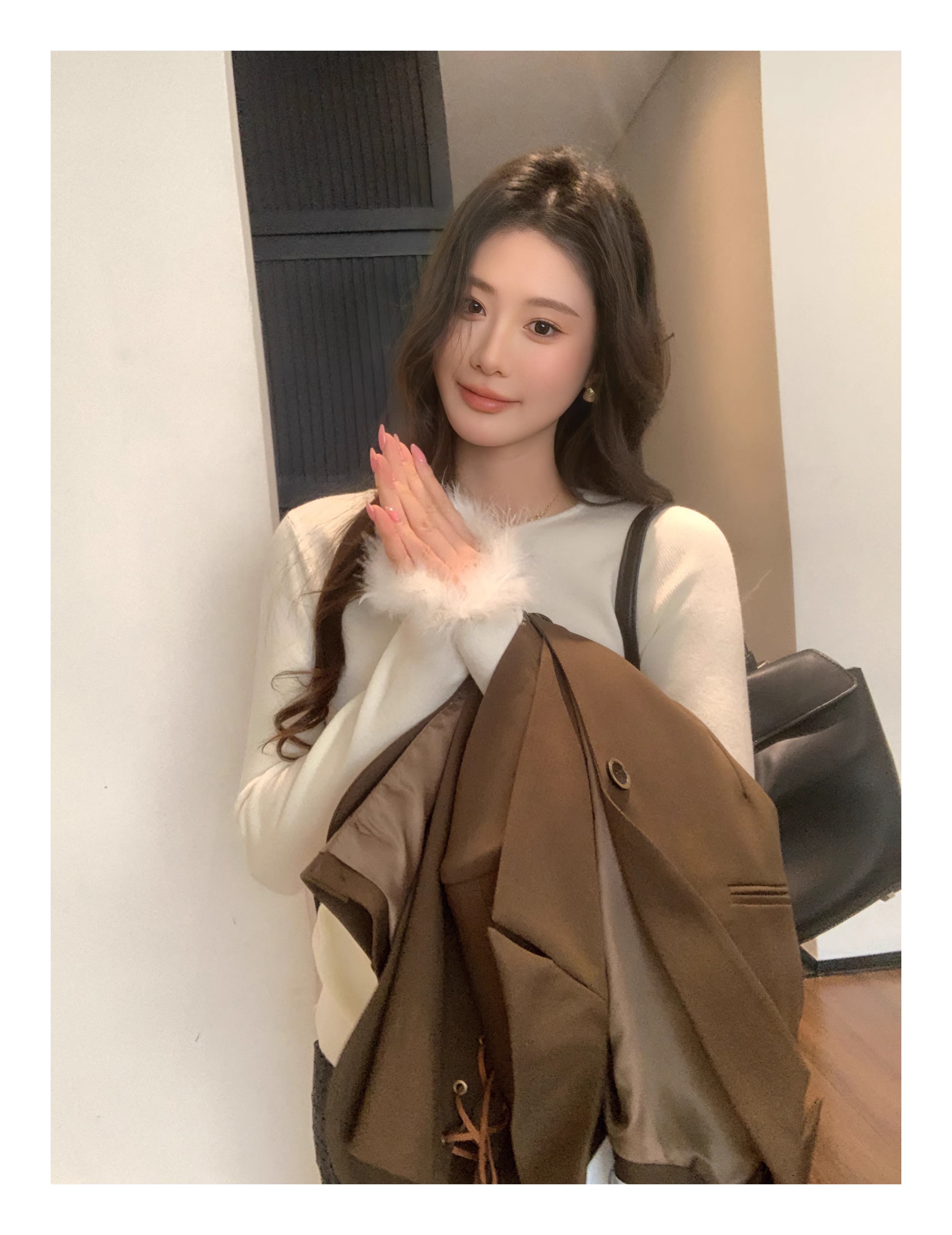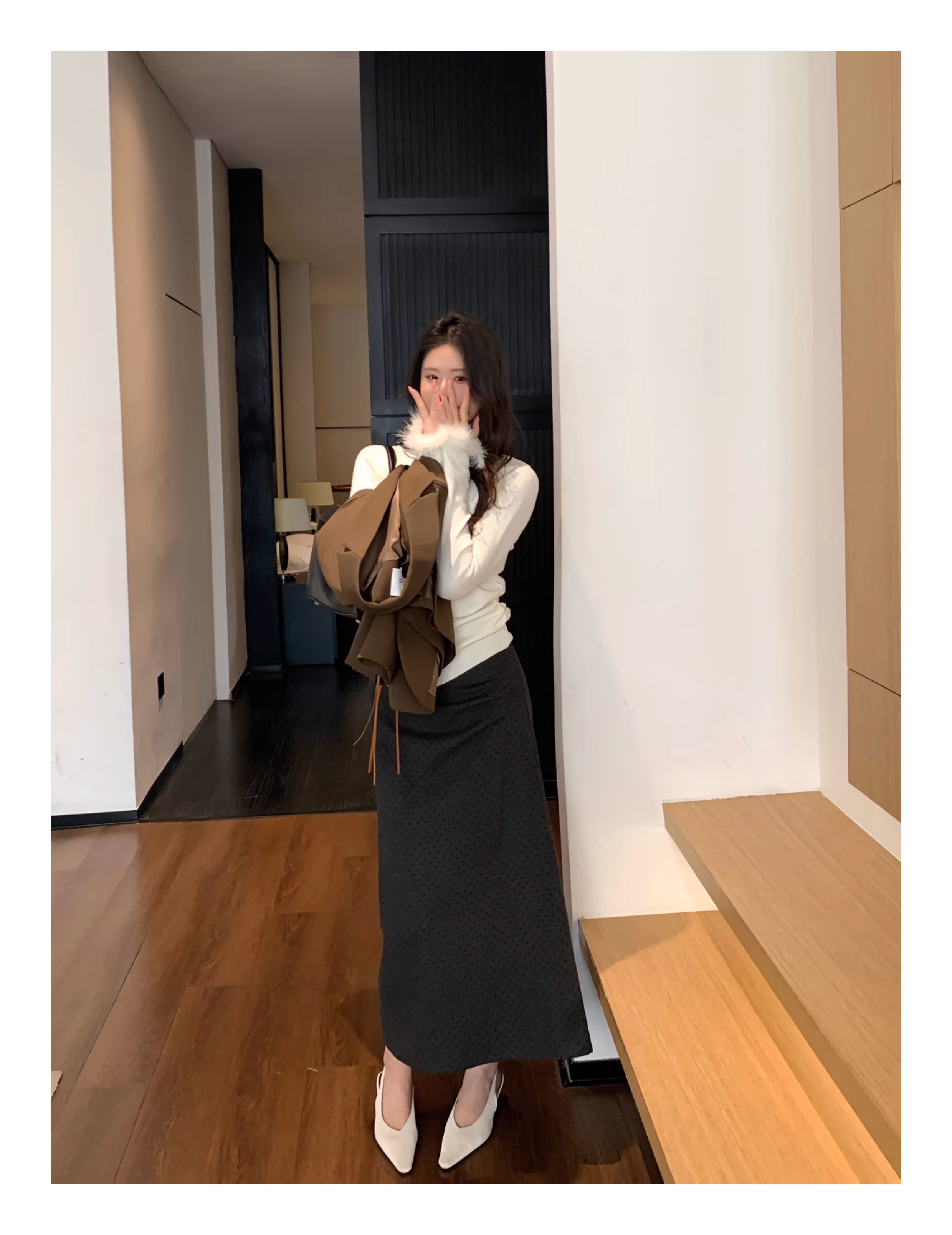 UKILAU春裝新品設計感鏤空長袖內搭上衣女修身顯瘦百搭針織打底衫