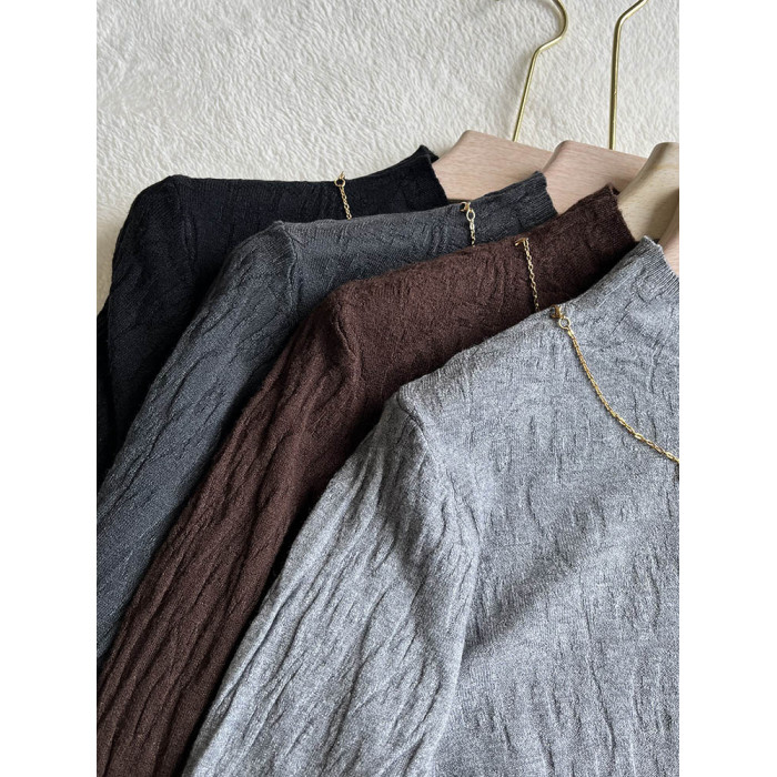 半高領女士毛針織衫女春秋新款洋氣減齡媽媽上衣毛衣打底衫鏈條春
