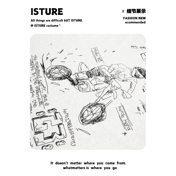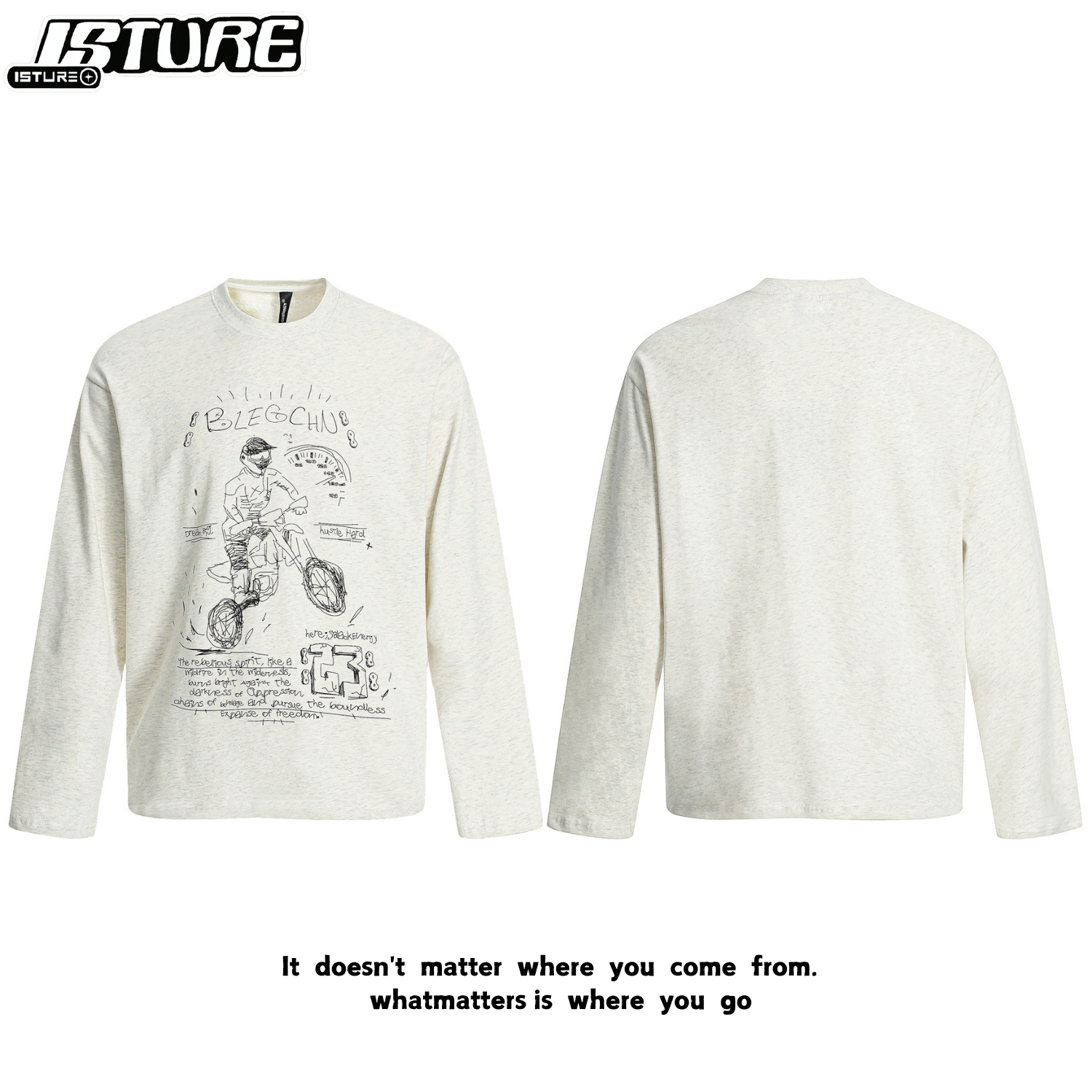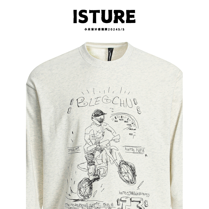 ISTURE美式復古卡通印花圓領長衣情侶簡約寬松休閒長袖百搭打底衫