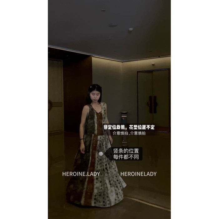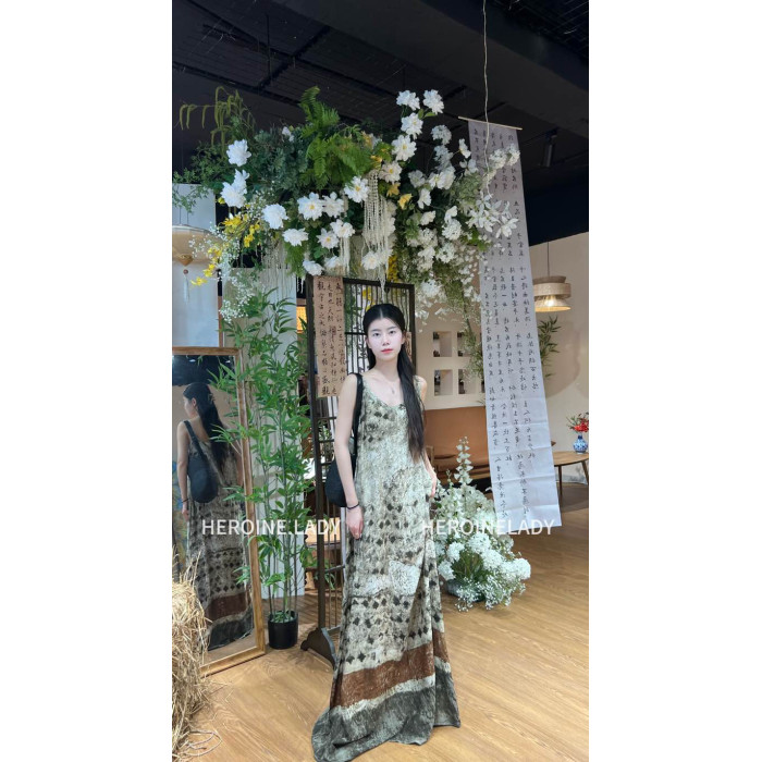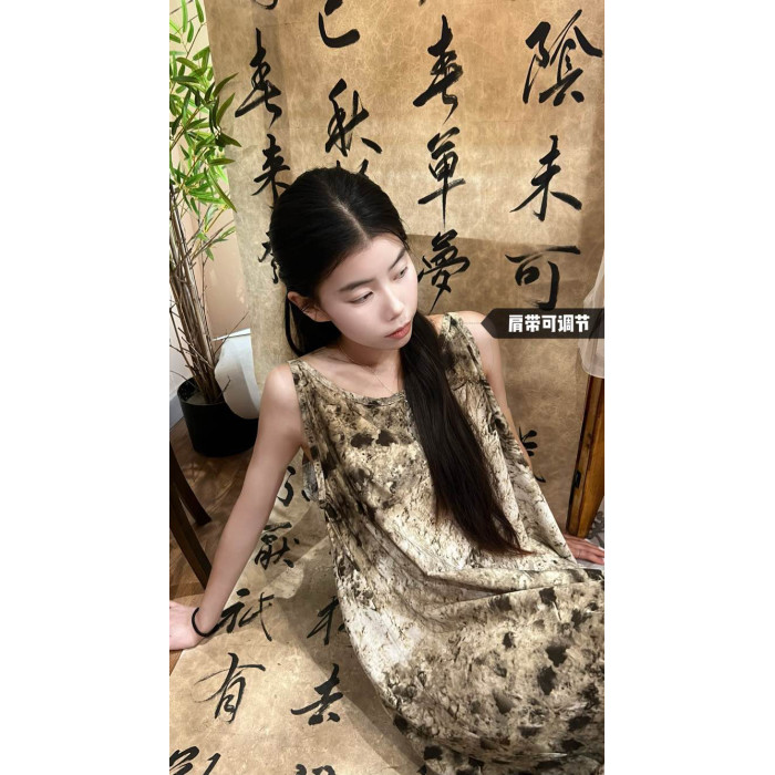 【龐貝】HL棉綢復古必入夏季冷清龐貝印花垂墜吊帶無袖連衣裙2.0