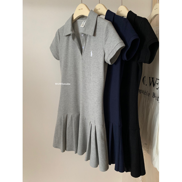 刺綉收腰顯瘦遮肉小個子連衣裙女裝夏季新款韓系百搭學院風短裙子