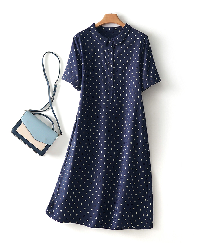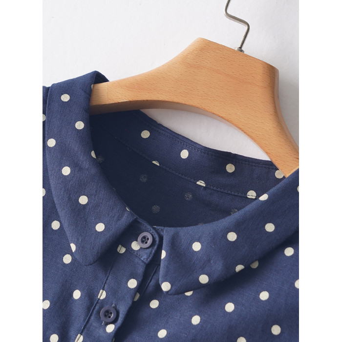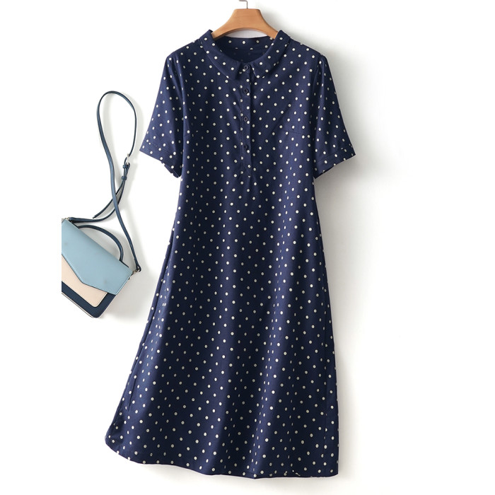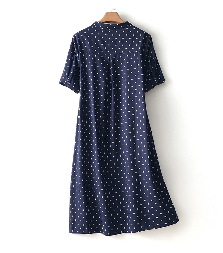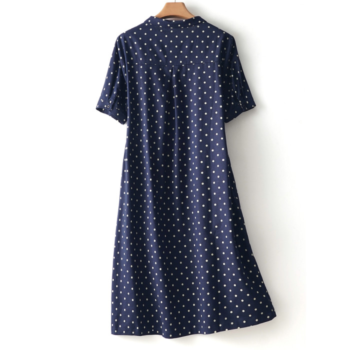 棉麻連衣裙女2025年夏季新款女裝洋氣減齡波點亞麻休閒中長款裙子