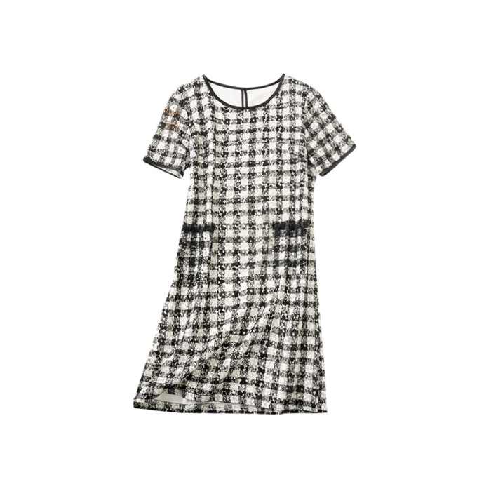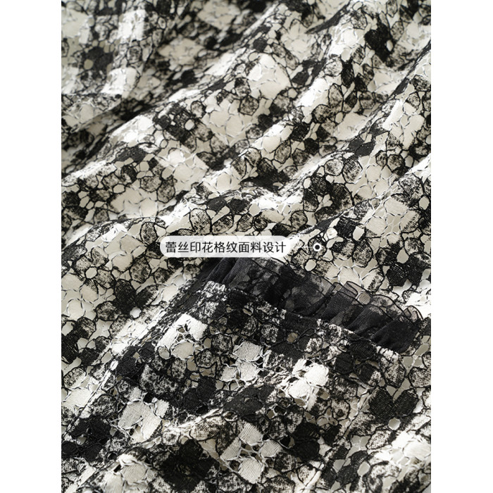 素木格子印花蕾絲連衣裙女夏季2025年新款氣質a字裙歐貨大碼裙子