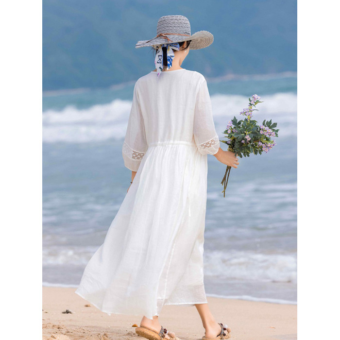 Ariseism 美式復古設計感蝴蝶結掛脖無袖連衣裙女夏季新款裙子